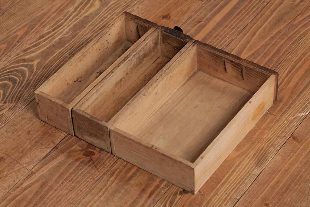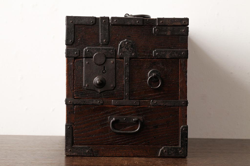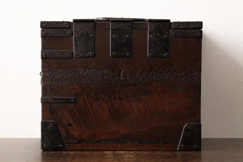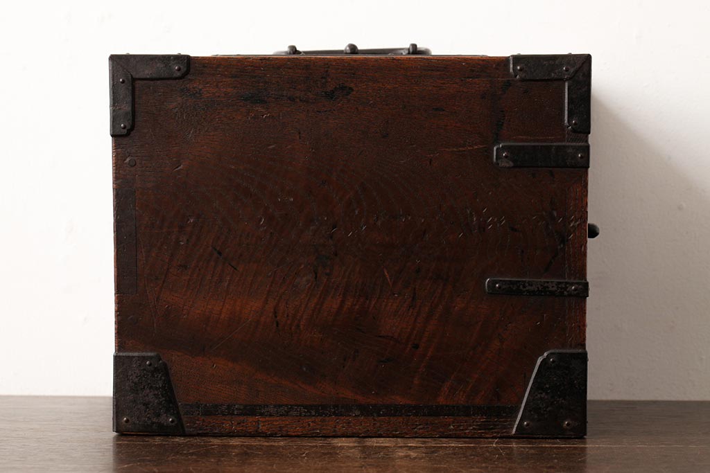 アンティーク雑貨 和製アンティーク 明治期 総栗材 味わい深い趣の硯箱(小物入れ、小引き出し、収納箱)(R-039547)