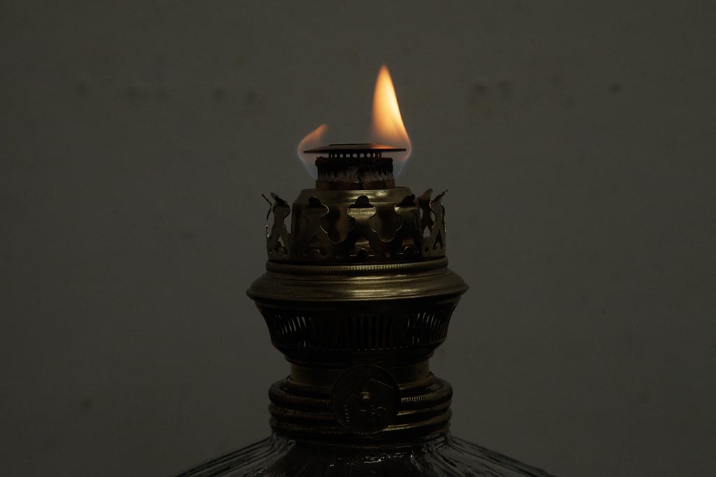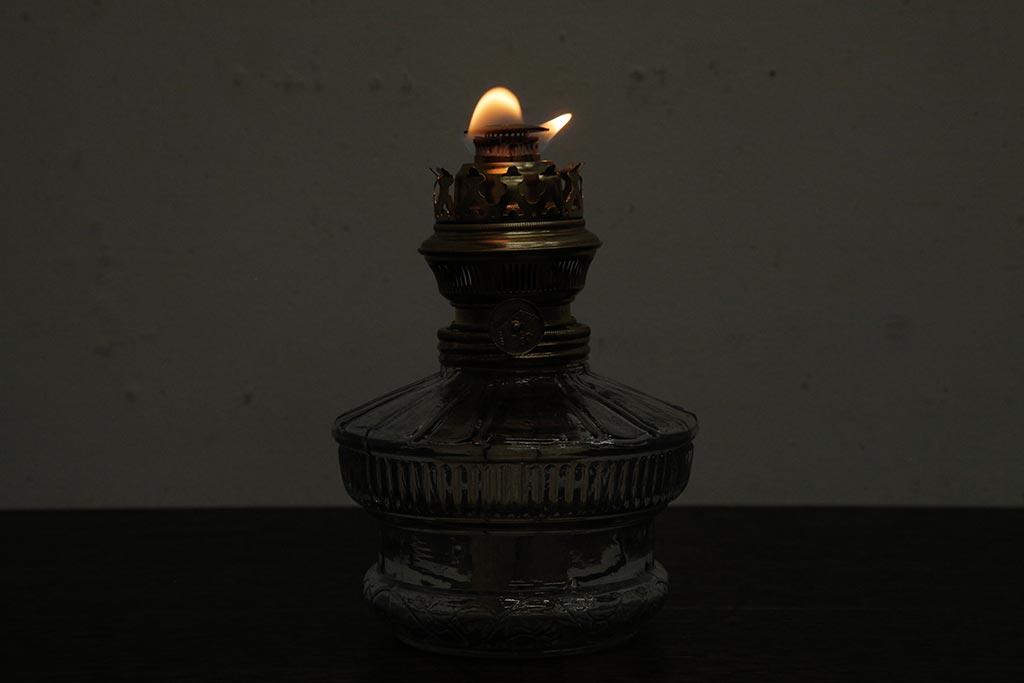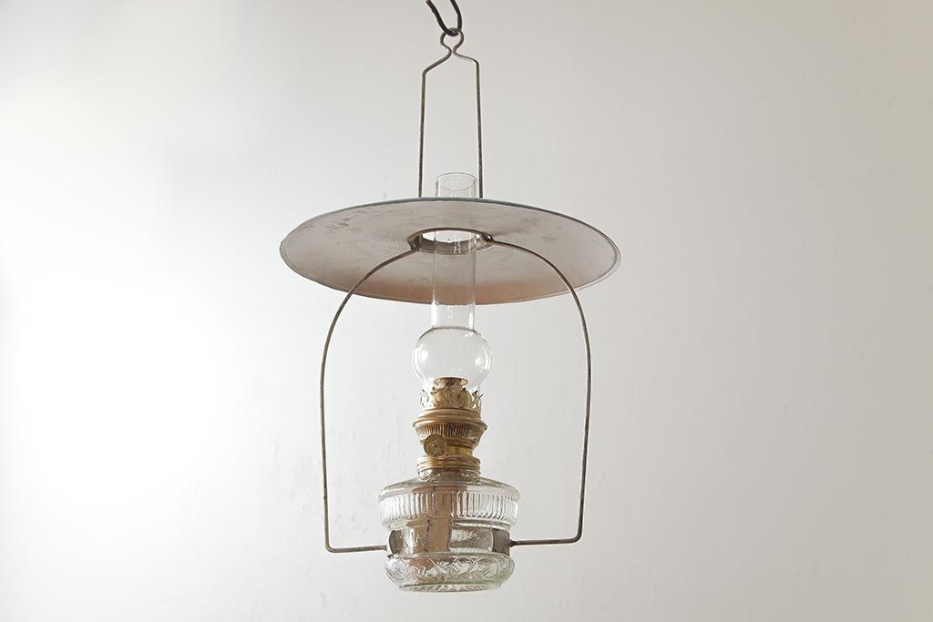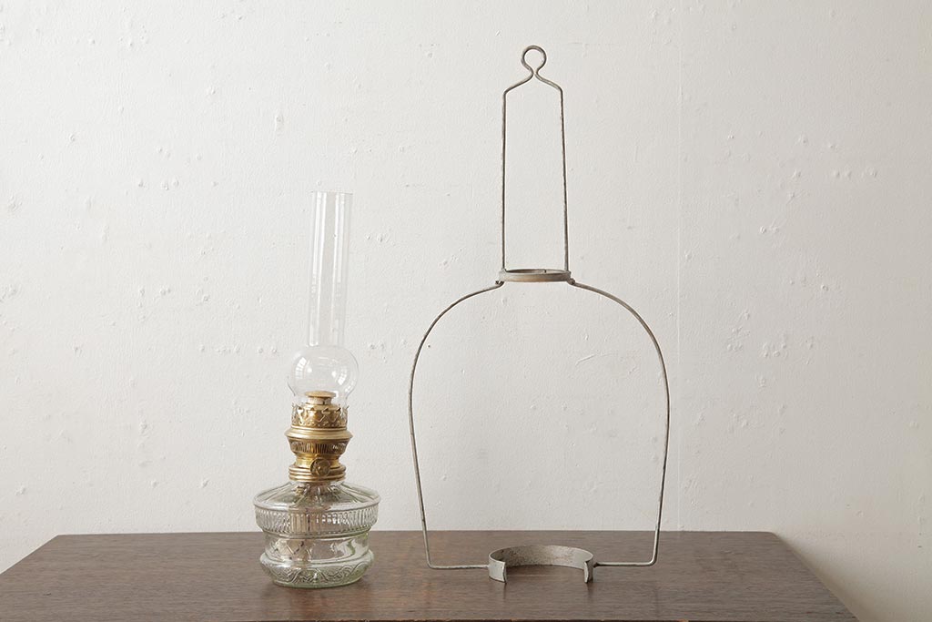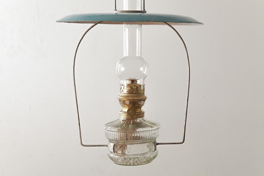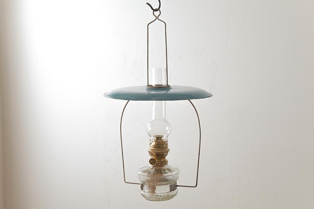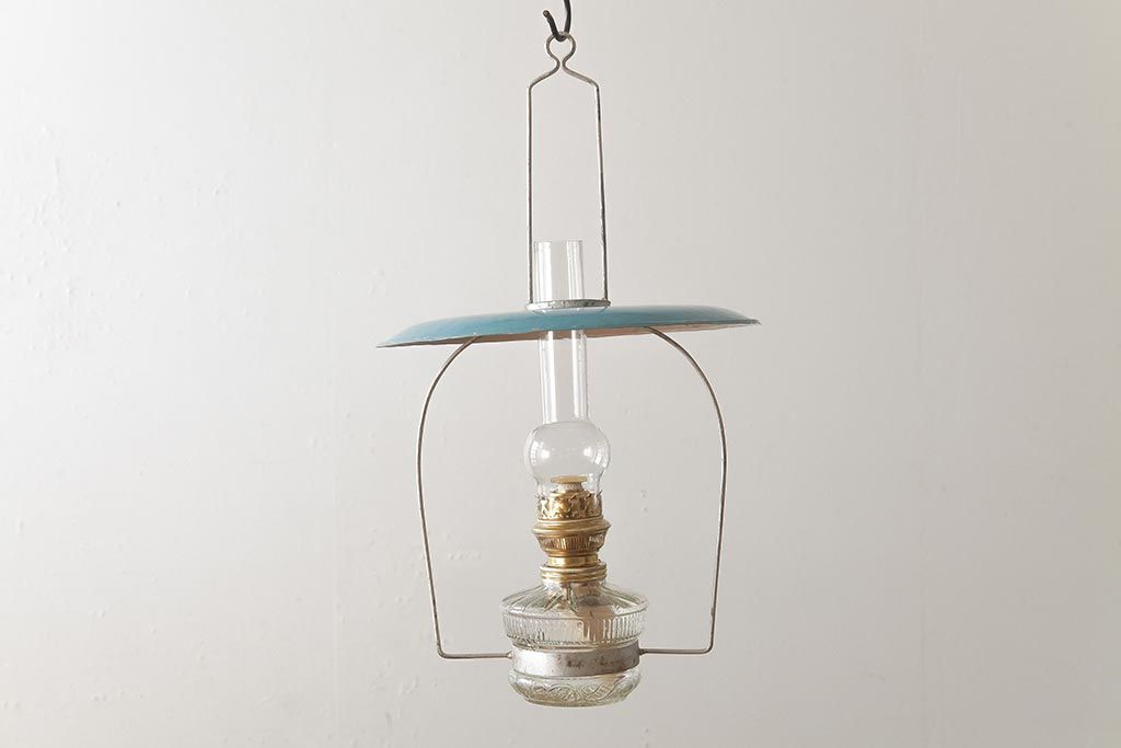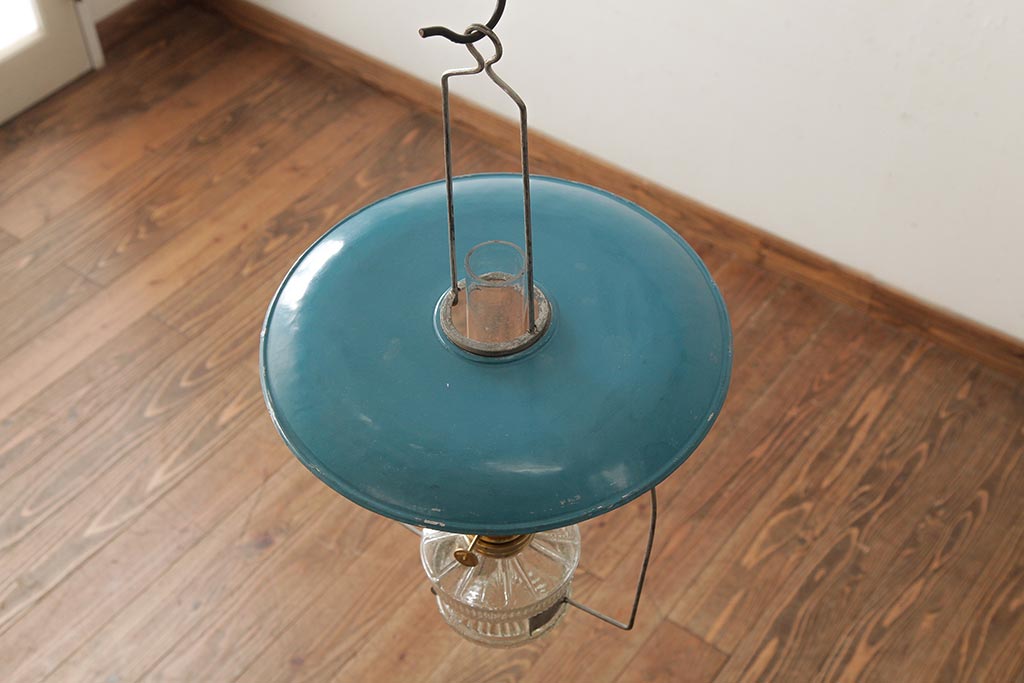 ビンテージ雑貨 アメリカビンテージ 未使用品 デッドストック 青色のアルミシェードがかわいらしいオイルランプ(吊り下げランプ)(R-039559)