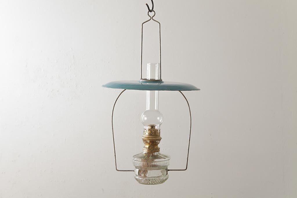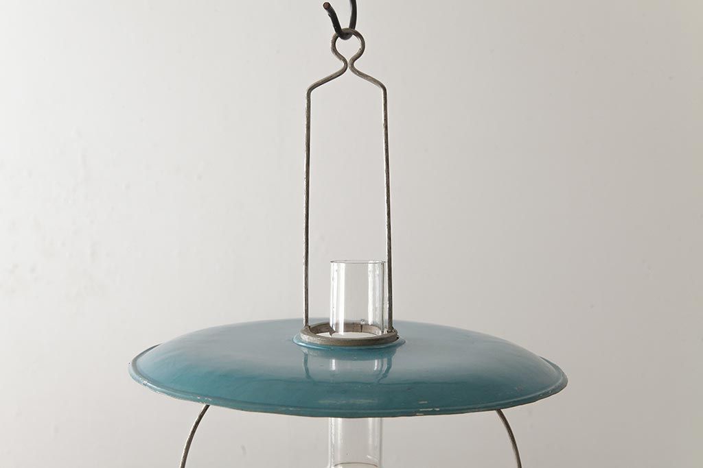 ヴィンテージ雑貨 アメリカビンテージ 未使用品 青色のアルミシェードがかわいらしいオイルランプ(吊り下げランプ)(R-039559)です。