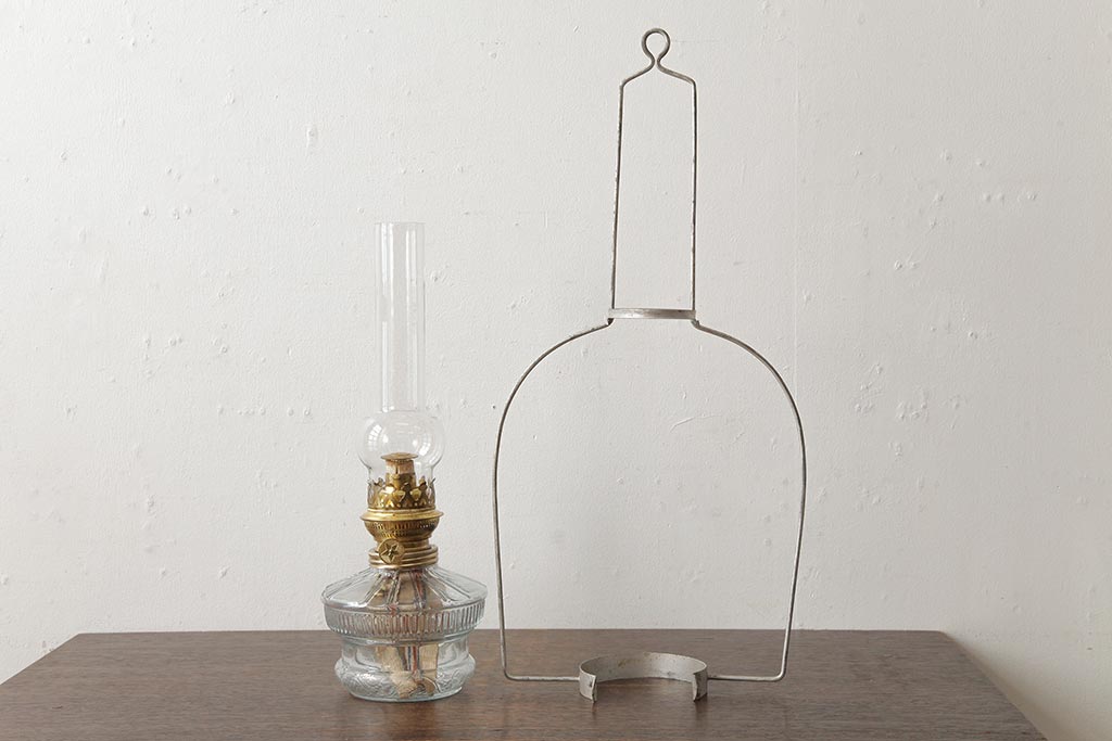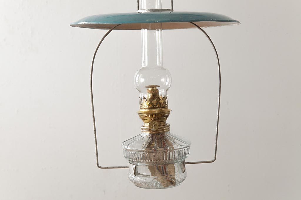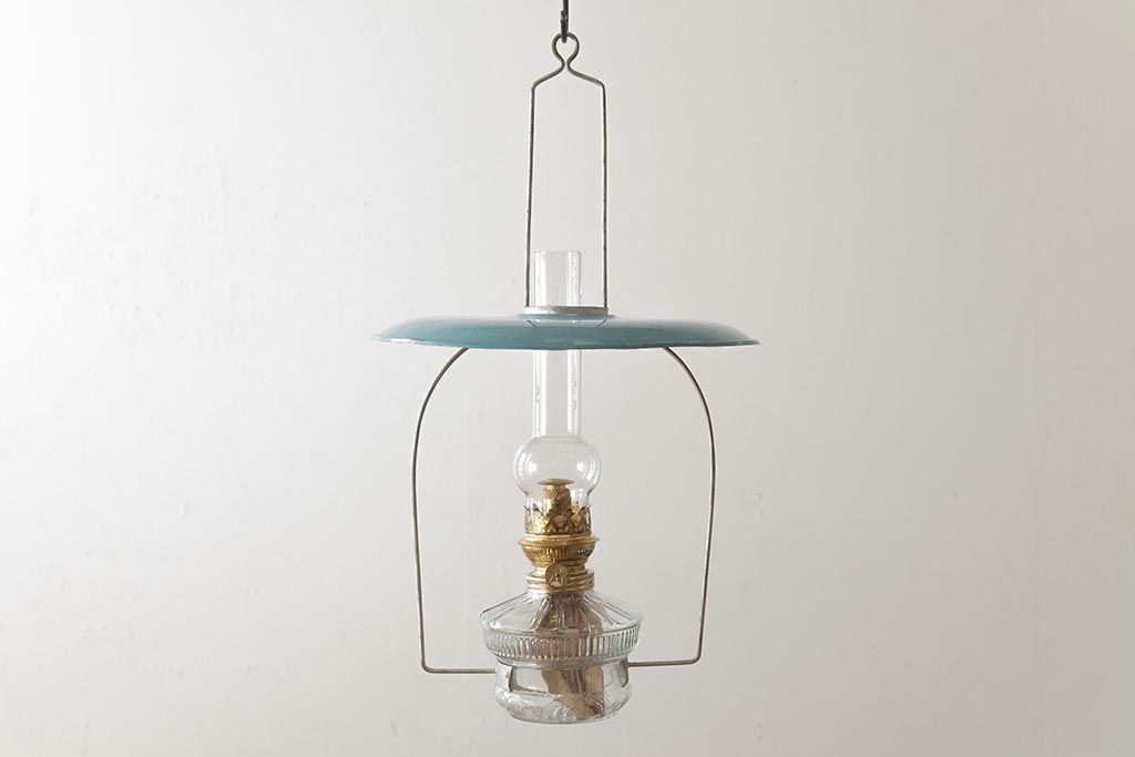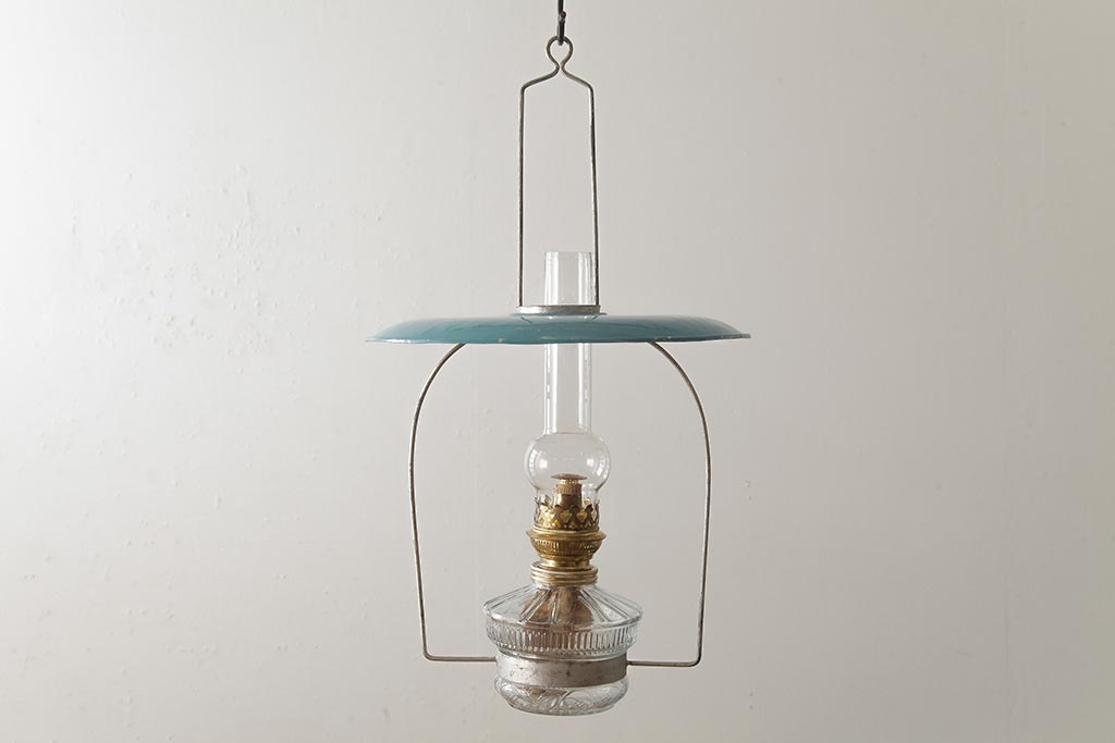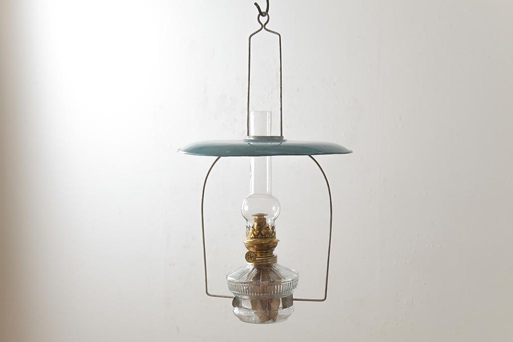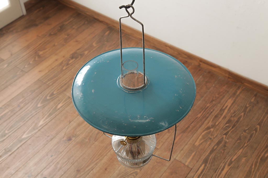 ビンテージ雑貨 アメリカビンテージ 未使用品 デッドストック 青色のアルミシェードがかわいらしいオイルランプ(吊り下げランプ)(R-039560)