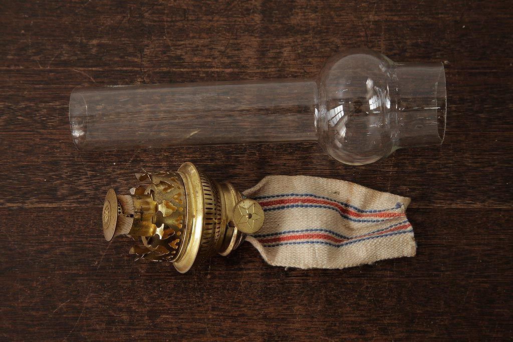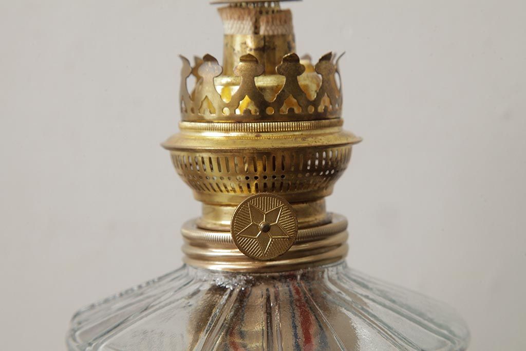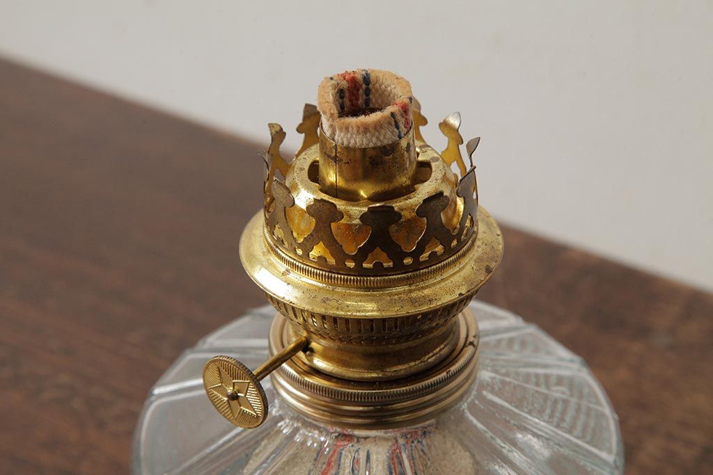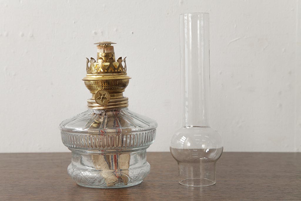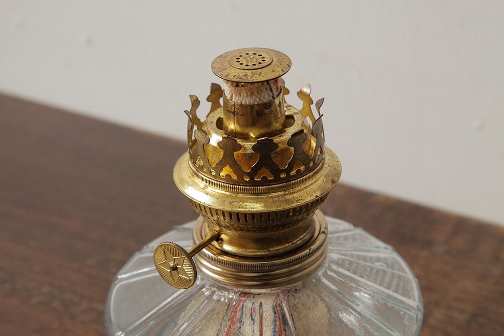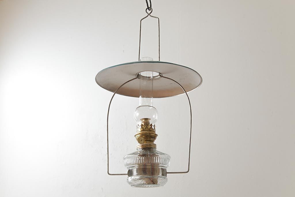 ビンテージ雑貨 アメリカビンテージ 未使用品 デッドストック 青色のアルミシェードがかわいらしいオイルランプ(吊り下げランプ)(R-039560)