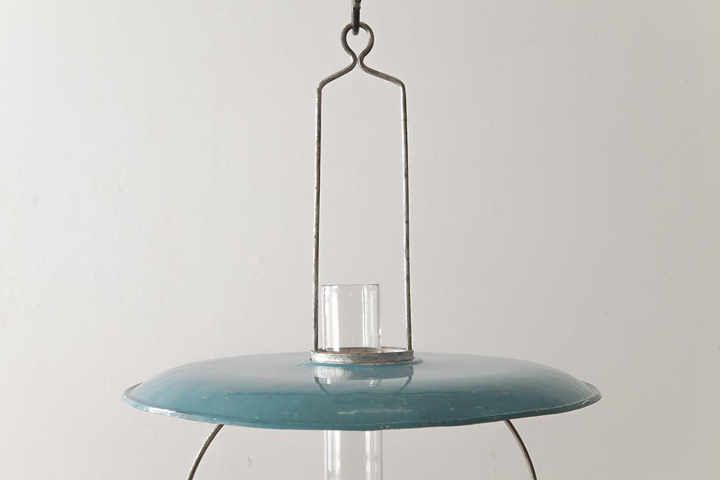 ヴィンテージ雑貨 アメリカビンテージ 未使用品 青色のアルミシェードがかわいらしいオイルランプ(吊り下げランプ)(R-039560)です。