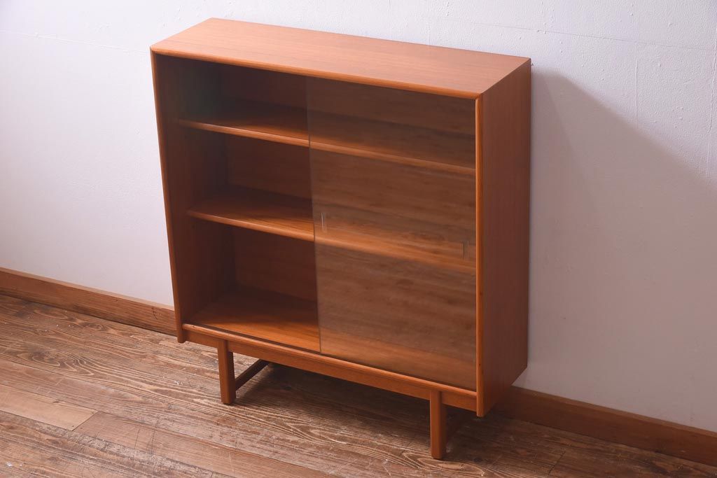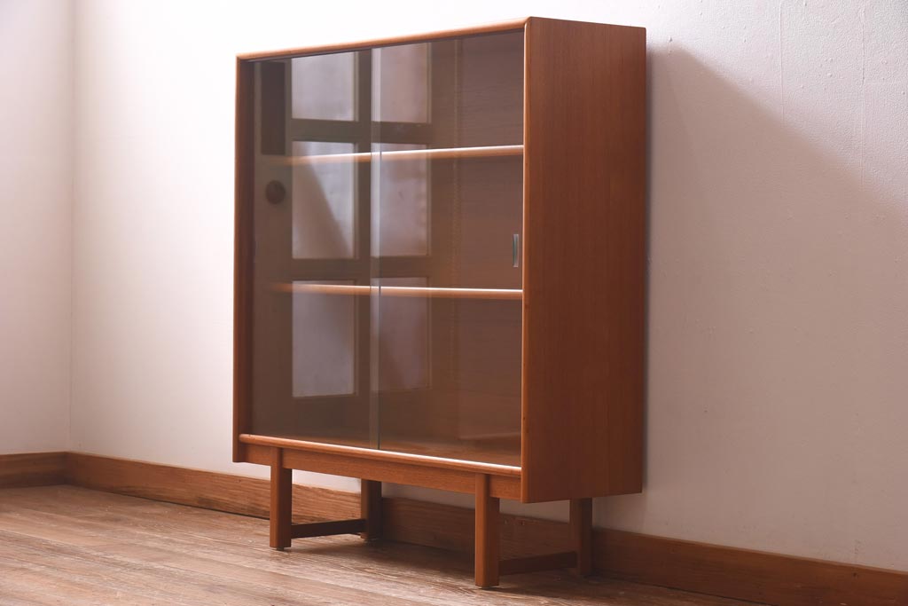 ヴィンテージ家具 北欧ビンテージ チーク材 スタイリッシュなデザインが魅力のディスプレイキャビネット(収納棚、戸棚、飾り棚)(R-039614)