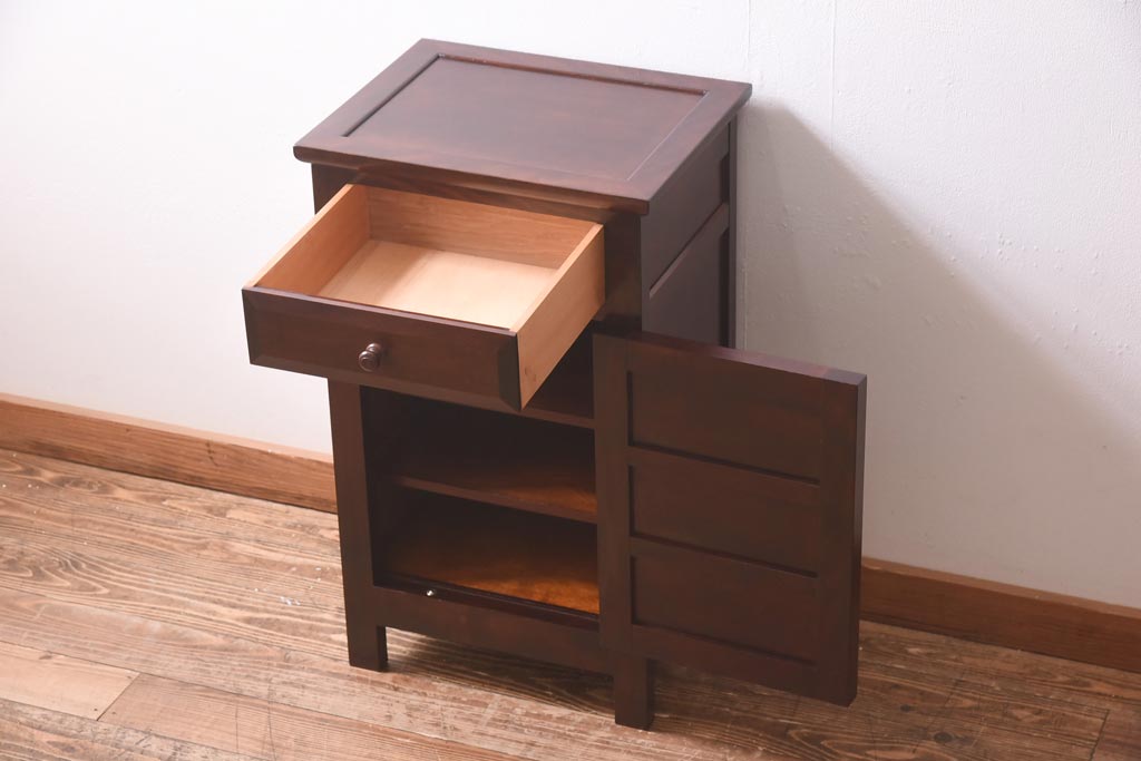 民芸家具 > 中古 松本民芸家具 シックな佇まいのC型電話台(サイドチェスト、引き出し、収納棚)(定価約11万円)(R-039615)