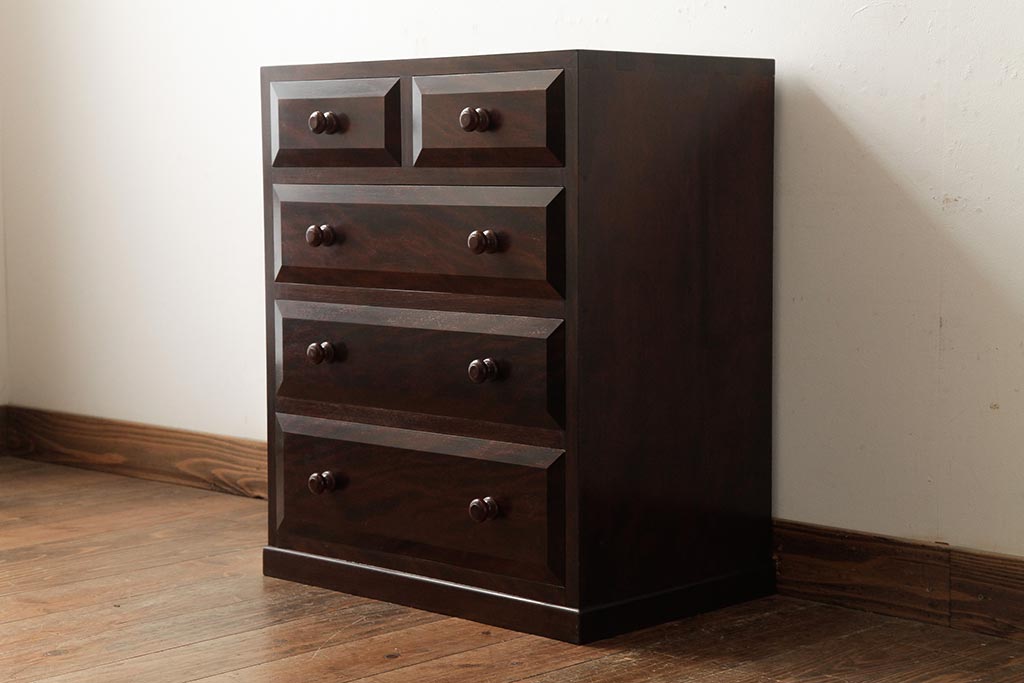 中古 松本民芸家具 シックな佇まいの小引き出し(チェスト)(R-039405)