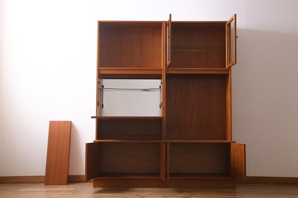 ヴィンテージ家具 イギリスビンテージ G-PLAN(ジープラン) Fresco(フレスコ)シリーズ チーク材 北欧スタイル家具らしいシンプルなウォールユニット(サイドボード、キャビネット)(R-039536)