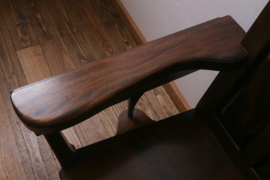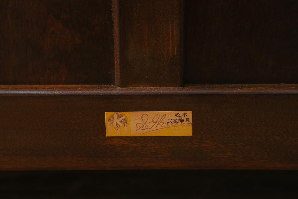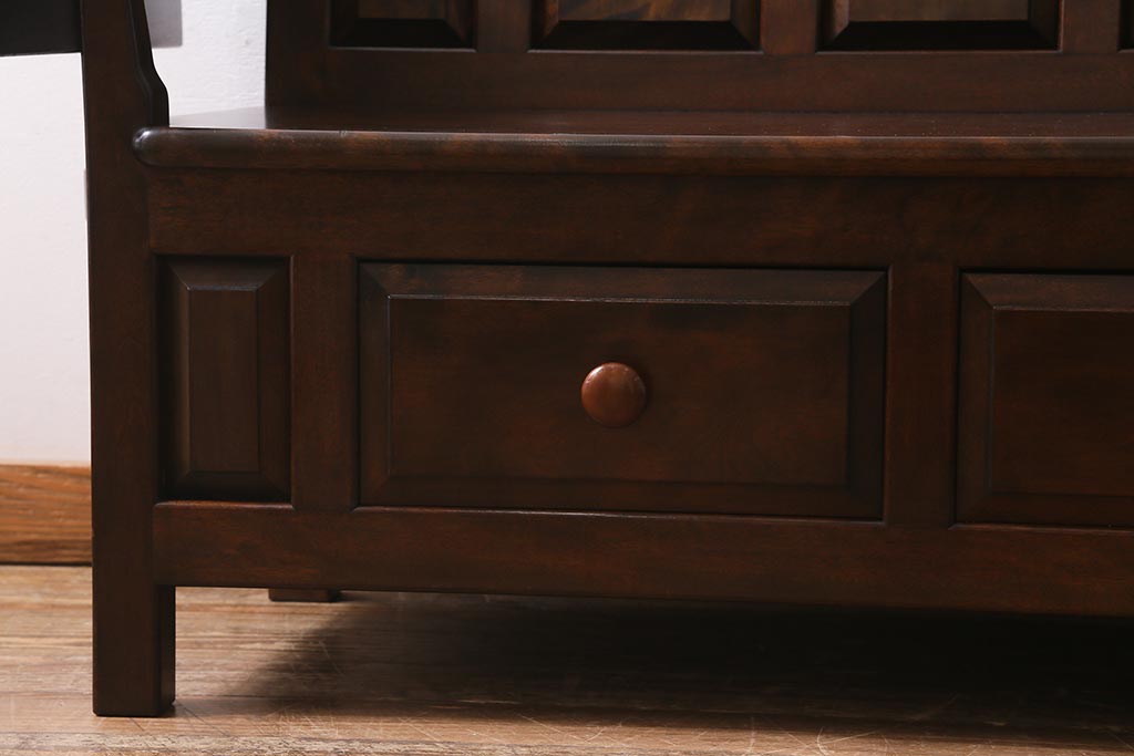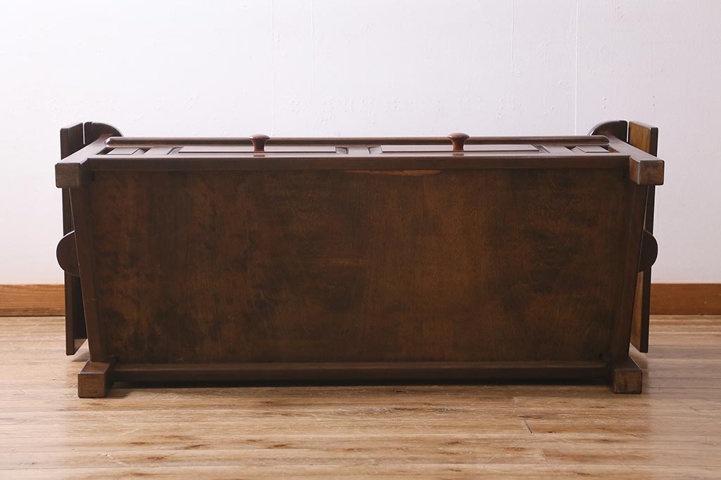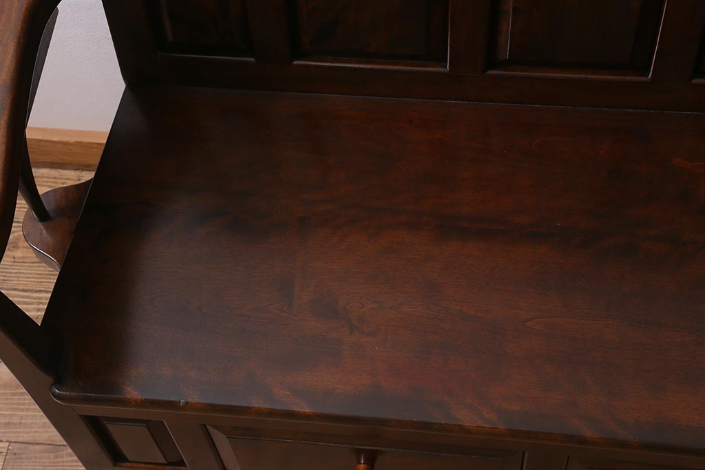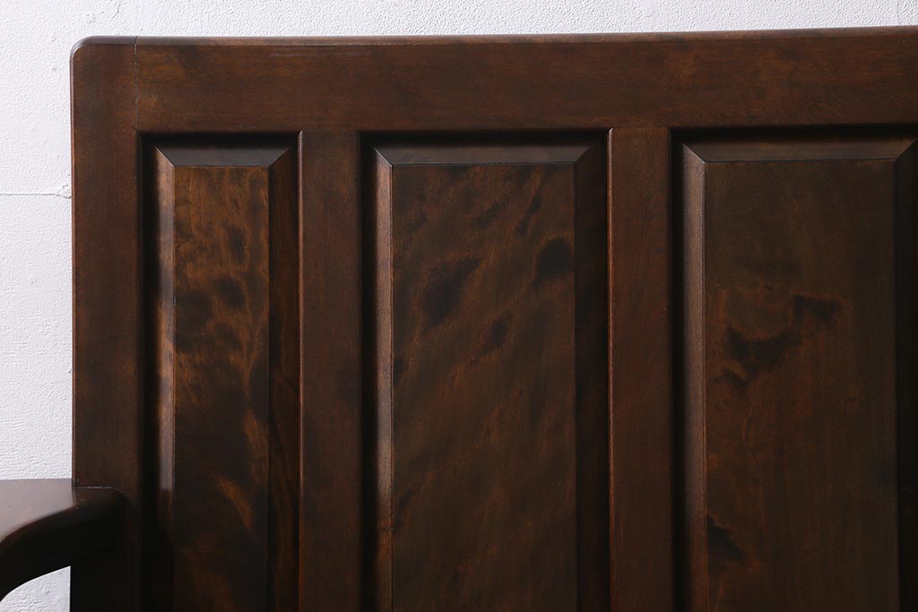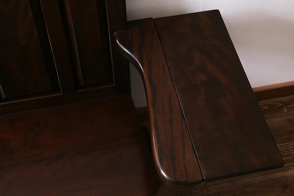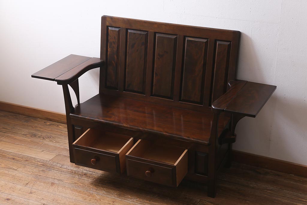椅子・ベンチ> ベンチ > 中古 松本民芸家具 2人掛け シックなデザインの羽根付ベンチ(長椅子、二人掛けベンチ)(R-039522)