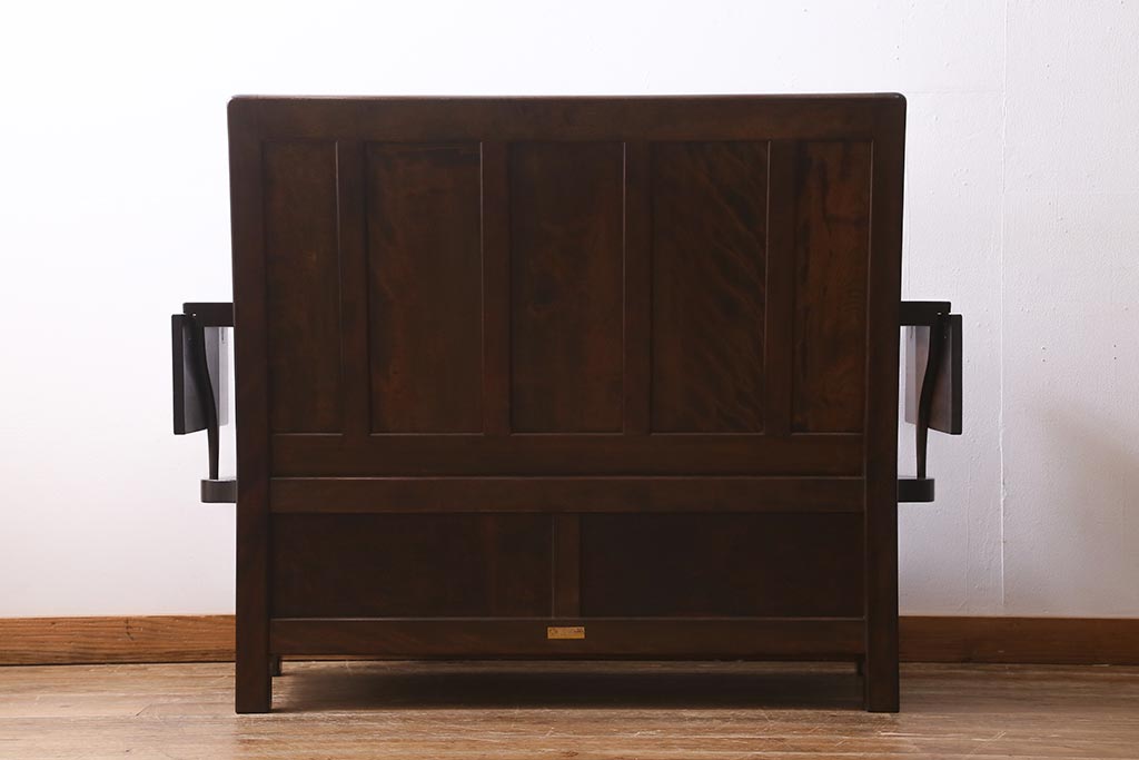 民芸家具 > 中古 松本民芸家具 2人掛け シックなデザインの羽根付ベンチ(長椅子、二人掛けベンチ)(R-039522)