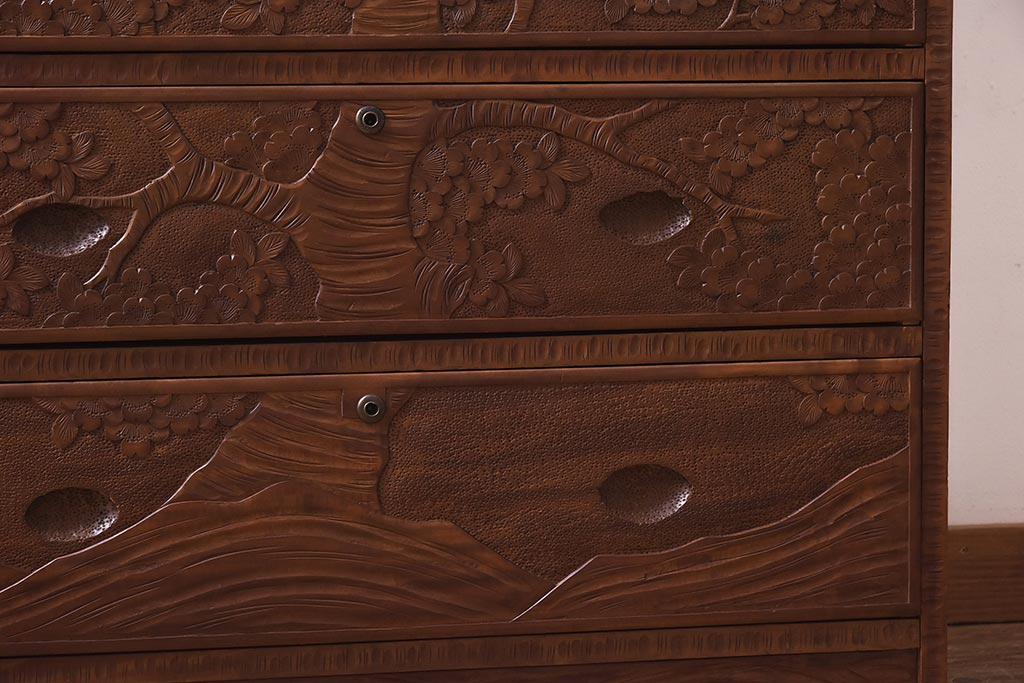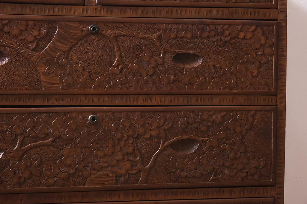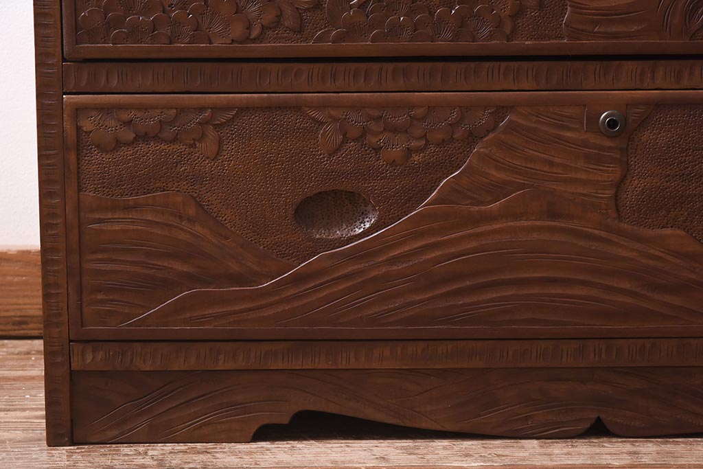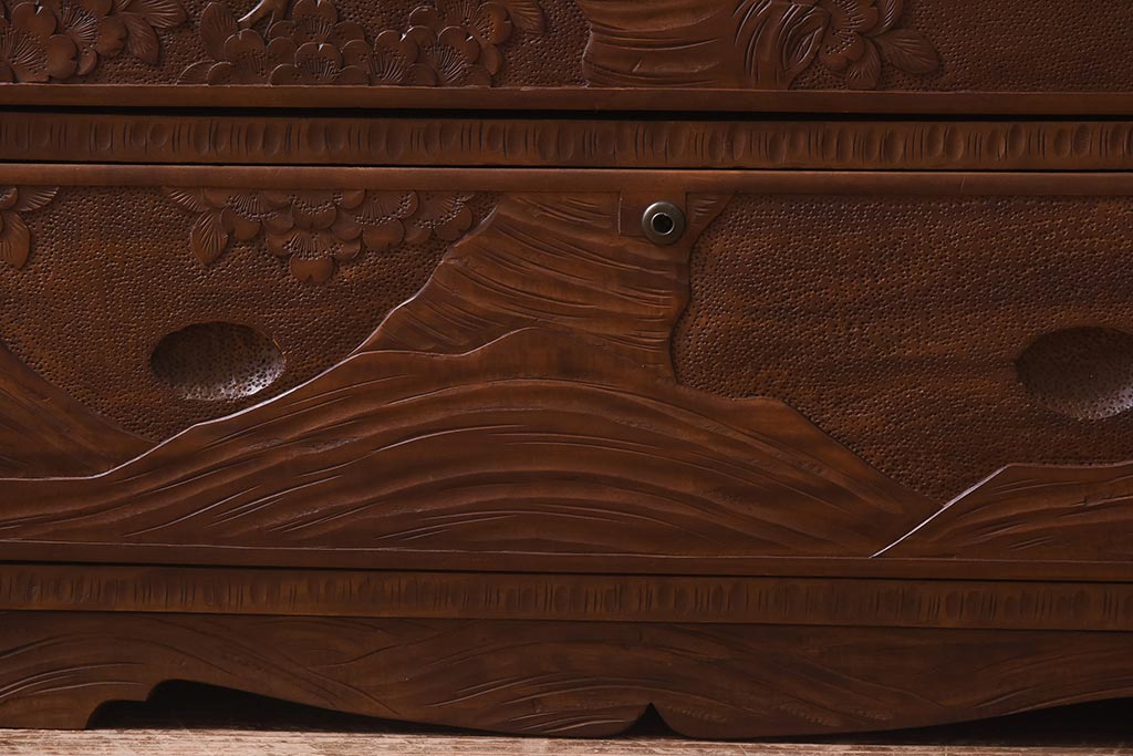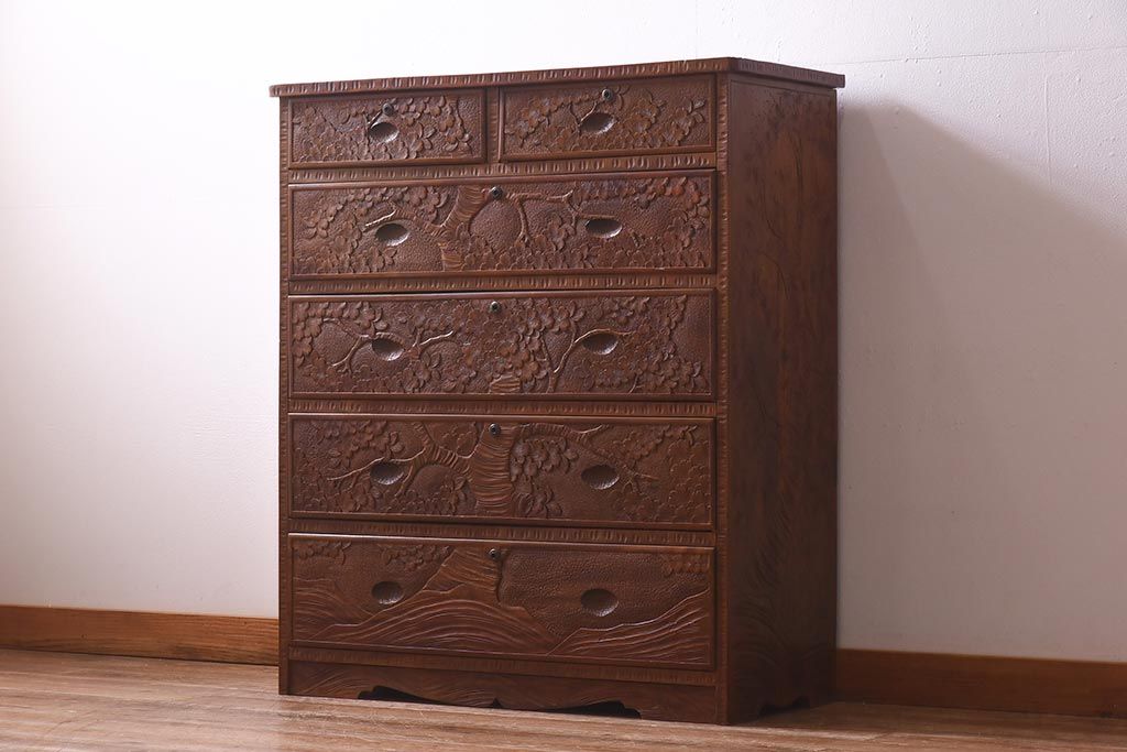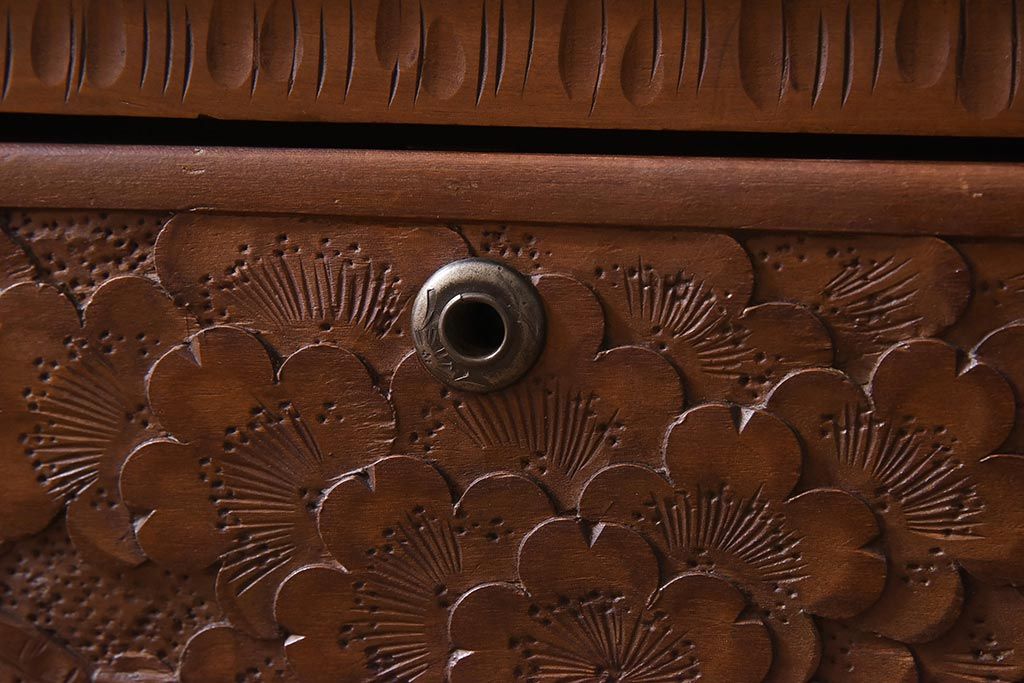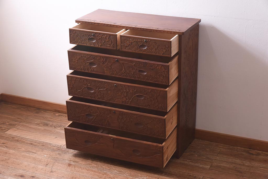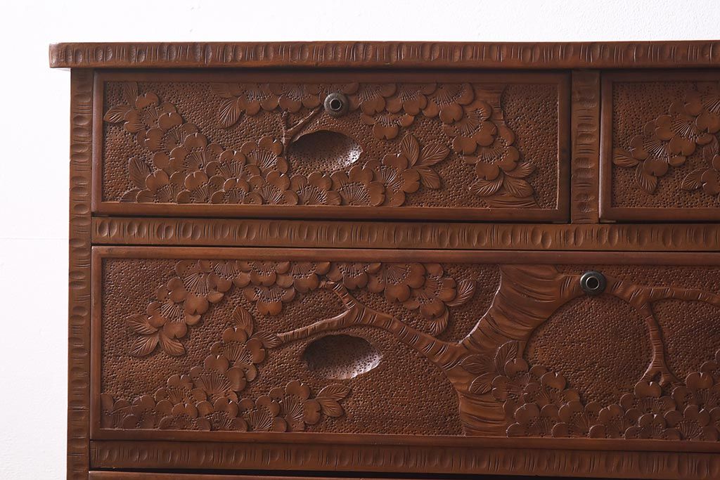 チェスト・引き出し > ビンテージ家具 中古 伝統工芸 軽井沢彫り 和空間を高める桜の浮き彫りのビンテージチェスト(引き出し)(R-039629)