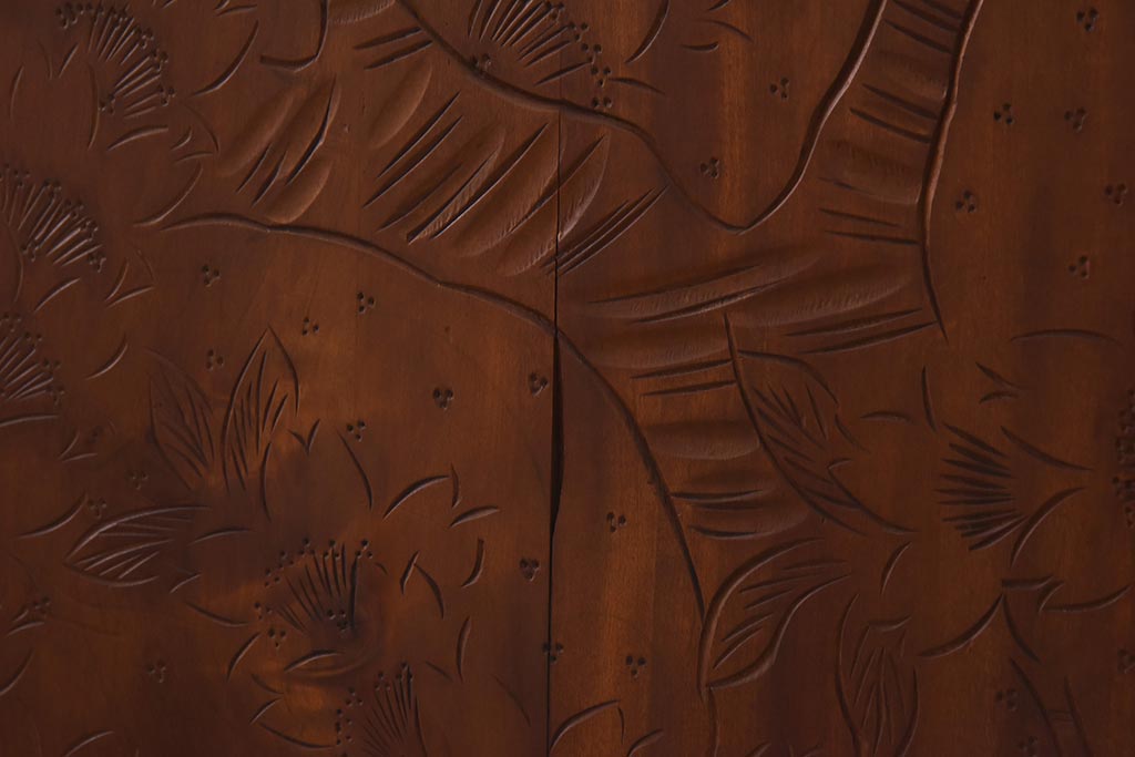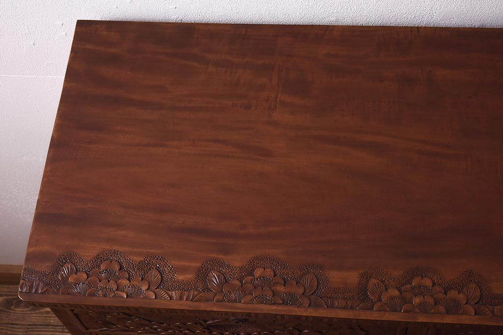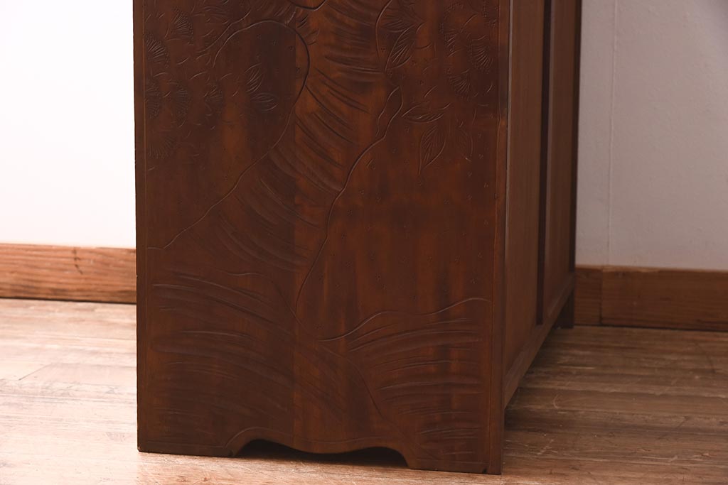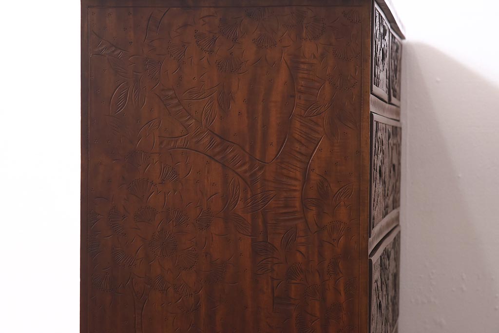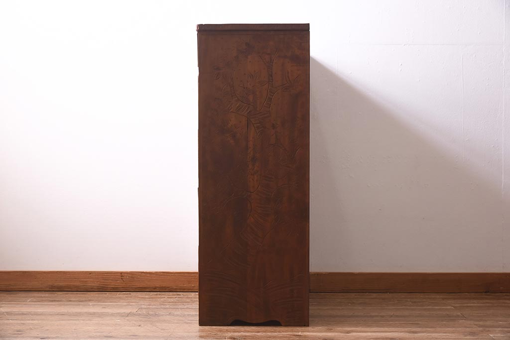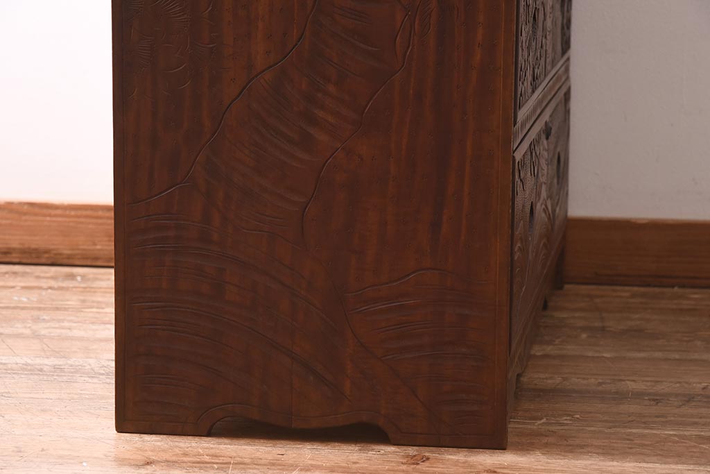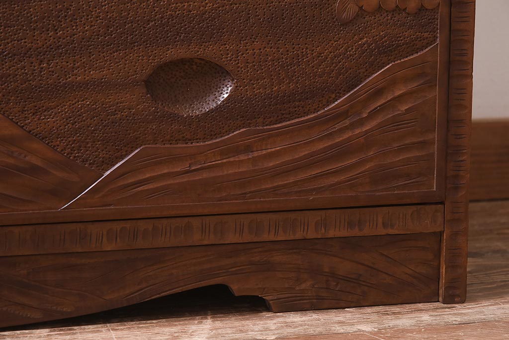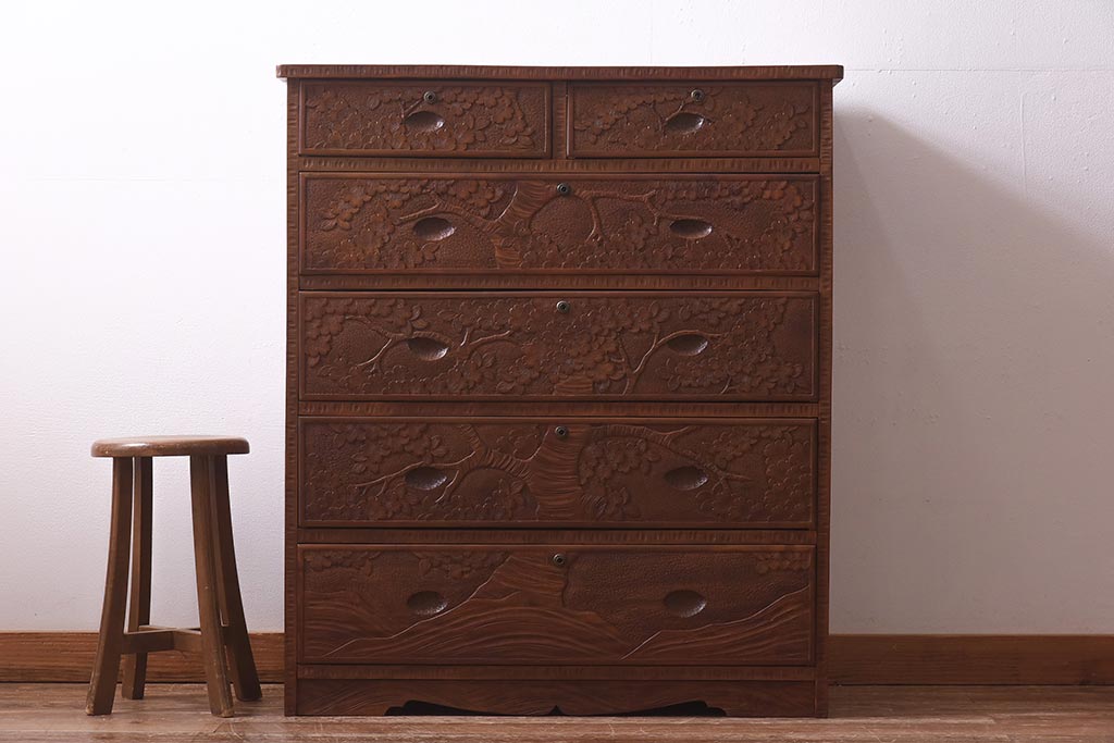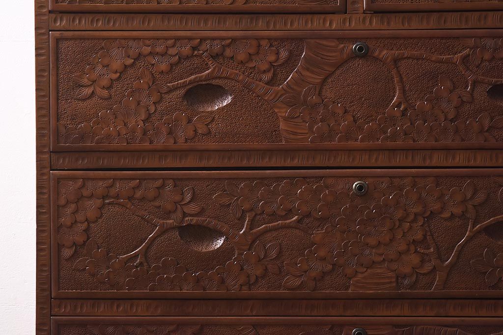 チェスト・引き出し > ビンテージ家具 中古 伝統工芸 軽井沢彫り 和空間を高める桜の浮き彫りのビンテージチェスト(引き出し)(R-039629)