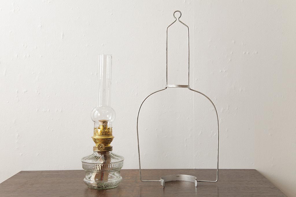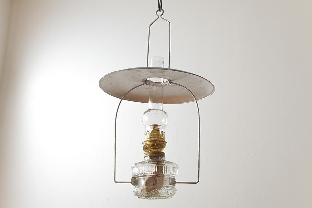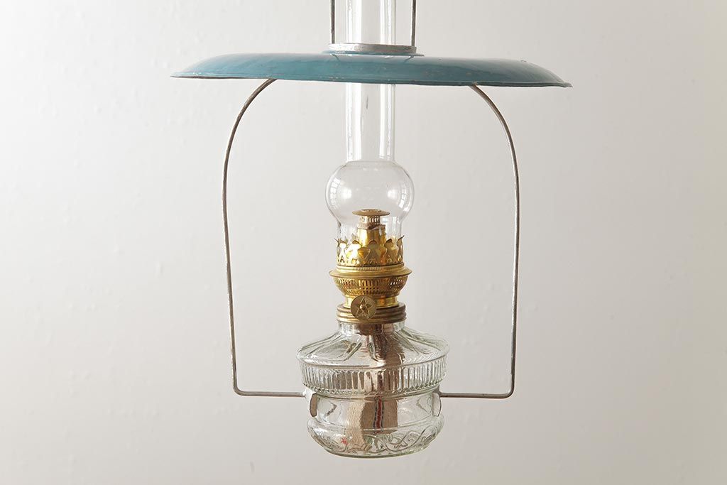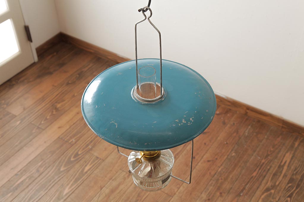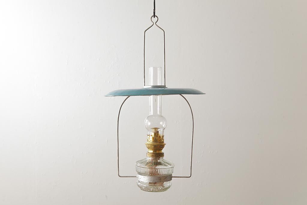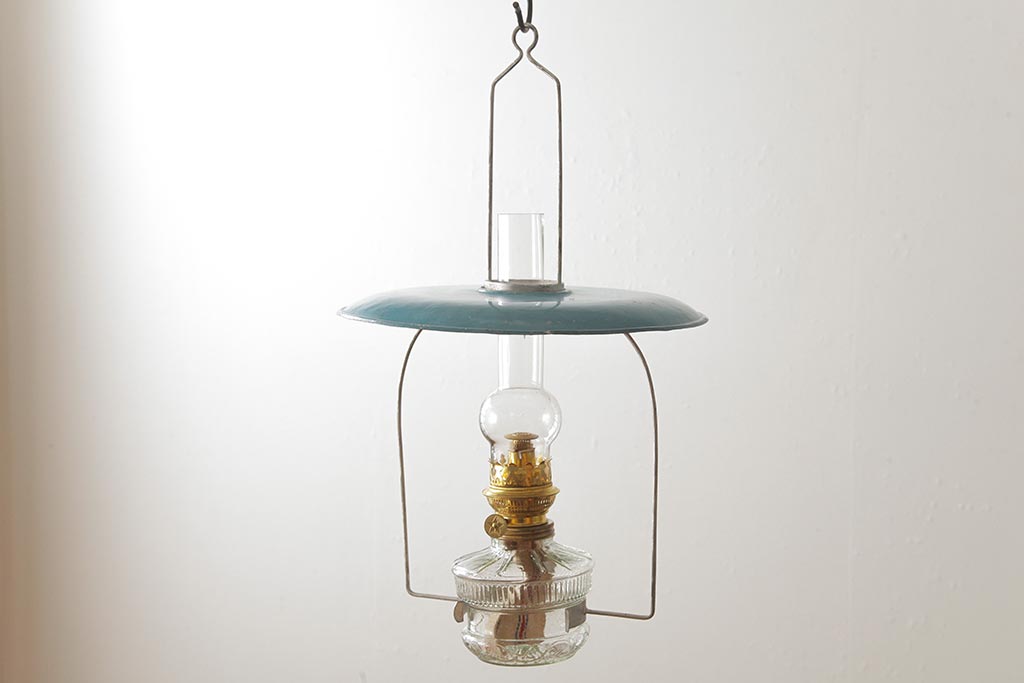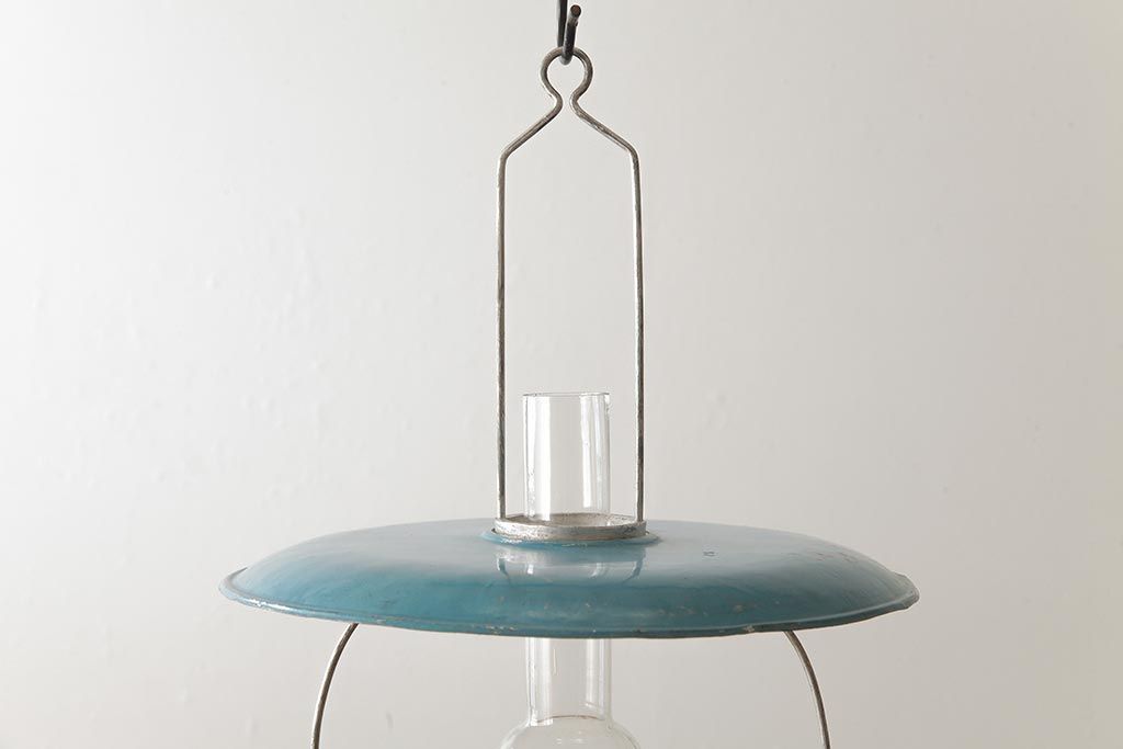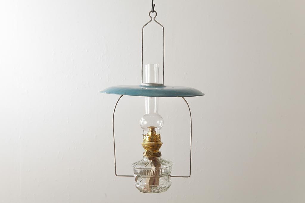 ヴィンテージ雑貨 アメリカビンテージ 未使用品 デッドストック 青色のアルミシェードがかわいらしいオイルランプ(吊り下げランプ)(R-039563)