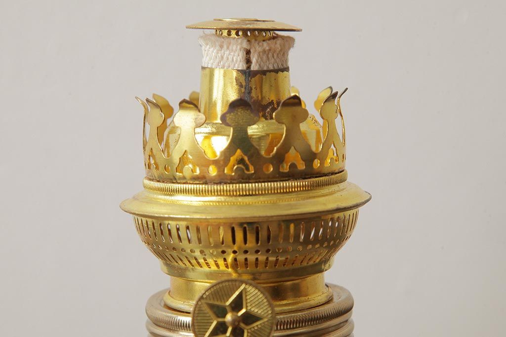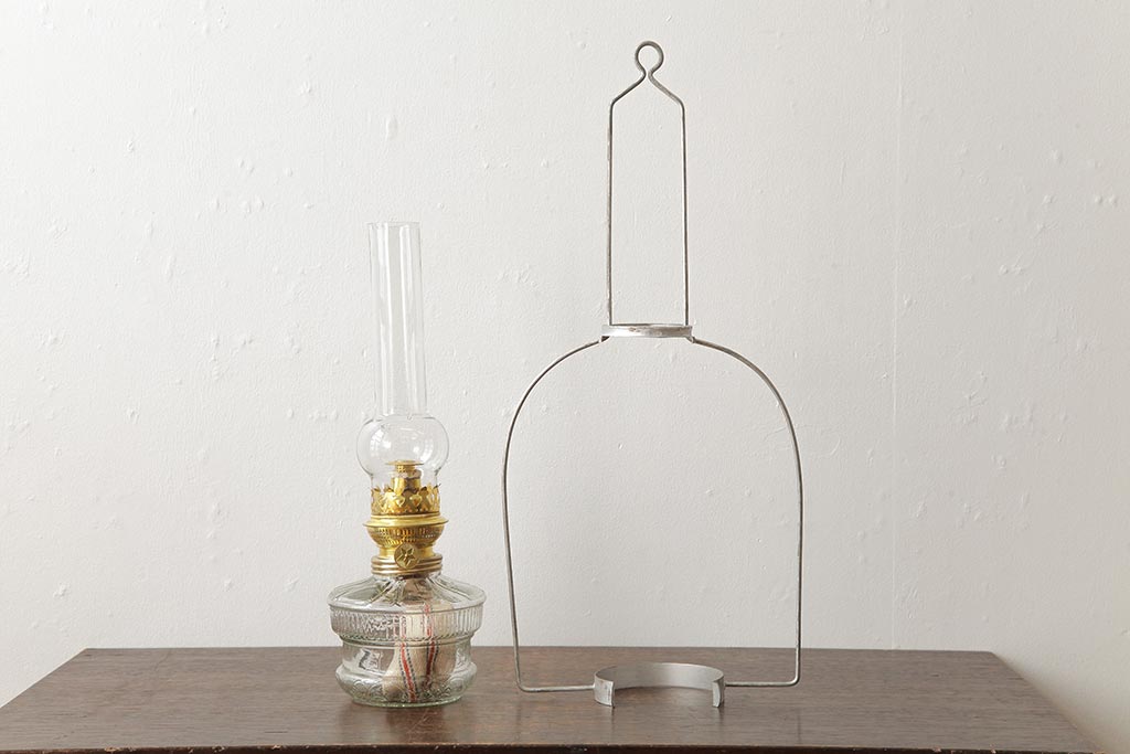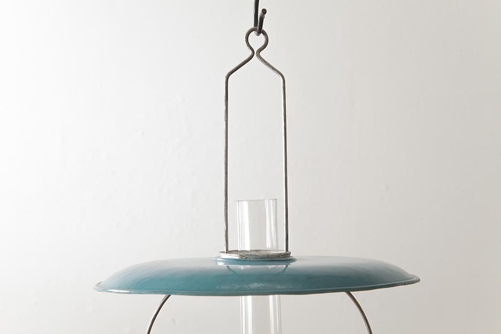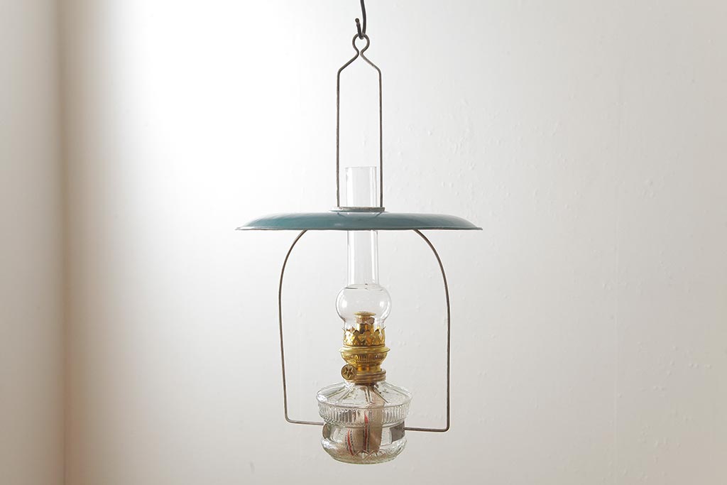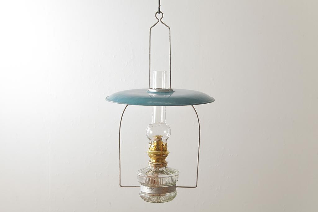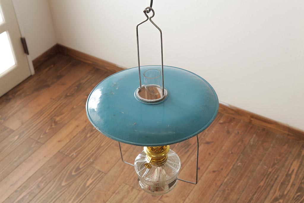 ヴィンテージ雑貨 アメリカビンテージ 未使用品 デッドストック 青色のアルミシェードがかわいらしいオイルランプ(吊り下げランプ)(R-039564)