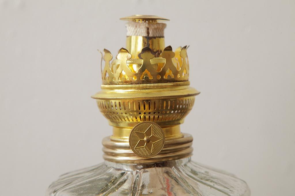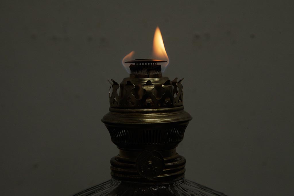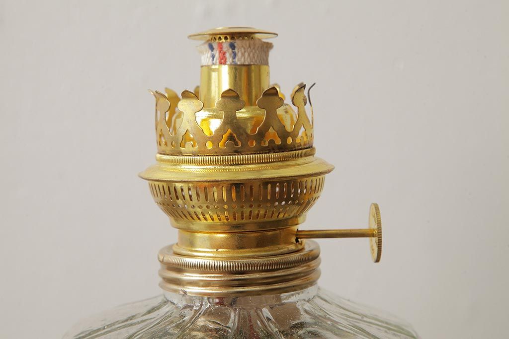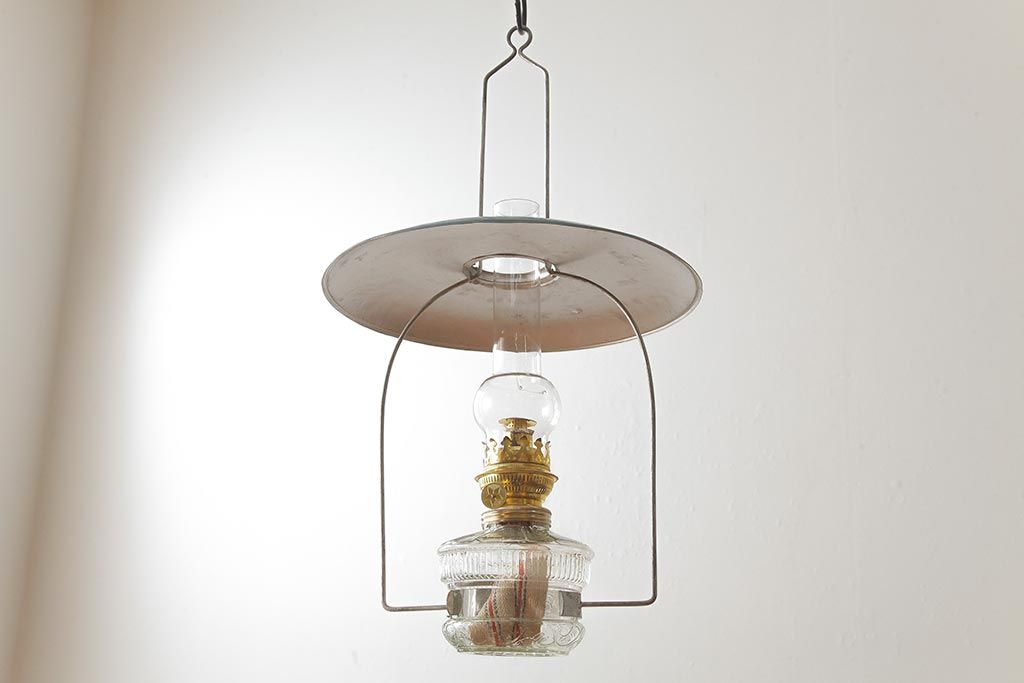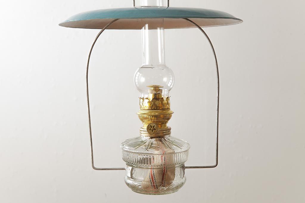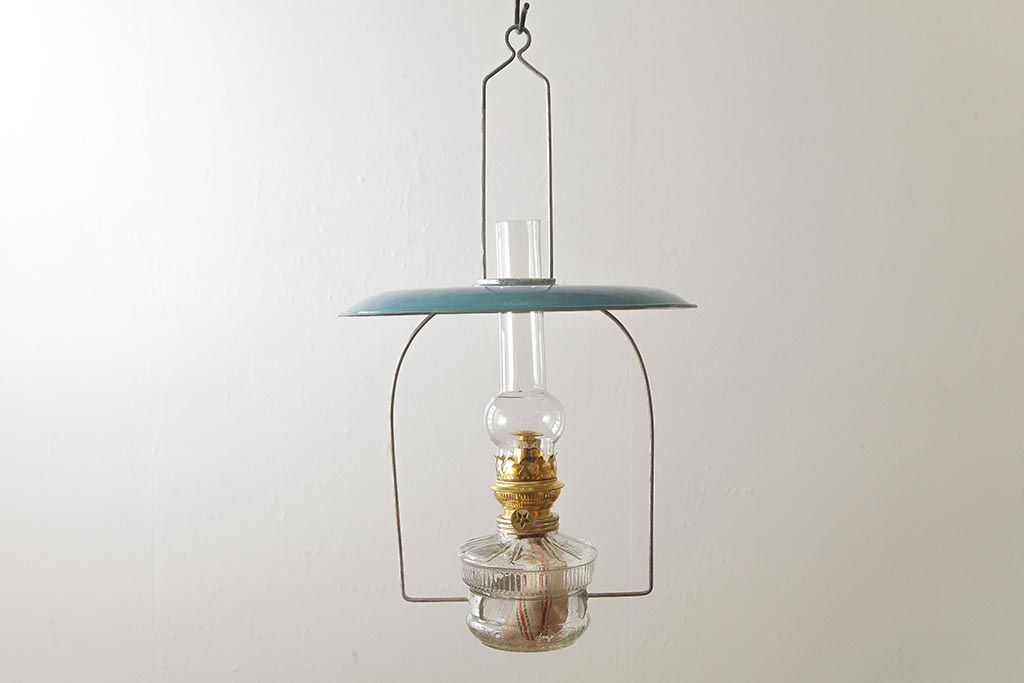 ヴィンテージ雑貨 アメリカビンテージ 未使用品 デッドストック 青色のアルミシェードがかわいらしいオイルランプ(吊り下げランプ)(R-039564)です。