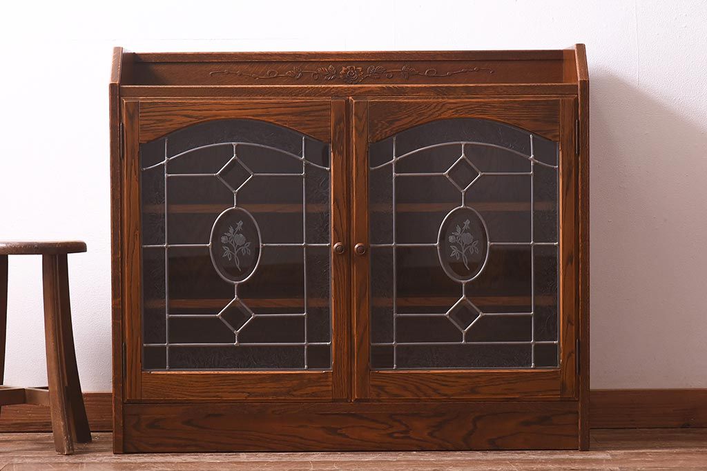 キャビネット・戸棚> サイドキャビネット > 中古 三越家具 Brugge(ブルージュ) ステンドグラスが上品なサイドボード(サイドキャビネット、戸棚、収納棚)(定価約17万円)(R-039624)