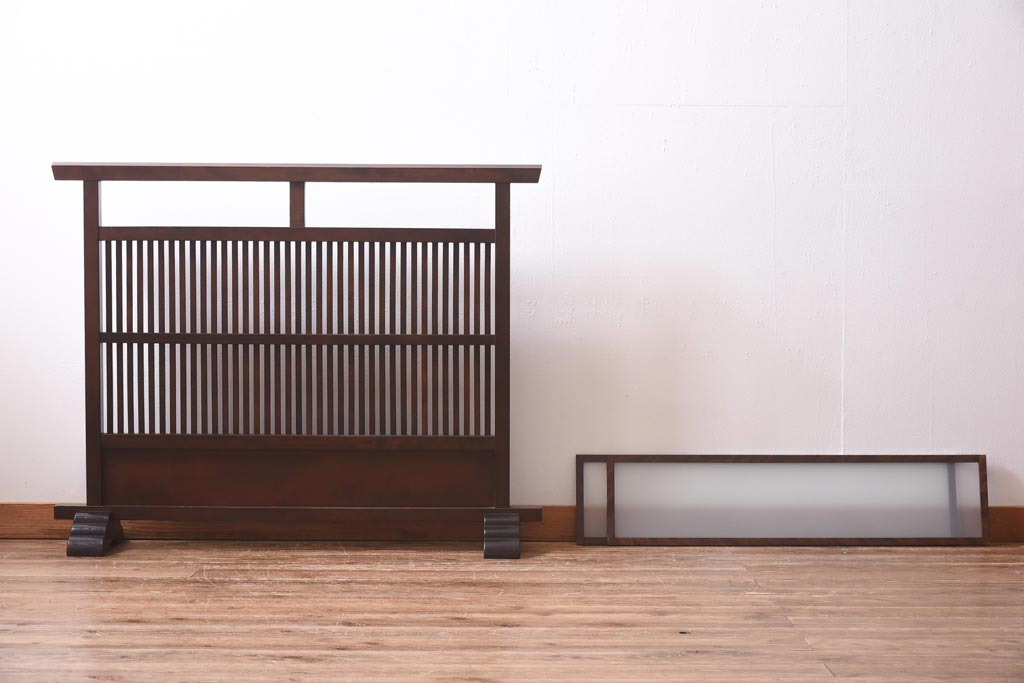 中古 松本民芸家具 上品な和の空間を演出するすりガラス付き衝立(つい立て、パーテーション)(R-039611)です。