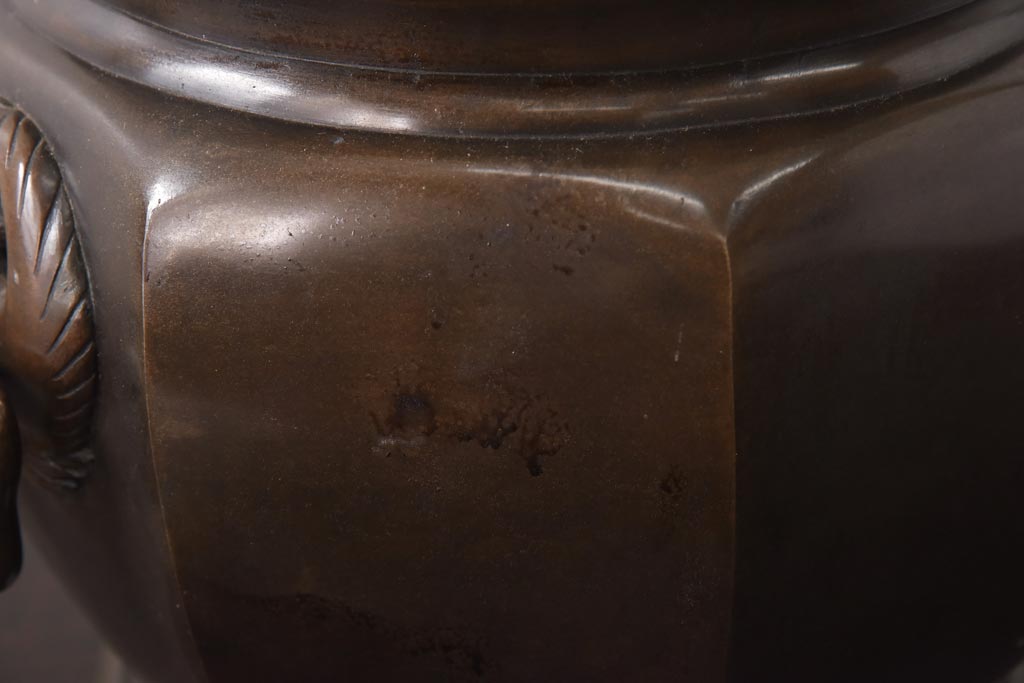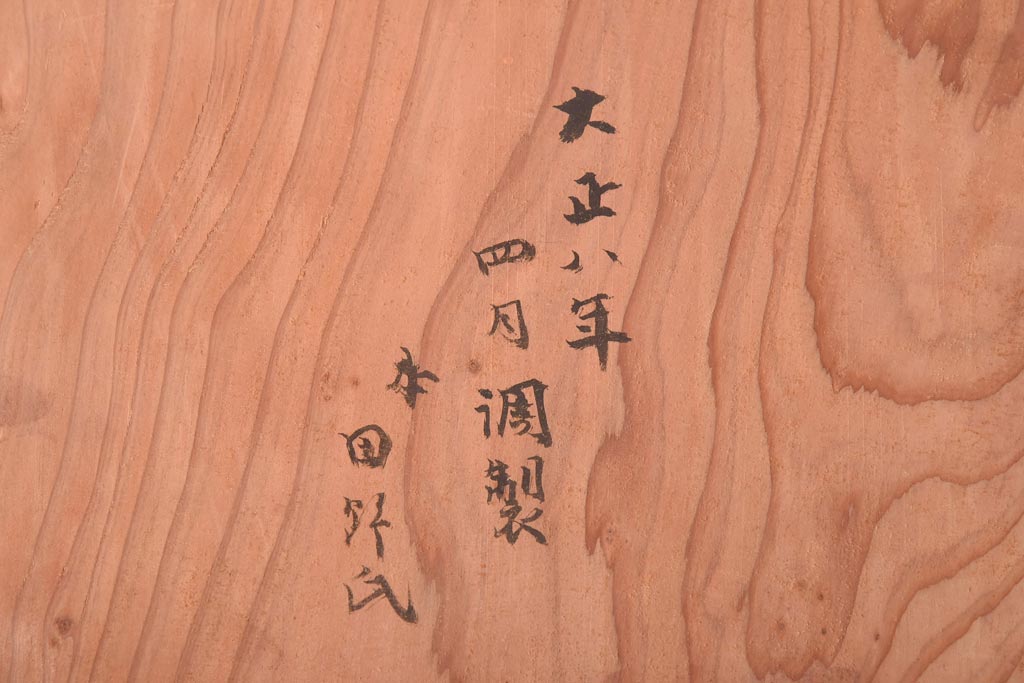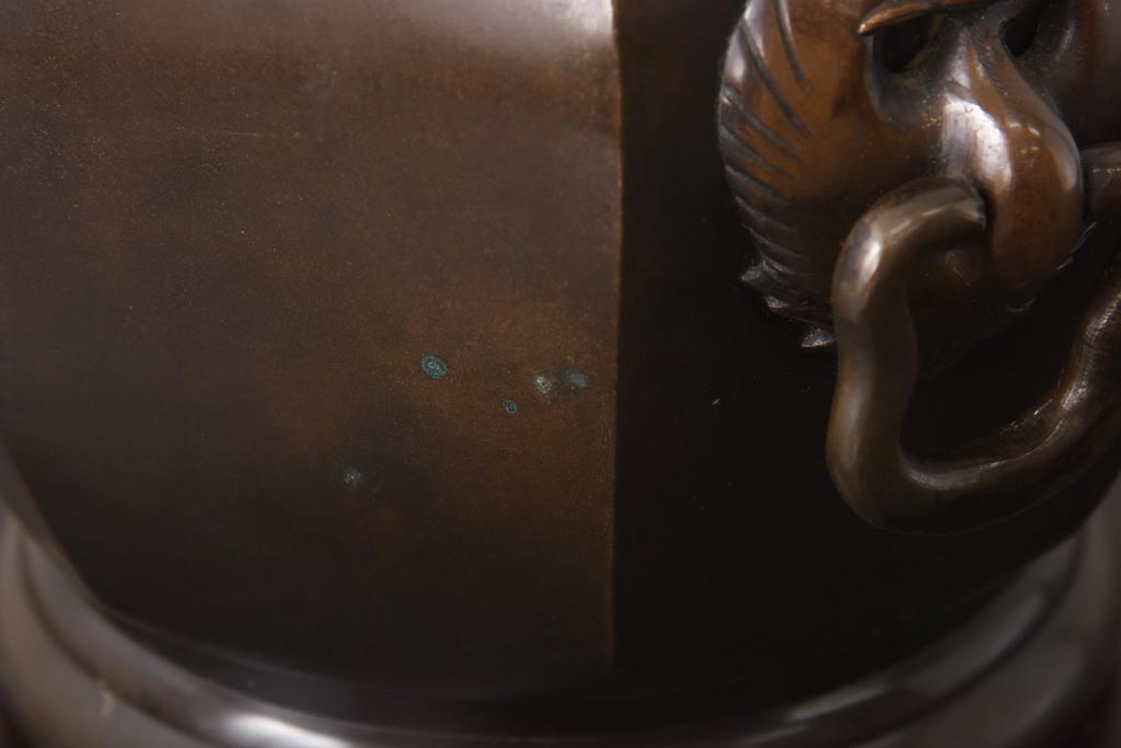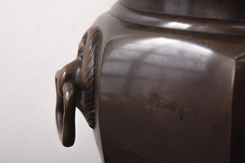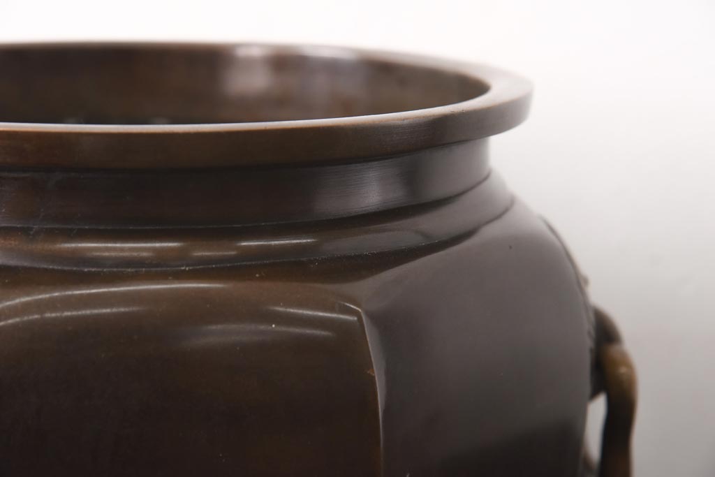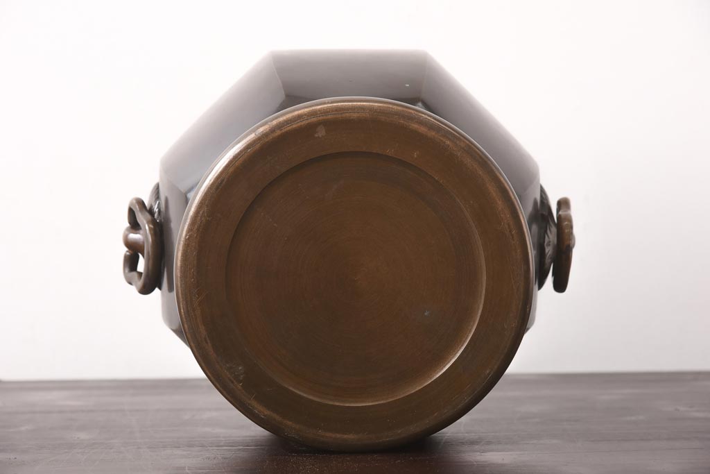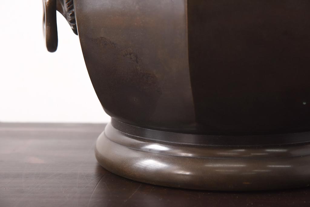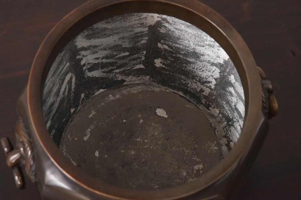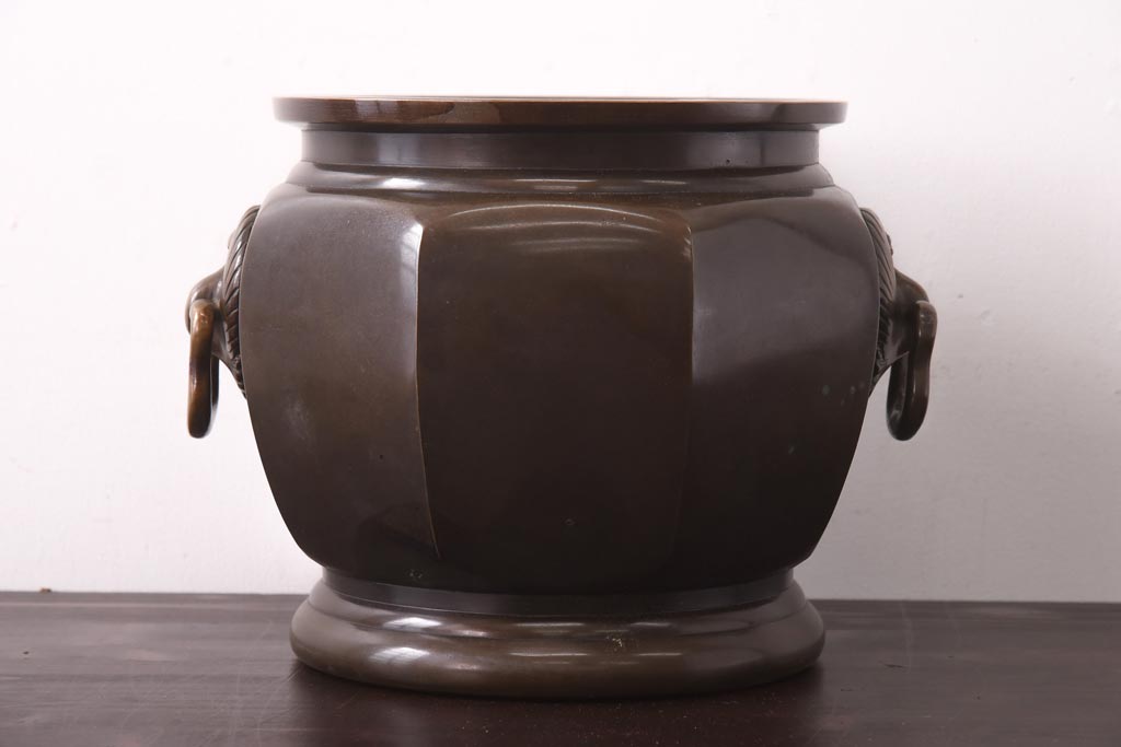 アンティーク雑貨 古民具 大正期 鶴紋 耳付銅製火鉢・箱付き(手炙り)(R-039258)
