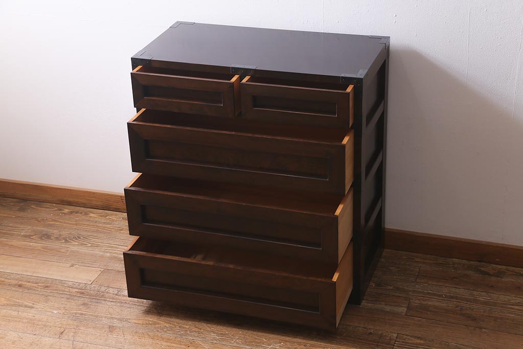中古 松本民芸家具 和モダンな507型金具付タンス(チェスト、引き出し)(定価約41万9千円)(R-039681)