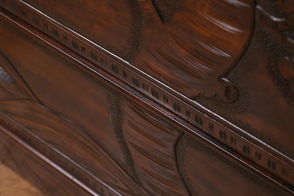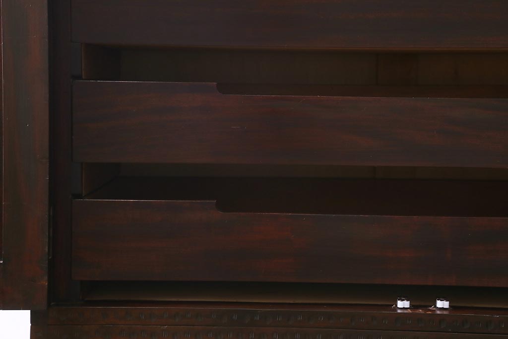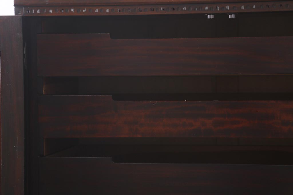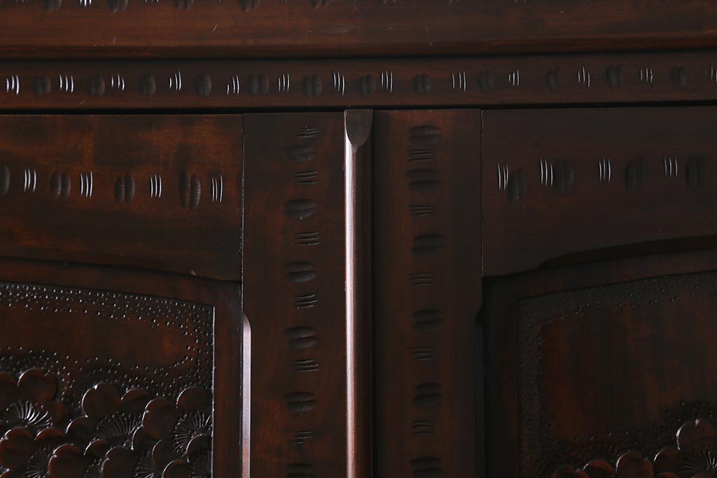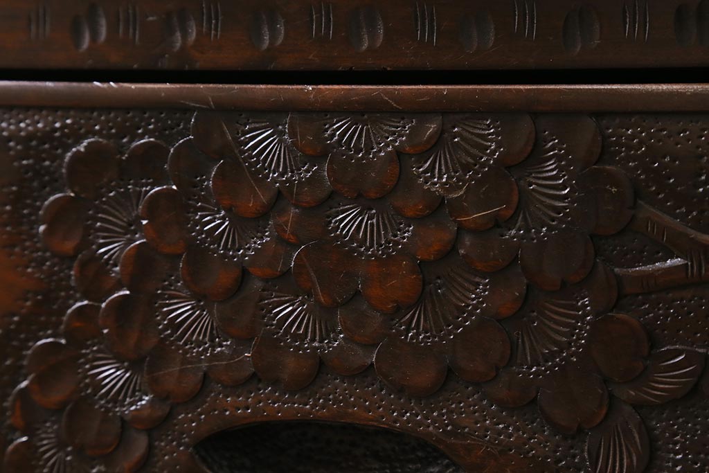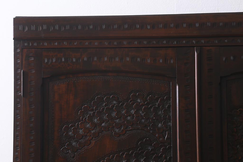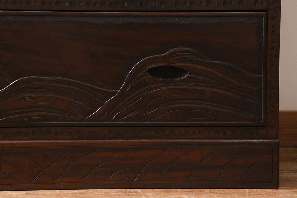 民芸家具 > 中古 伝統工芸 軽井沢彫り 咲き誇る桜の浮き彫りが目を引く重ね衣装箪笥(和タンス、引き出し、衣装盆付き、着物箪笥)(R-039717)