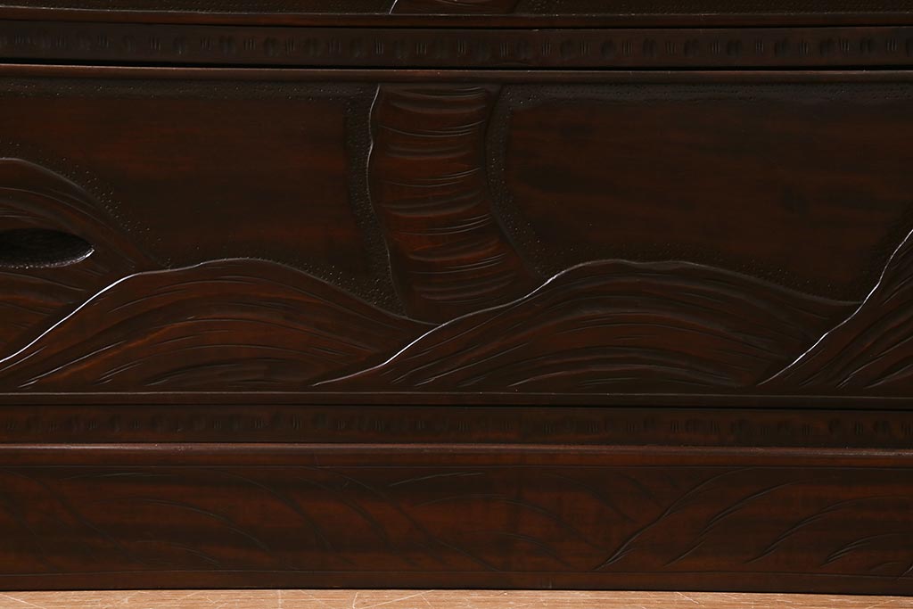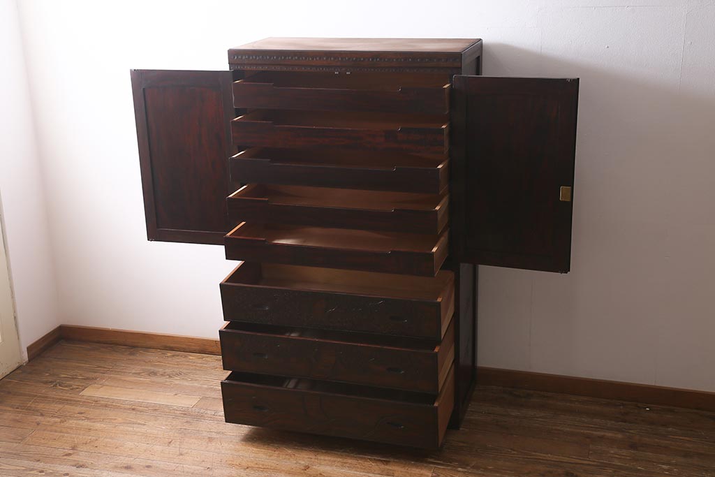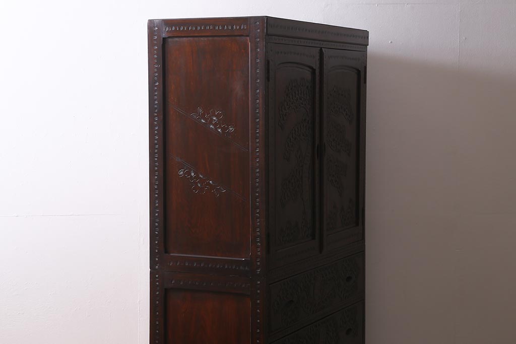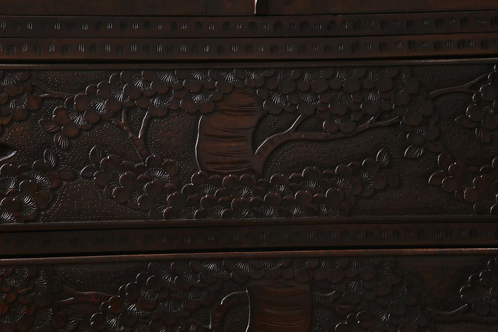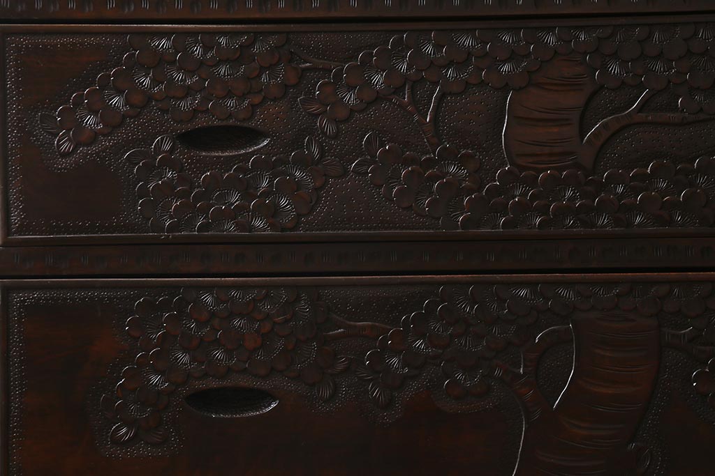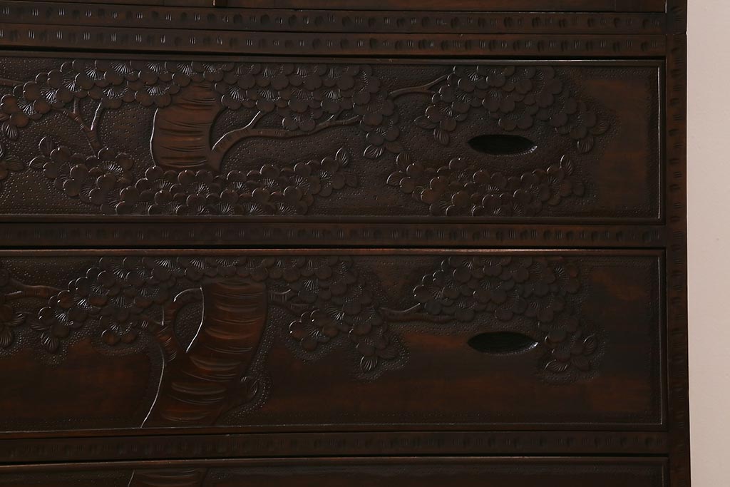 和箪笥> 衣装箪笥 > 中古 伝統工芸 軽井沢彫り 咲き誇る桜の浮き彫りが目を引く重ね衣装箪笥(和タンス、引き出し、衣装盆付き、着物箪笥)(R-039717)