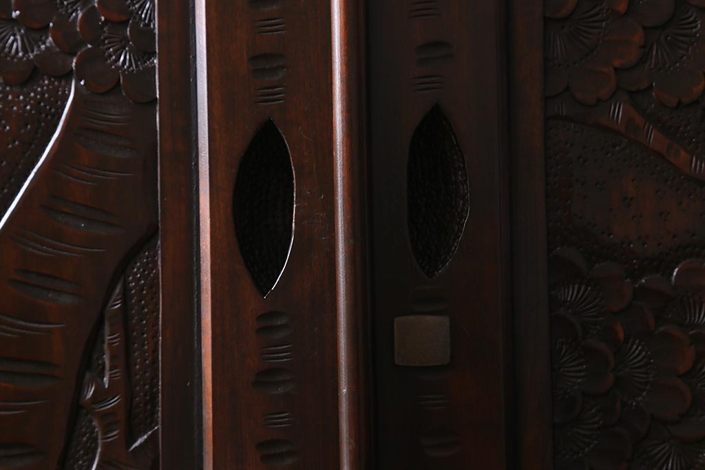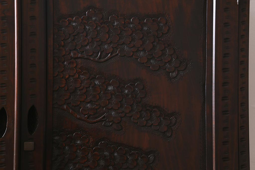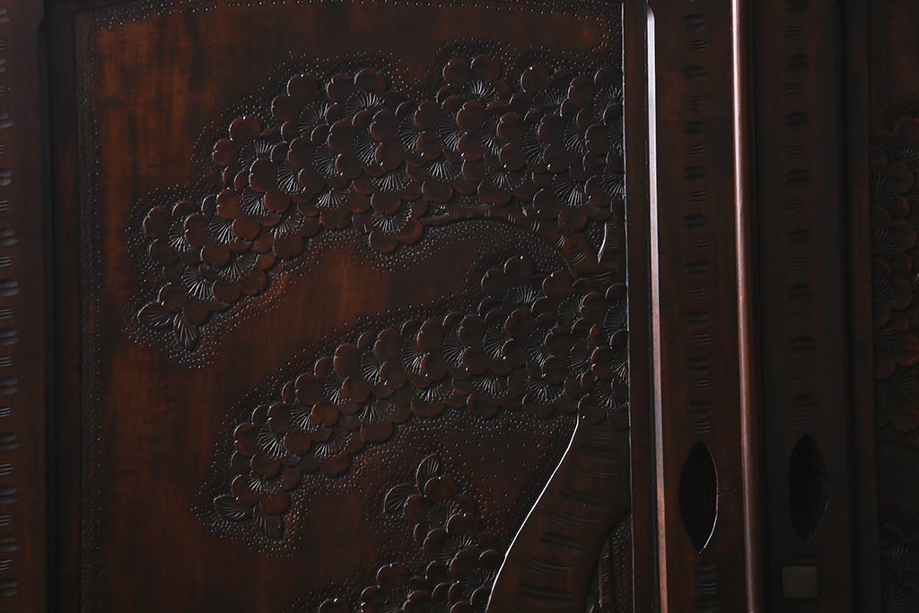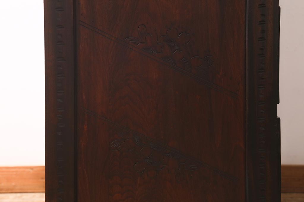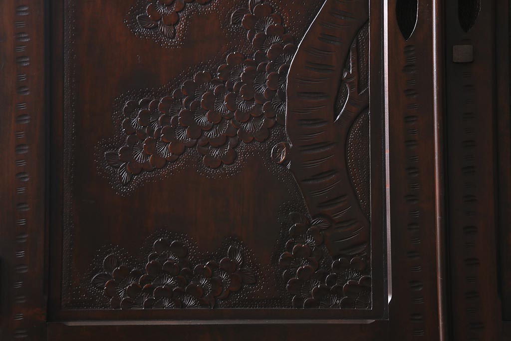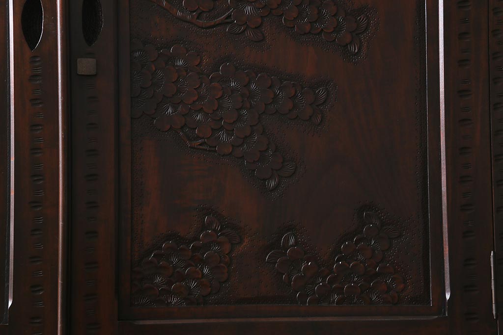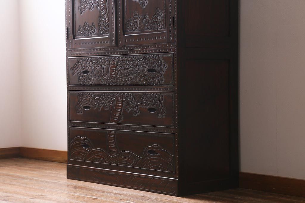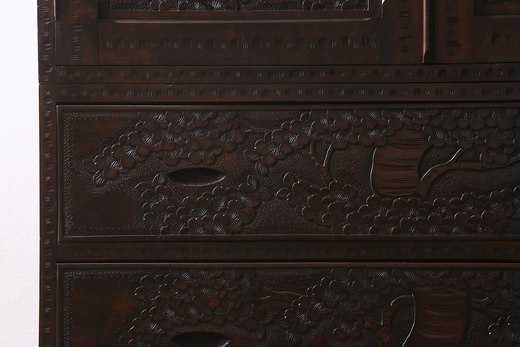和箪笥 > 中古 伝統工芸 軽井沢彫り 咲き誇る桜の浮き彫りが目を引く重ね衣装箪笥(和タンス、引き出し、衣装盆付き、着物箪笥)(R-039717)