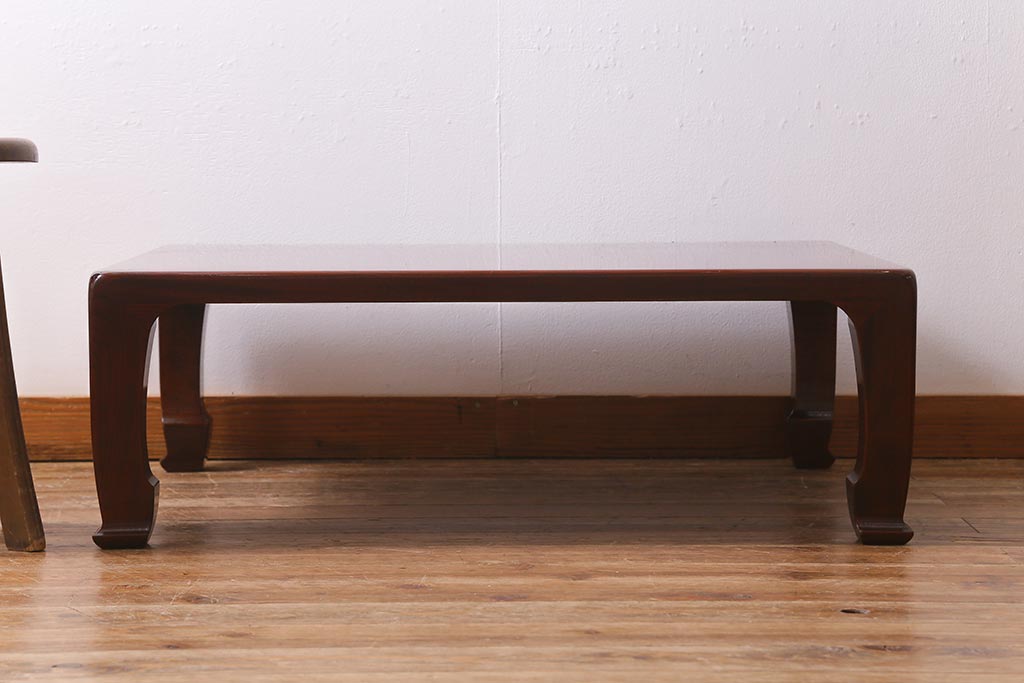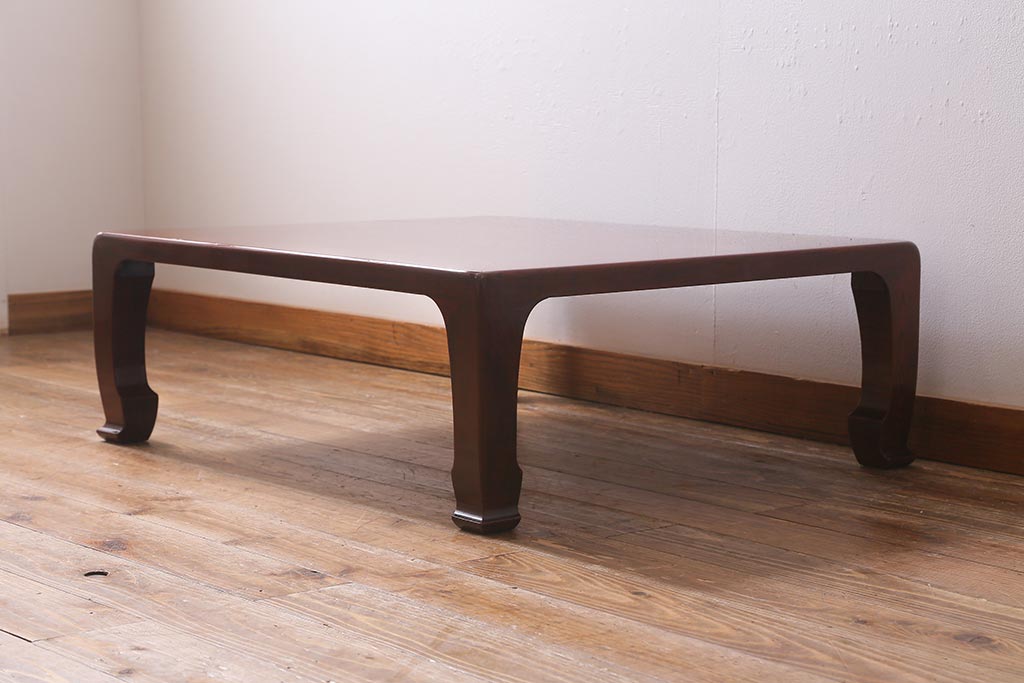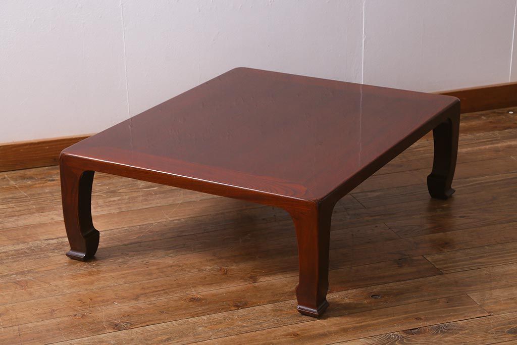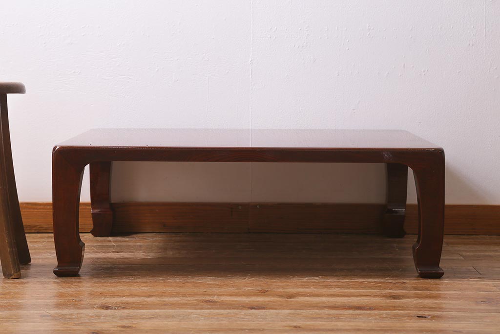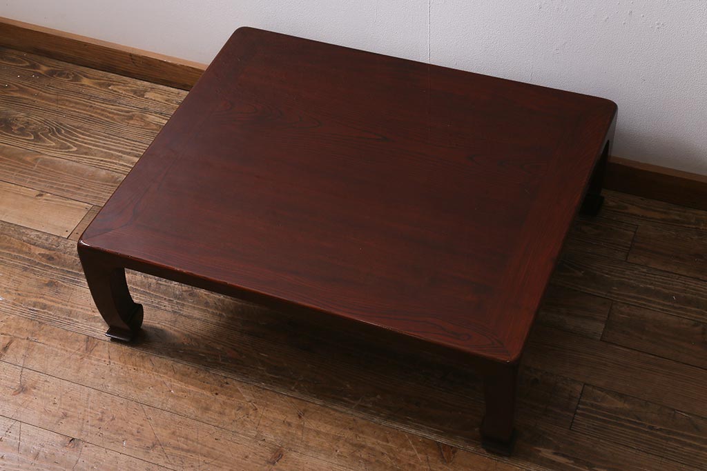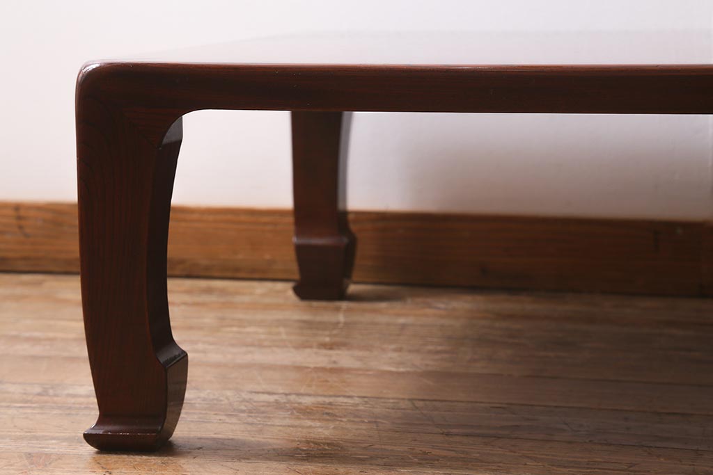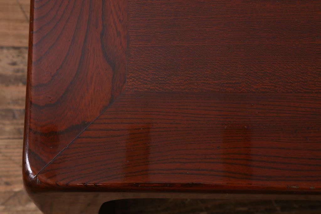 テーブル> 座卓 > 中古 工芸家具(指物家具) 総ケヤキ材 漆塗り 溜塗と杢目が美しい高級感溢れる座卓(ローテーブル)(R-039704)