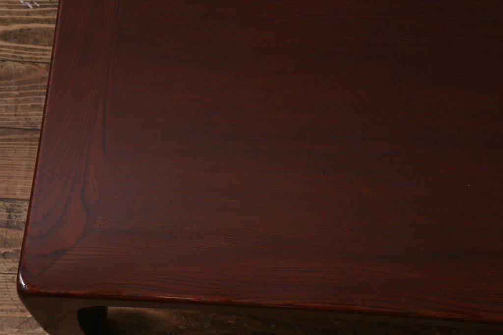 中古 工芸家具(指物家具) 総ケヤキ材 漆塗り 溜塗と杢目が美しい高級感溢れる座卓(ローテーブル)(R-039704)