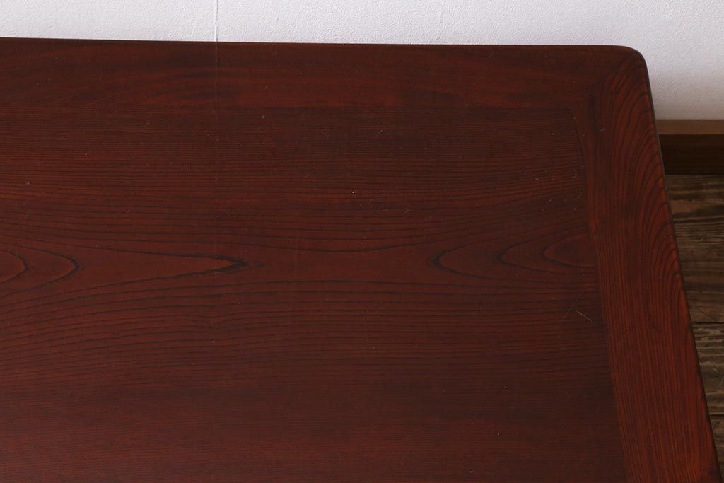 中古 工芸家具(指物家具) 総ケヤキ材 漆塗り 溜塗と杢目が美しい高級感溢れる座卓(ローテーブル)(R-039704)です。