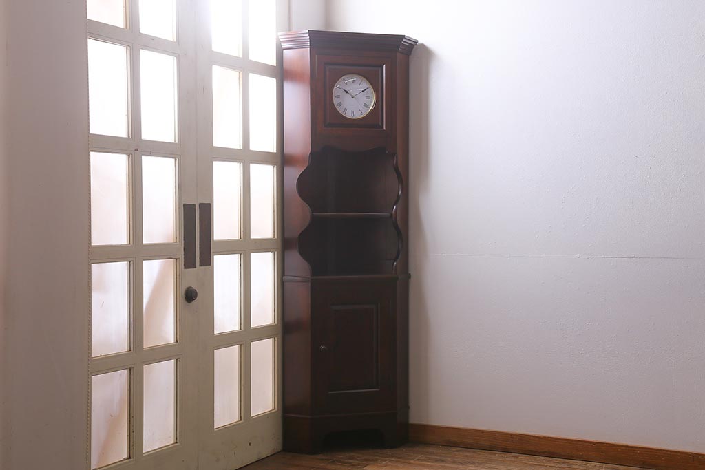 時計> ホールクロック > 中古 松本民芸家具 シックなD型隅棚(コーナーキャビネット、ホールクロック、時計)(定価約49万円)(R-039669)