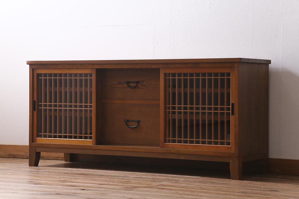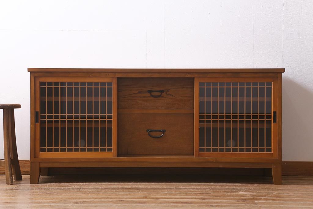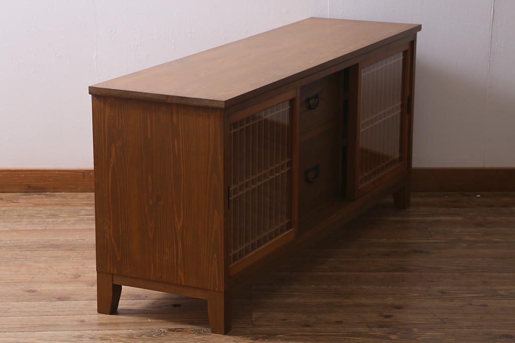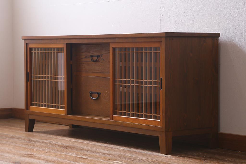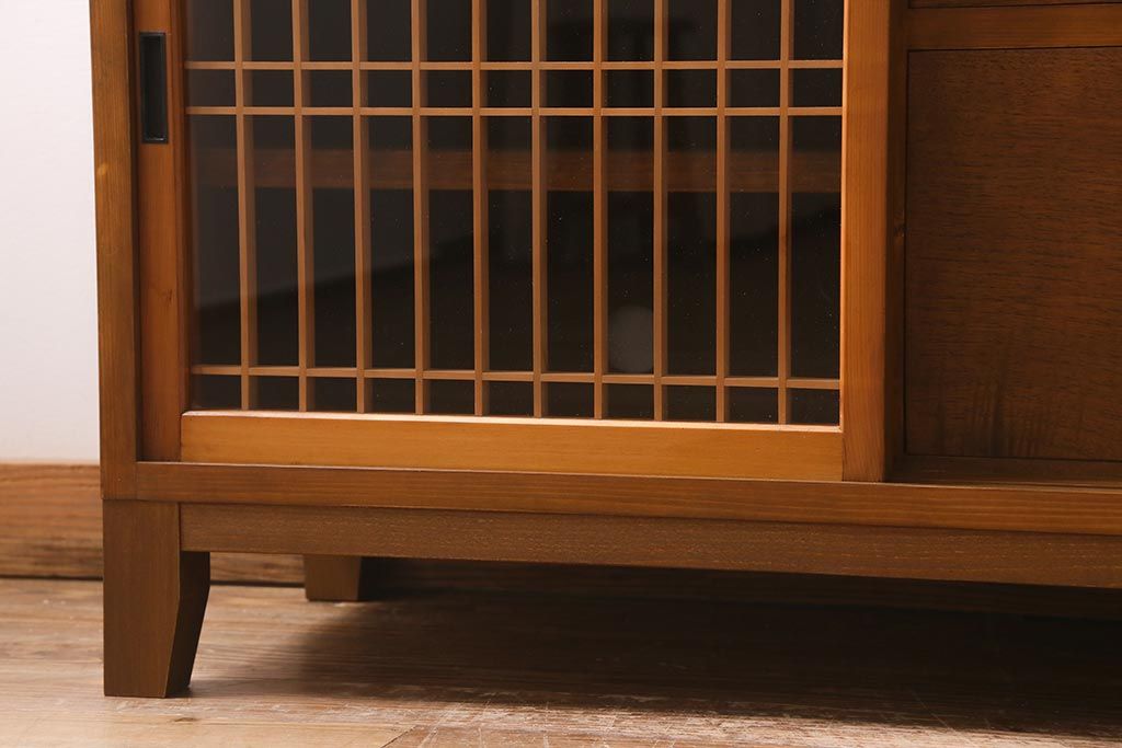 ラフジュ工房オリジナル 古建具リメイク 脚付き 組子 和テイストのお部屋におすすめなテレビ台(ローボード、収納棚、テレビボード、書院戸)(R-039662)