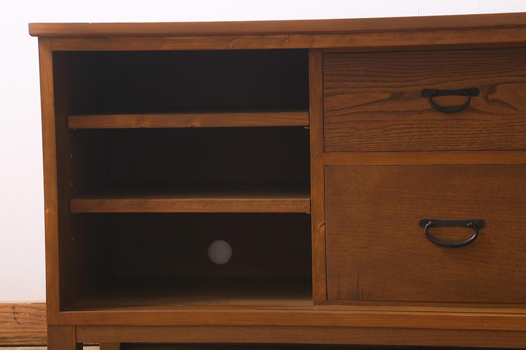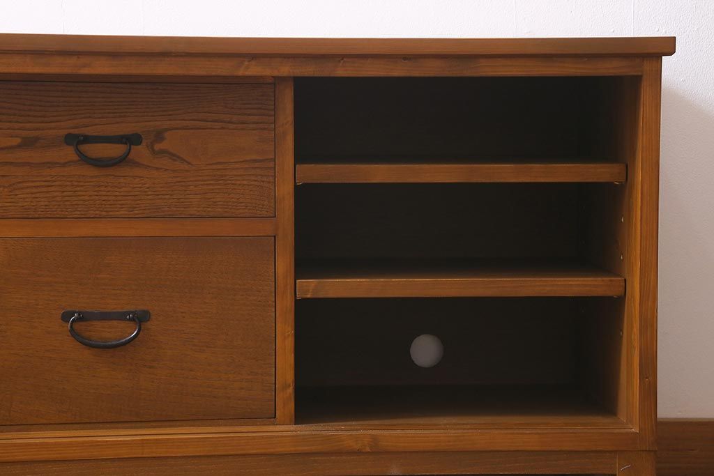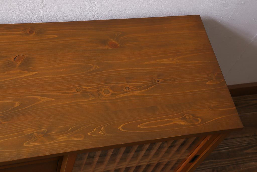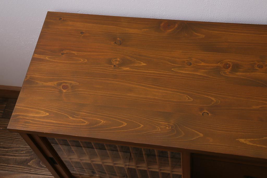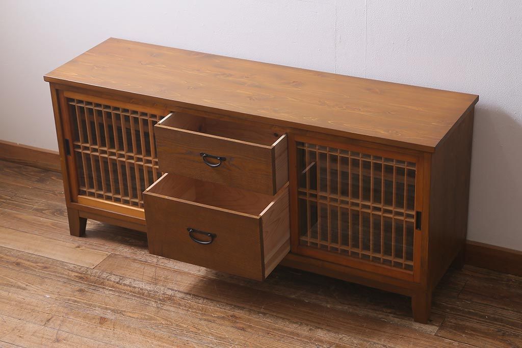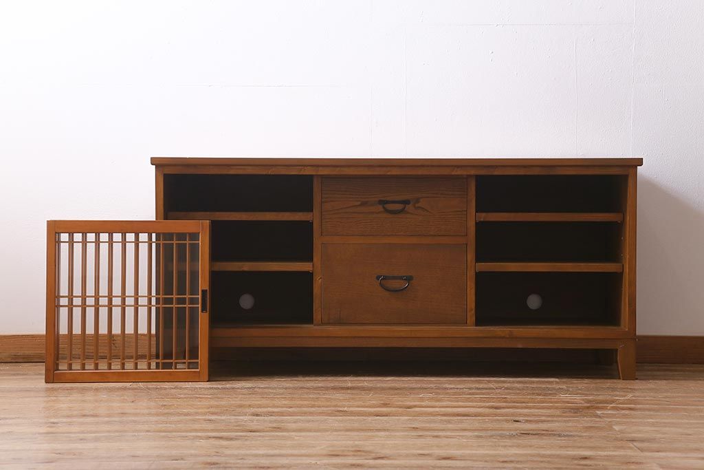ラフジュ工房オリジナル 古建具リメイク 脚付き 組子 和テイストのお部屋におすすめなテレビ台(ローボード、収納棚、テレビボード、書院戸)(R-039662)