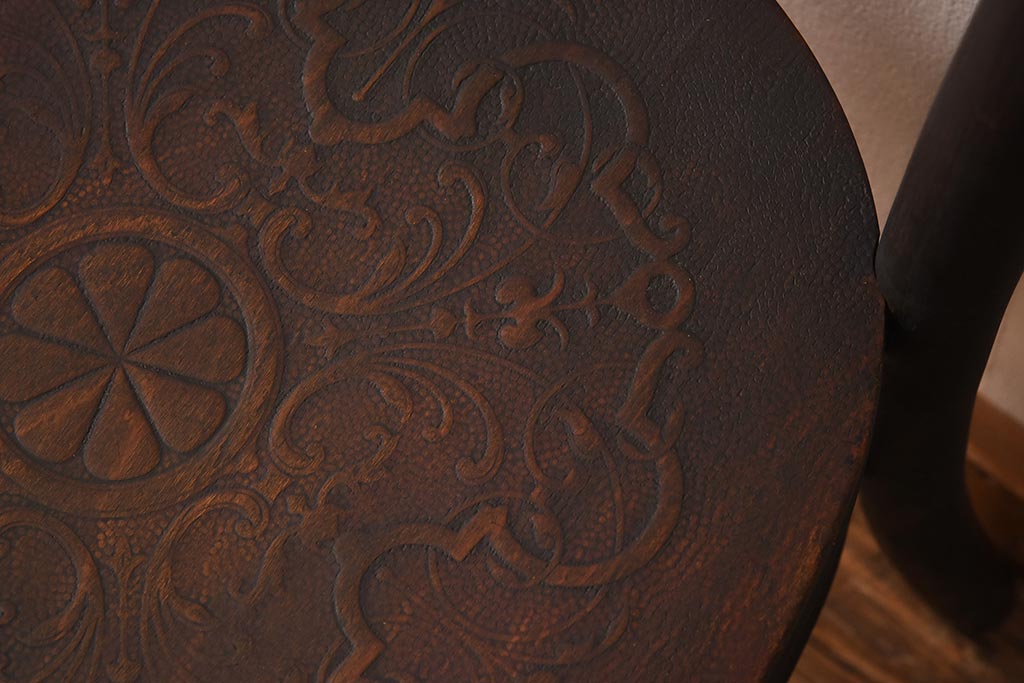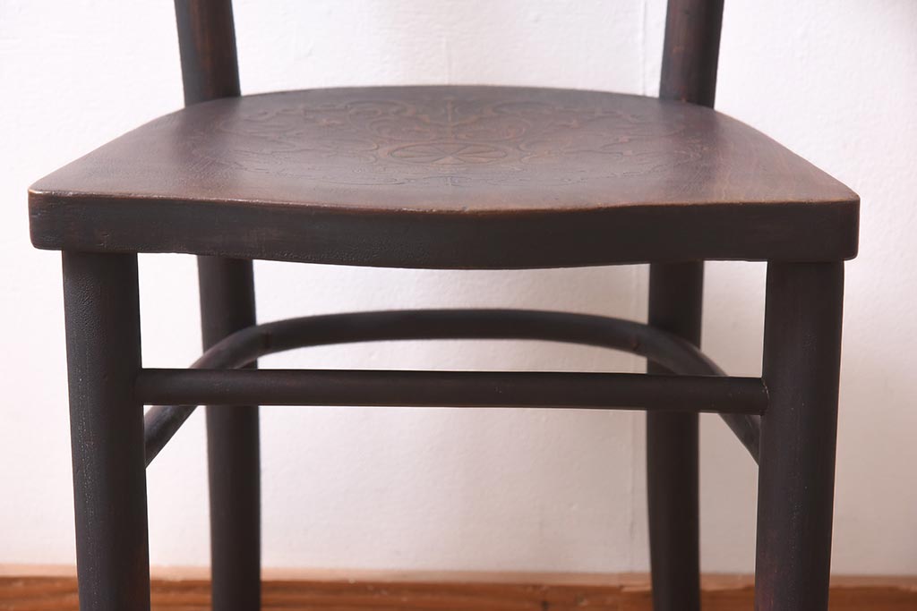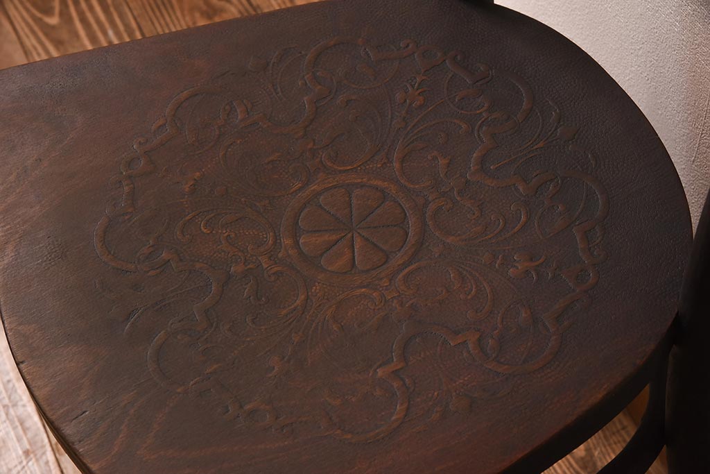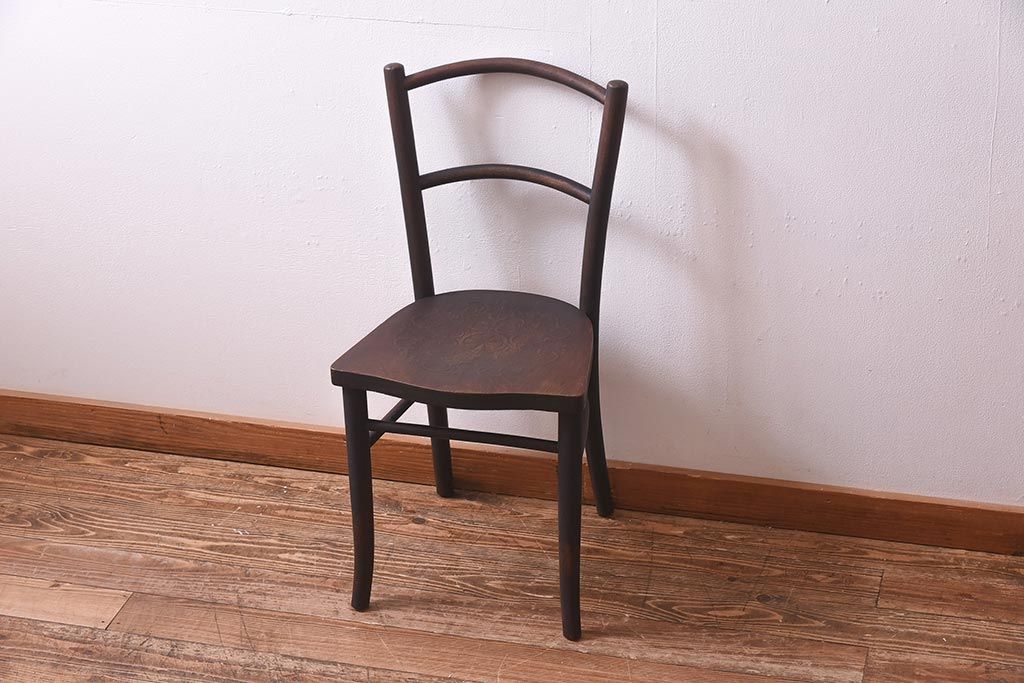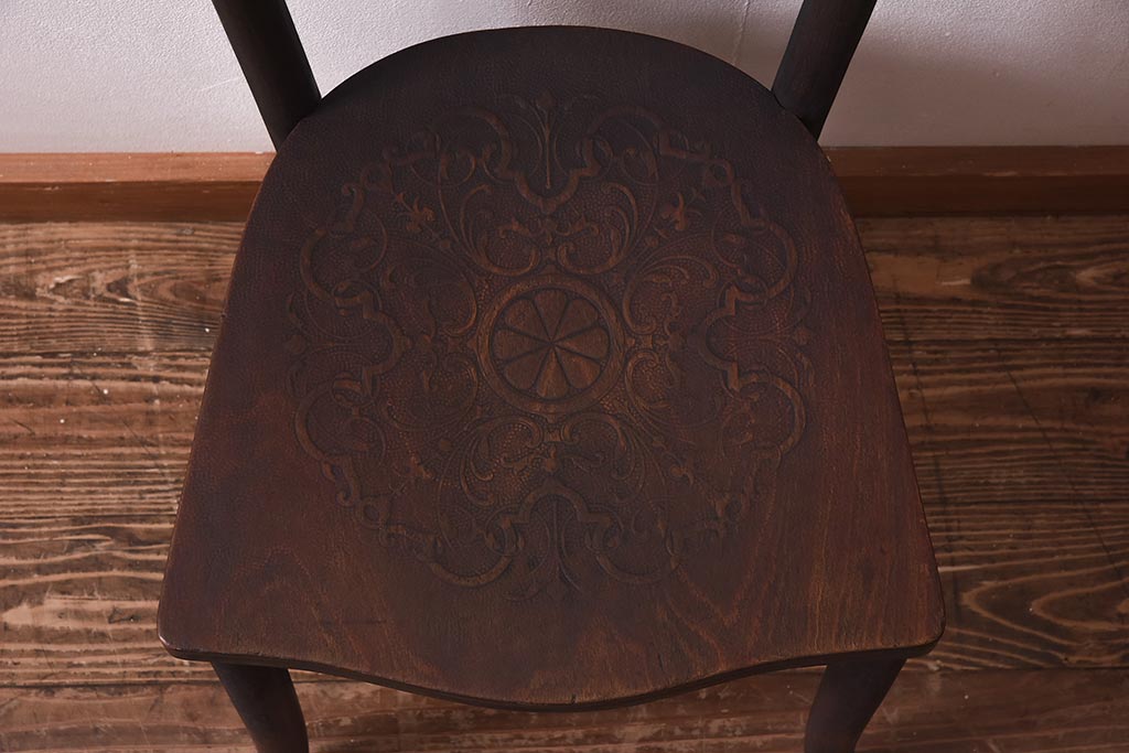 アンティーク家具 イギリスアンティーク 座面の彫がおしゃれなベントウッドチェア(ダイニングチェア、イス、板座チェア)(R-039635)