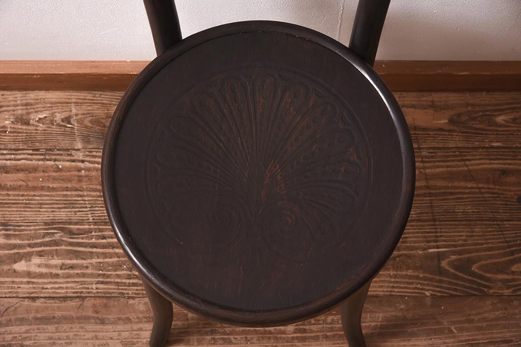 アンティーク家具 イギリスアンティーク 座面の彫がおしゃれなベントウッドチェア(ダイニングチェア、イス、板座チェア)(R-039636)