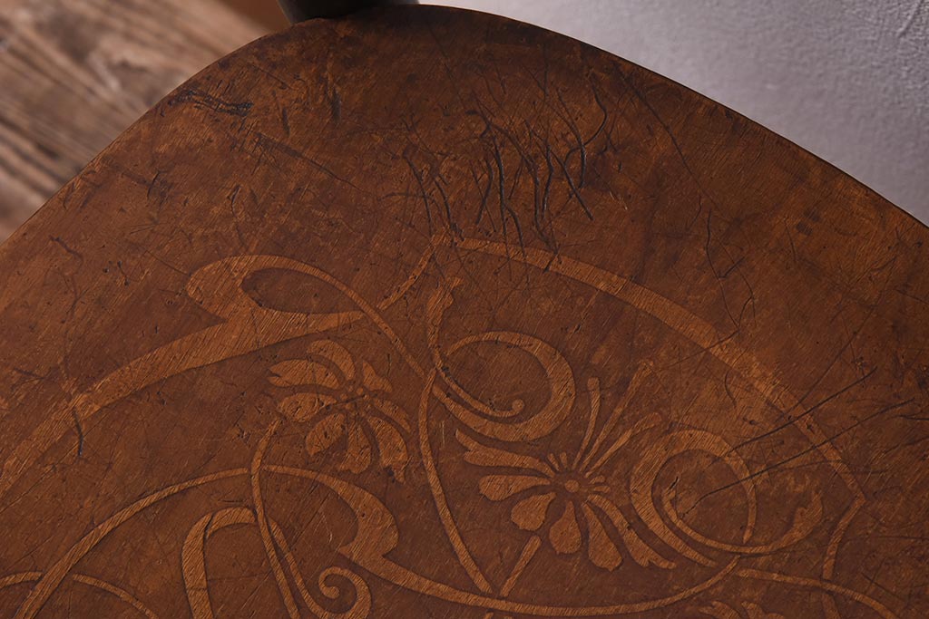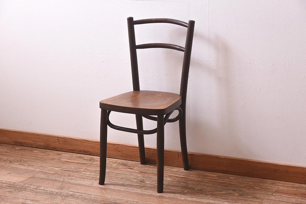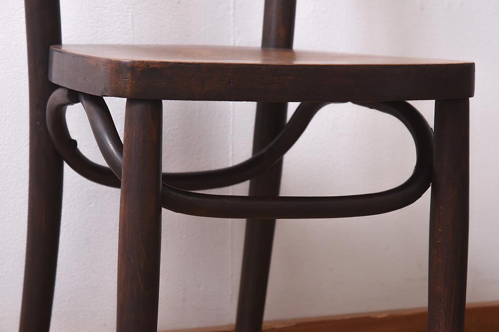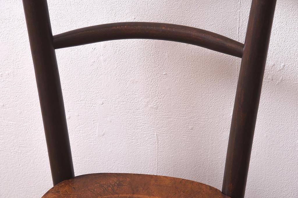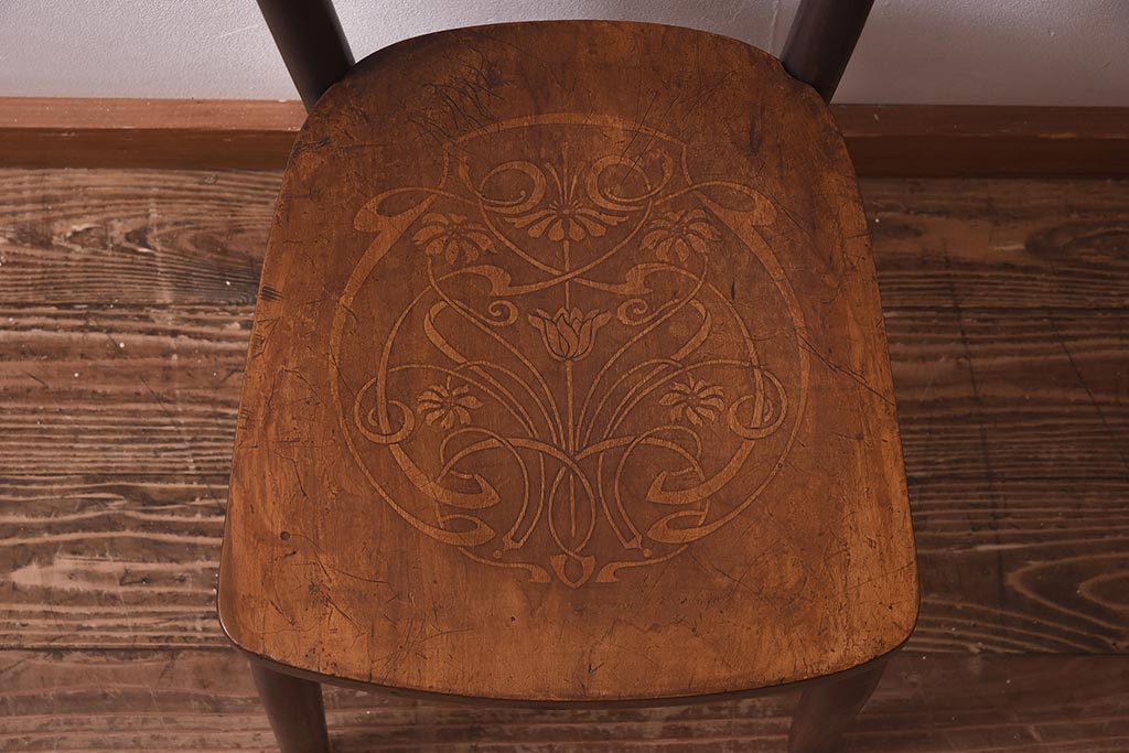 椅子・ベンチ> ダイニングチェア > アンティーク家具 イギリスアンティーク 座面の装飾が目をひく素朴な佇まいのベントウッドチェア(ダイニングチェア、イス、板座チェア)(R-039637)