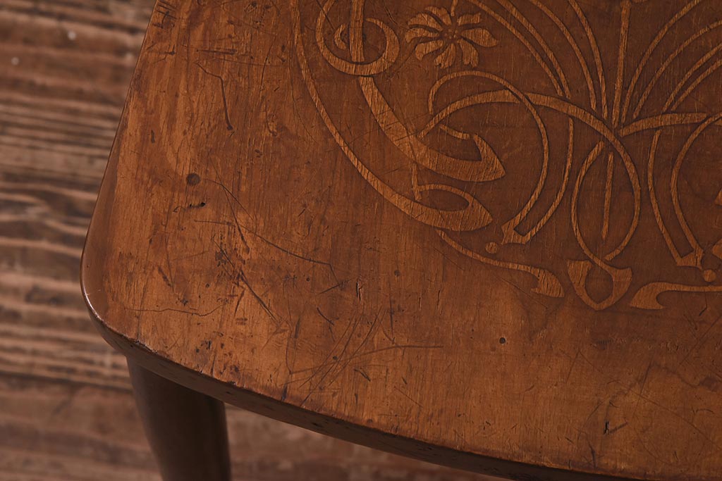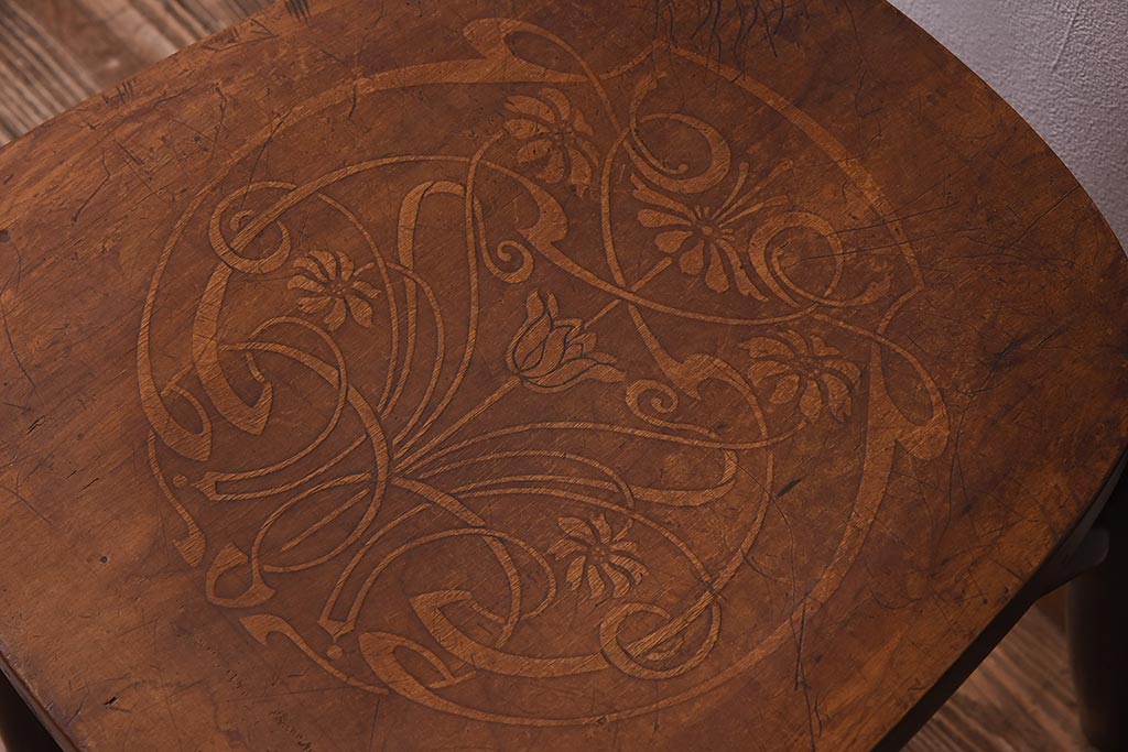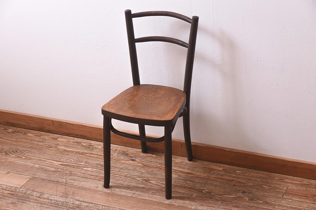アンティーク家具 イギリスアンティーク 座面の装飾が目をひく素朴な佇まいのベントウッドチェア(ダイニングチェア、イス、板座チェア)(R-039637)