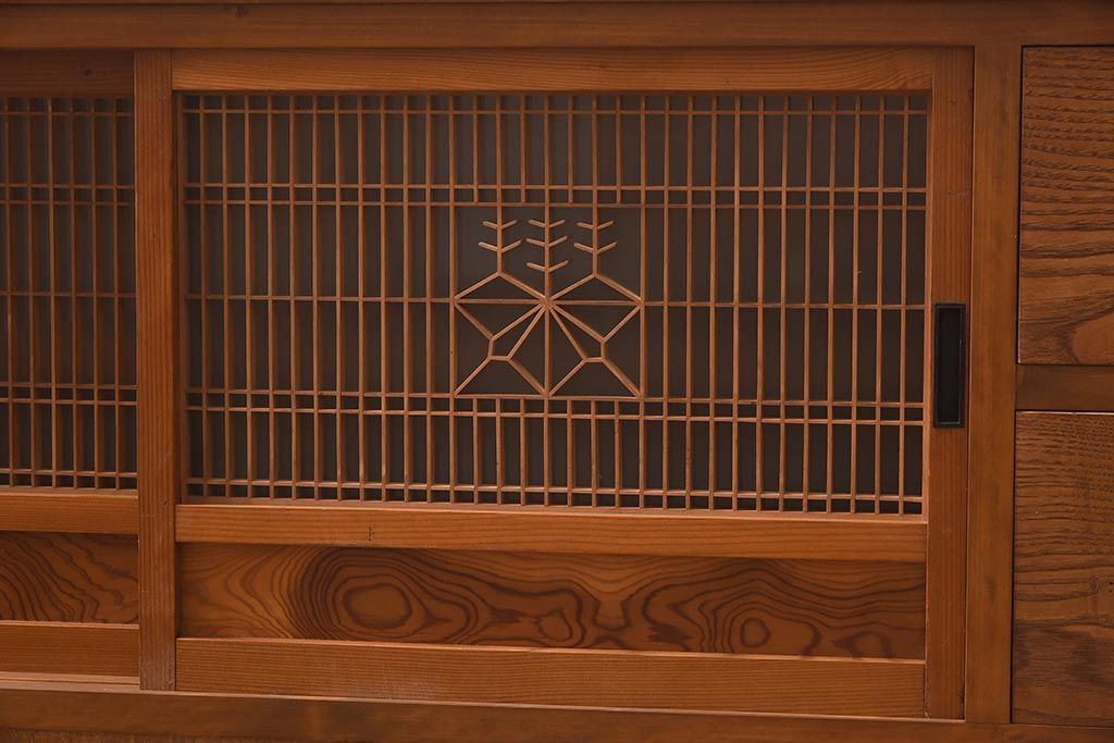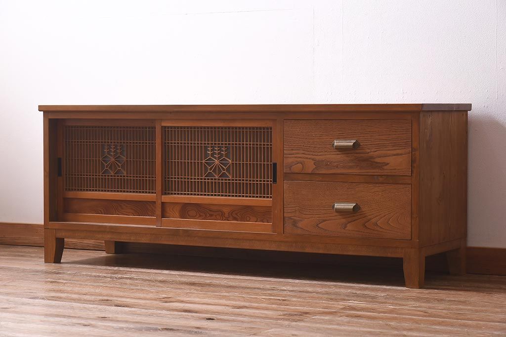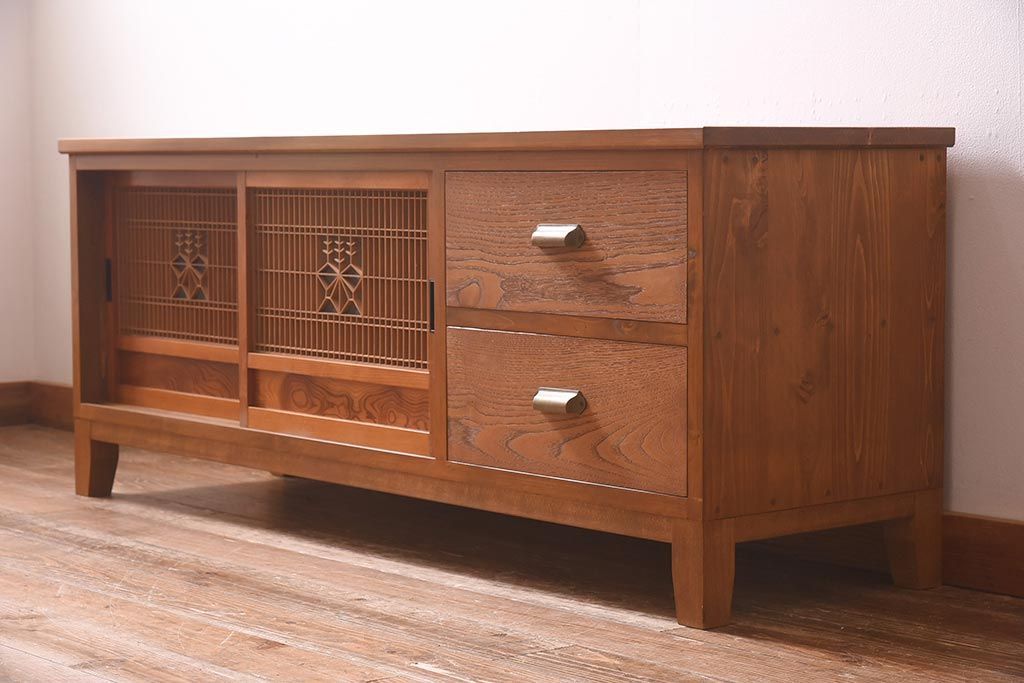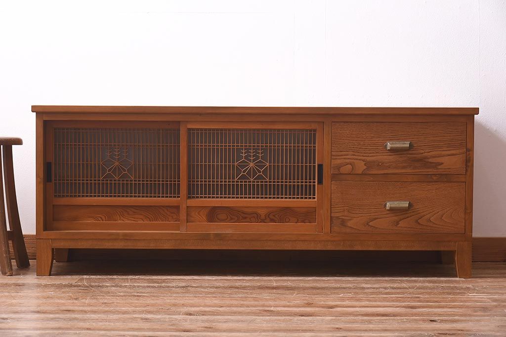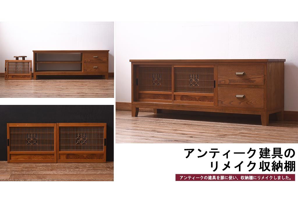 ラフジュ工房オリジナル 古建具リメイク 五七の桐紋 組子 上品な和の雰囲気が魅力的なテレビ台(ローボード、収納棚、テレビボード、書院戸)(R-039640)