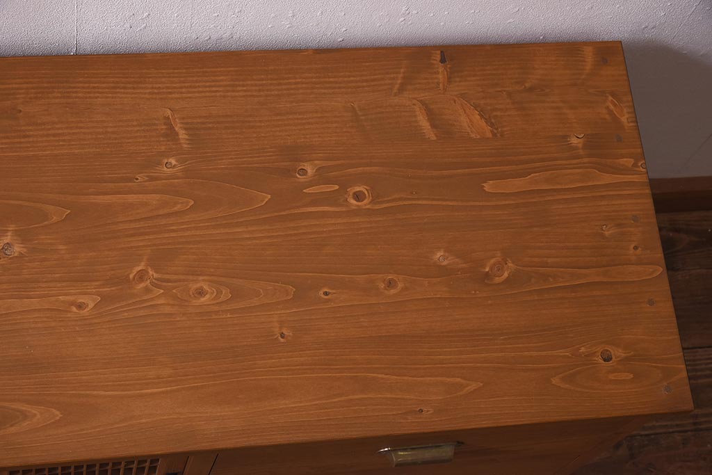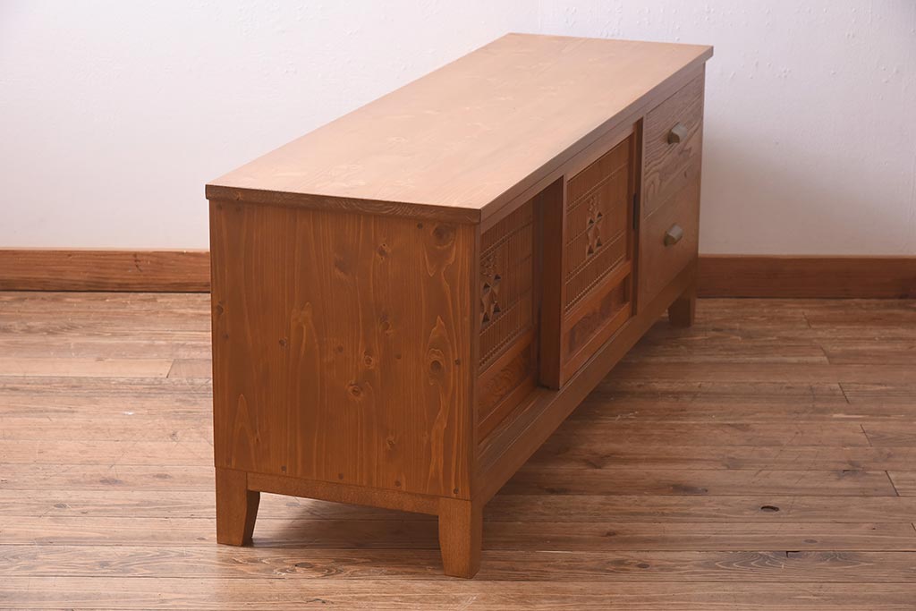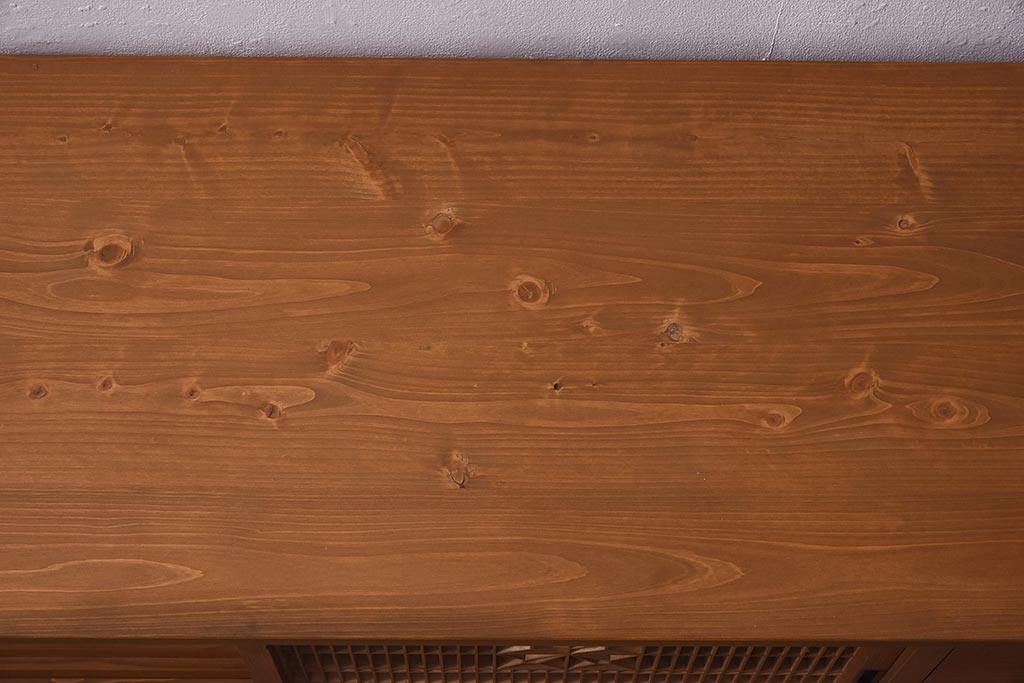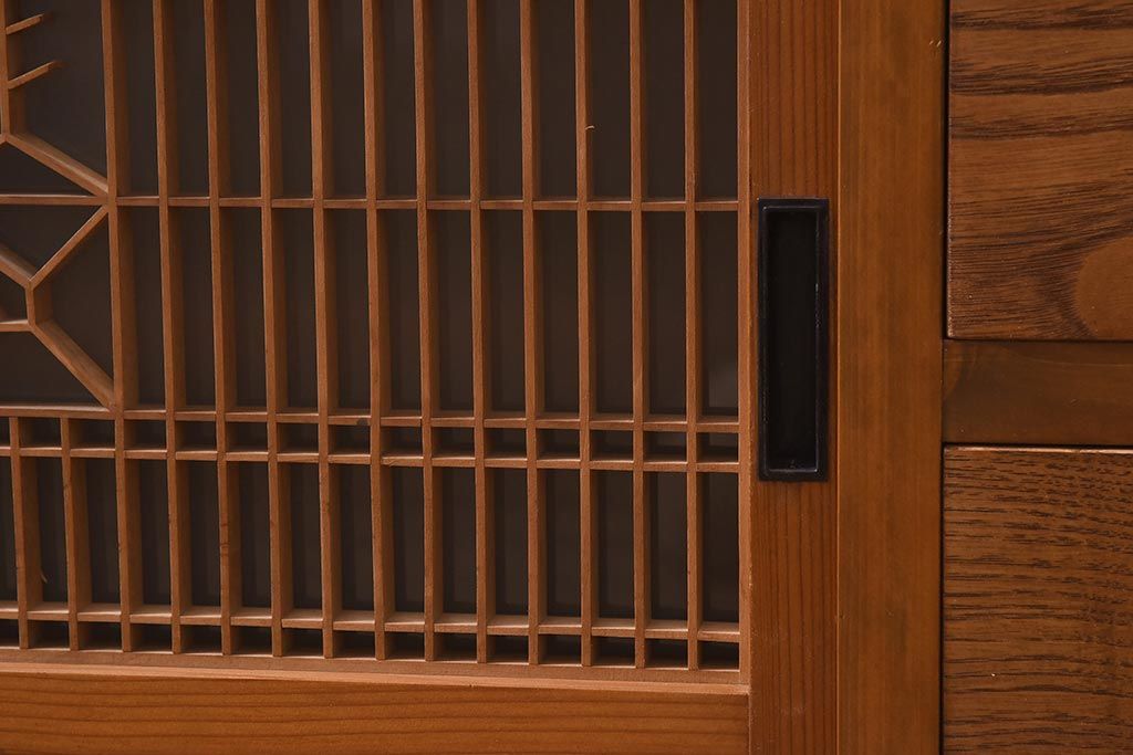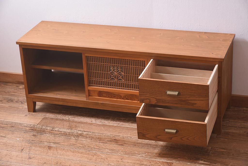 ラフジュ工房オリジナル 古建具リメイク 五七の桐紋 組子 上品な和の雰囲気が魅力的なテレビ台(ローボード、収納棚、テレビボード、書院戸)(R-039640)