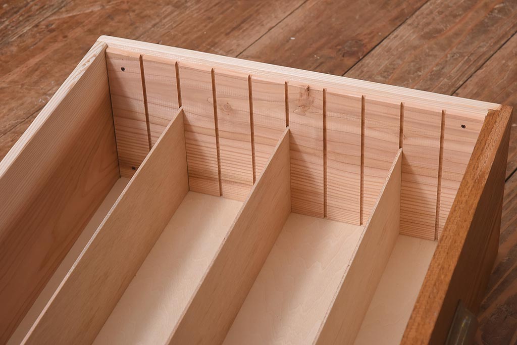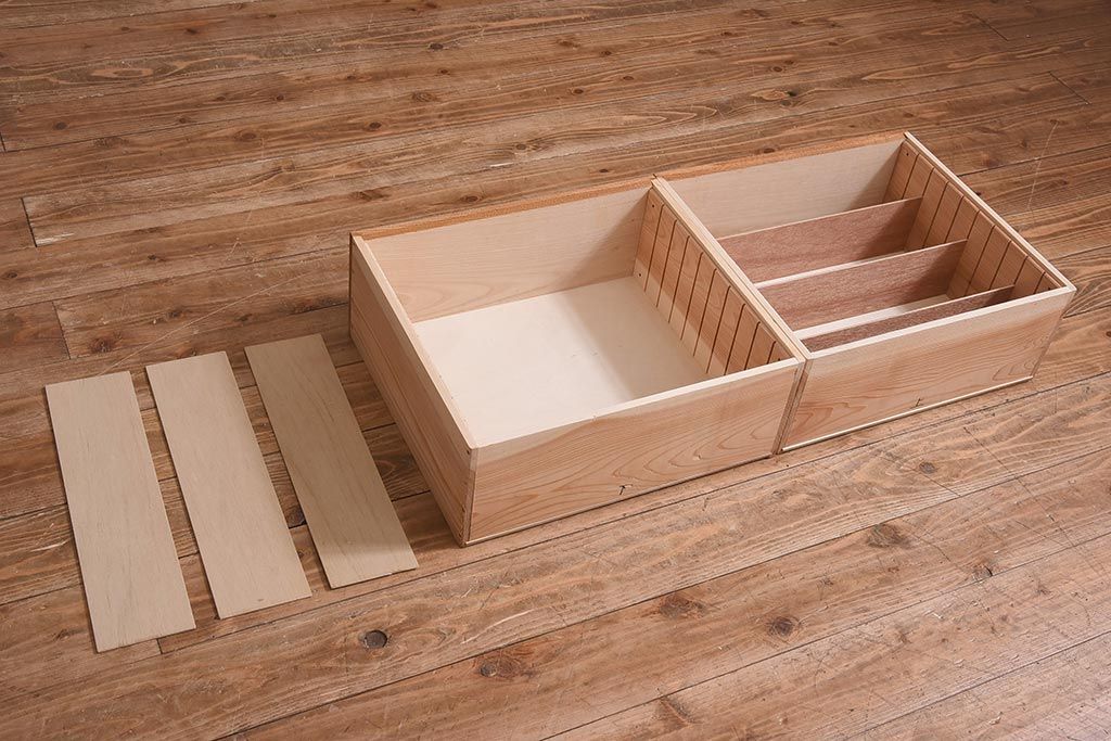 ■引き出しの内寸 各 深さ150mm/幅390mm/奥行355mm(仕切り各30mmピッチで調節可能)
