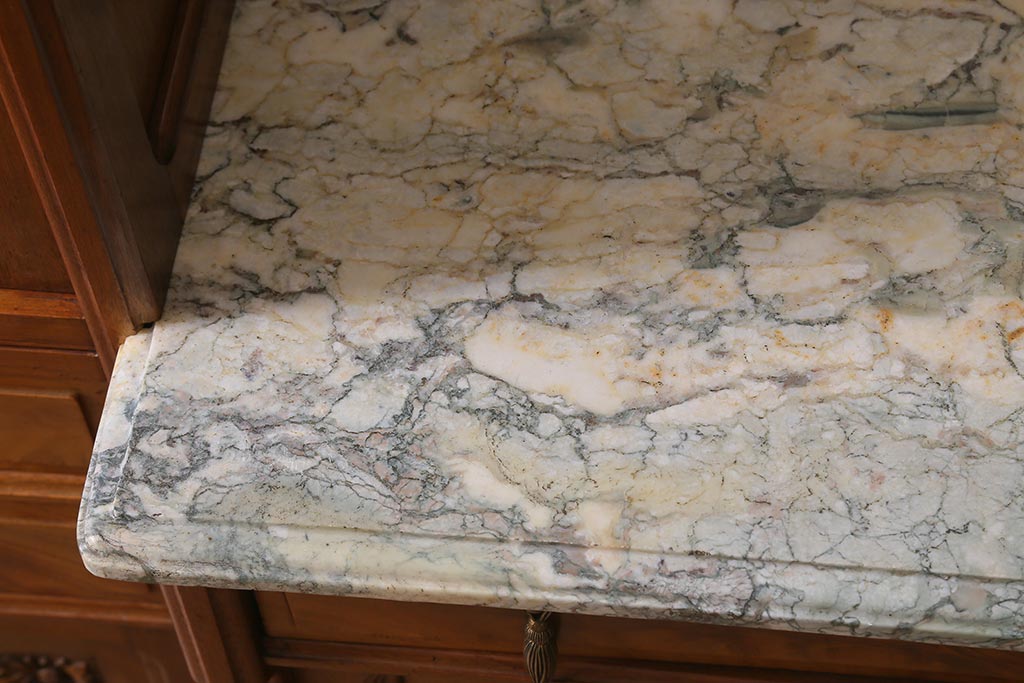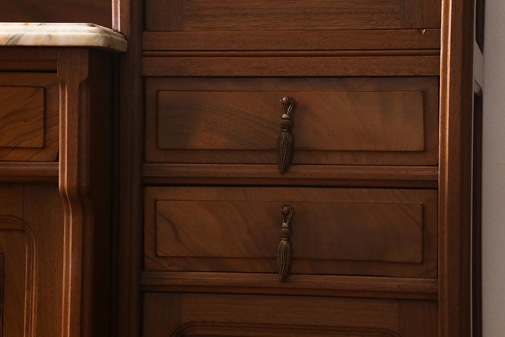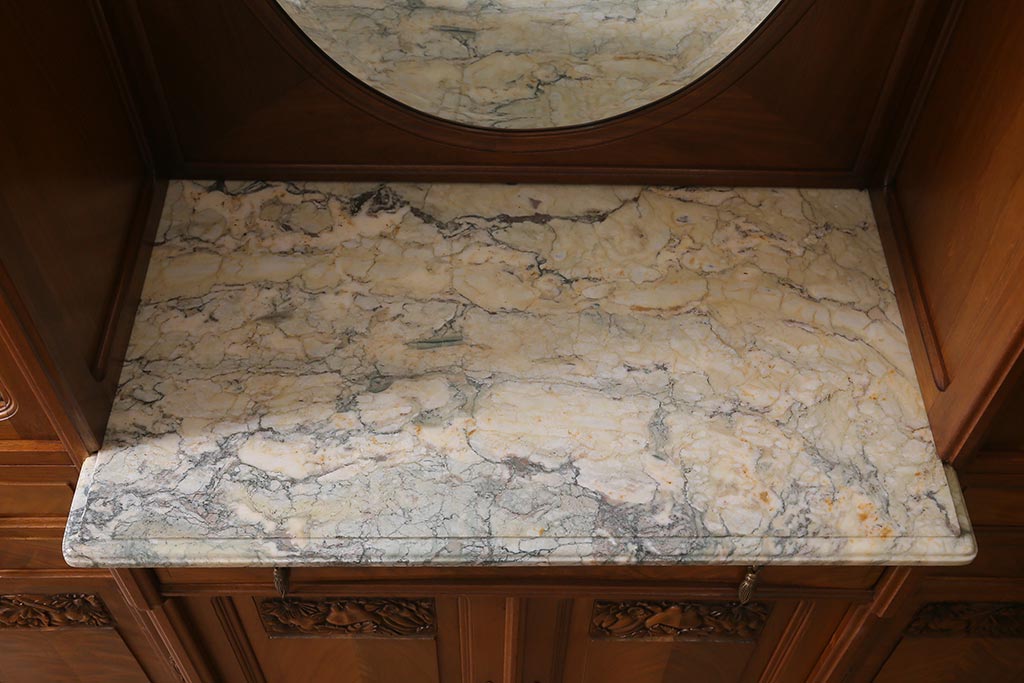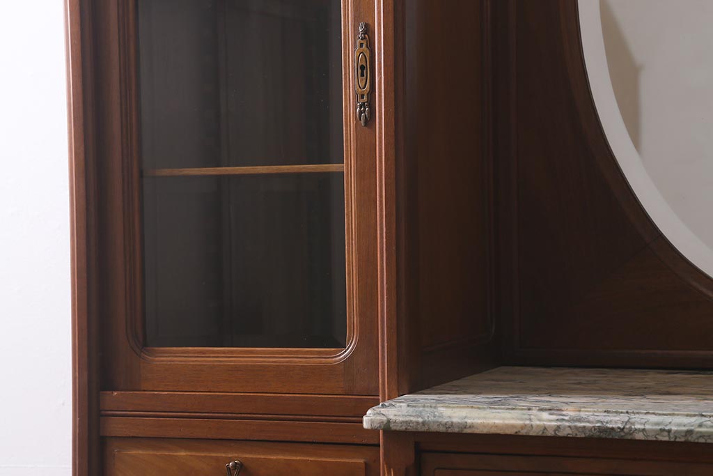 大理石の作業台が高級感漂うウォールナット材製のフランスアンティークキャビネット