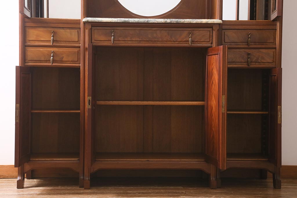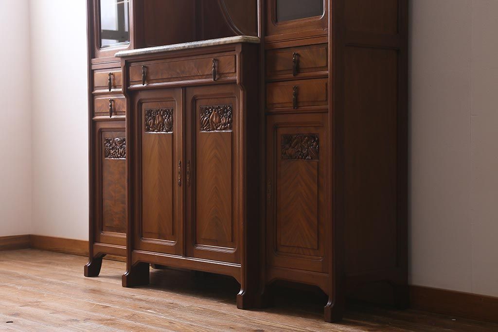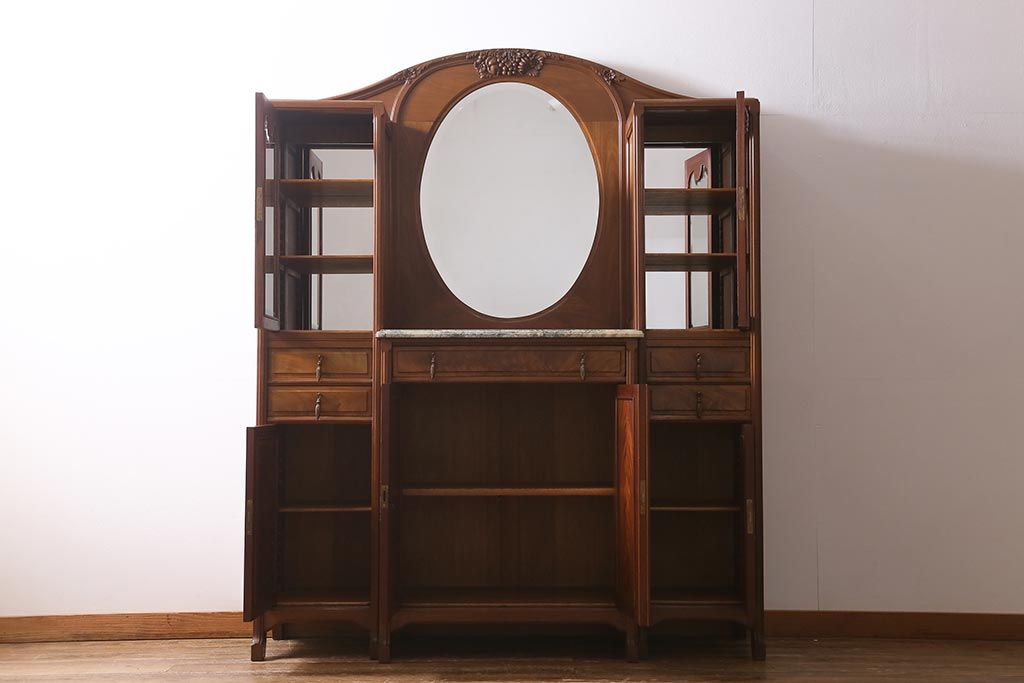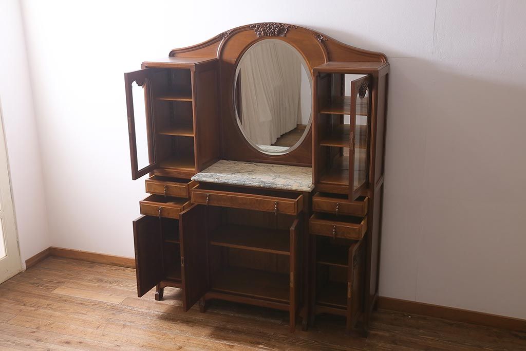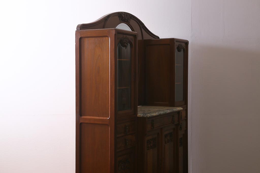 大理石の作業台が高級感漂うウォールナット材製のフランスアンティークキャビネット