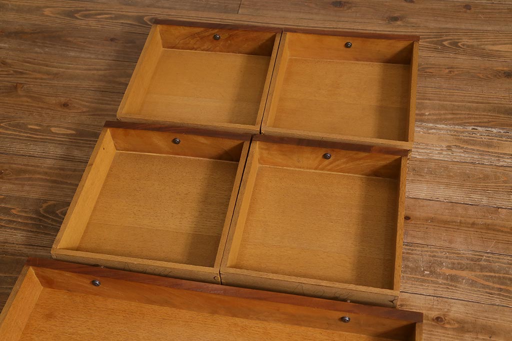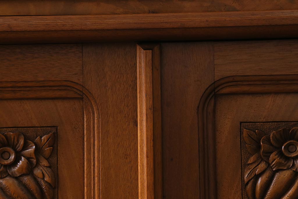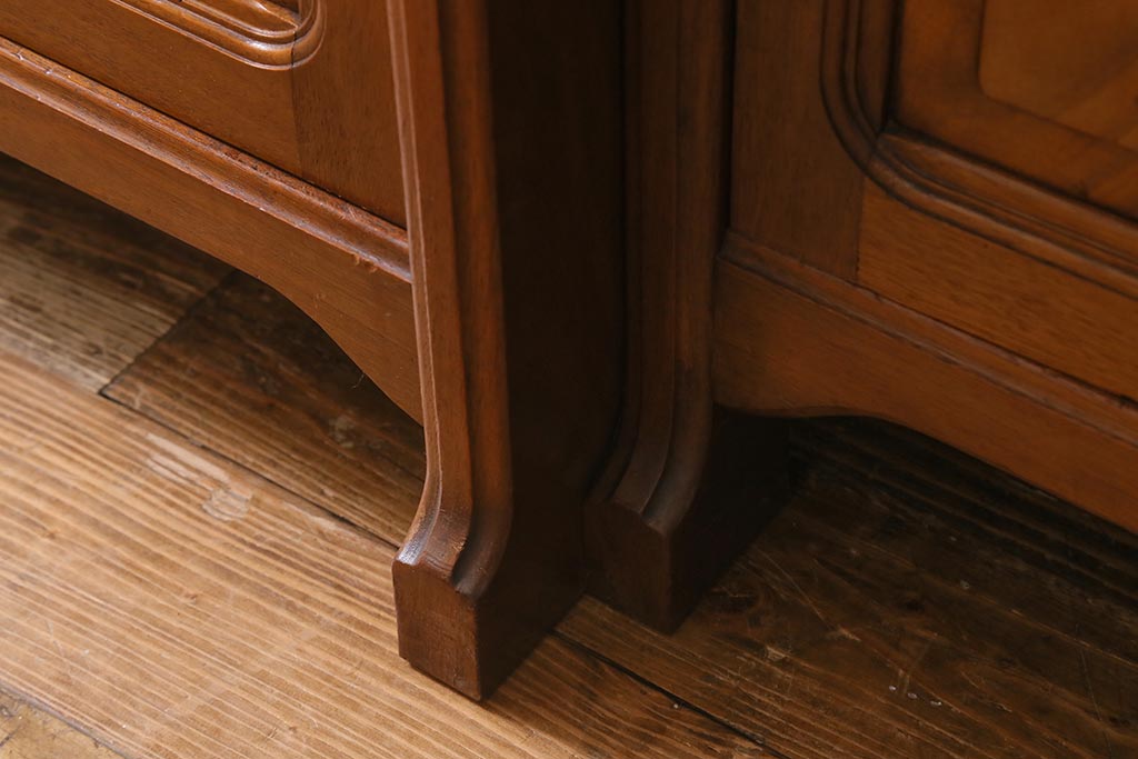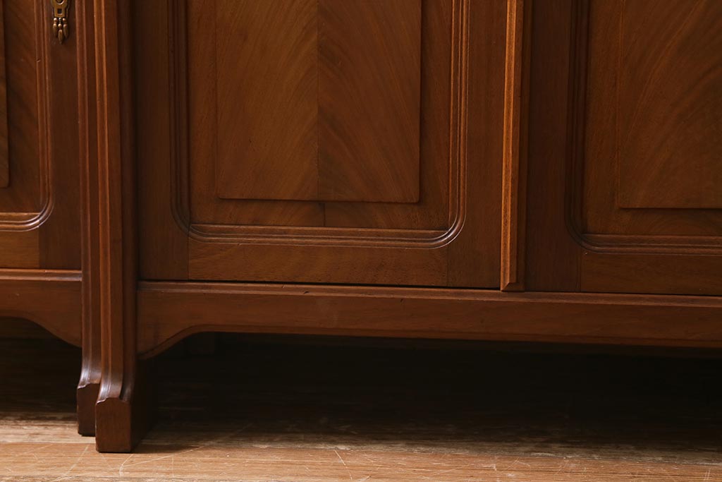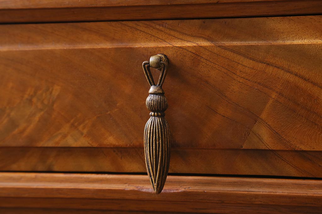 - ウォールナット材は、使い込むほどにつややかな光沢が出て、味わいを増していく性質があります。年月を重ねた美しい色味や光沢は、アンティークのお品ならではの特徴です。このように、経年変化を楽しめる材質なので、長い時間を共に過ごせばより魅力を増してくれることでしょう。