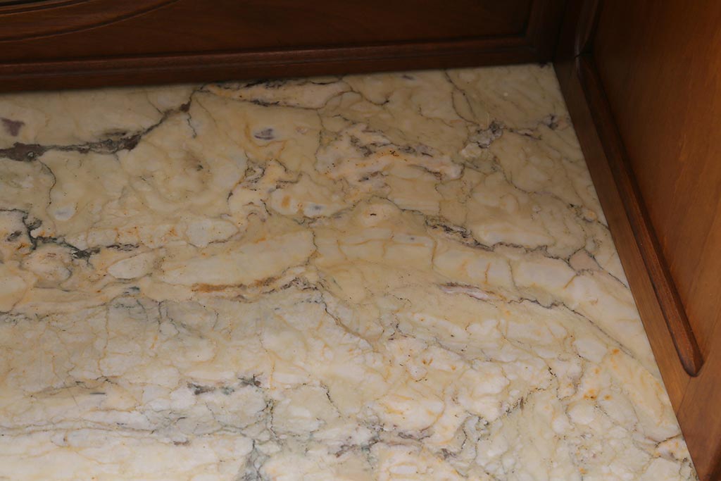 作業台に使われている大理石が、高級感を演出しています。落ち着いた風合いのウォールナット材とうまく調和しているので、上品で優雅な雰囲気を醸し出していますね。
