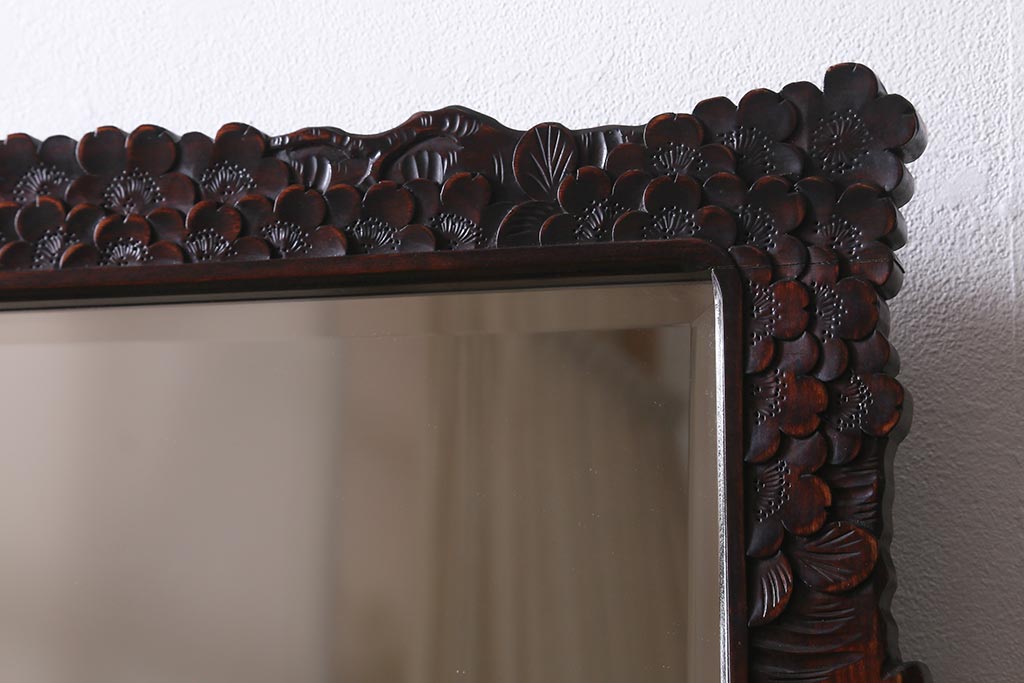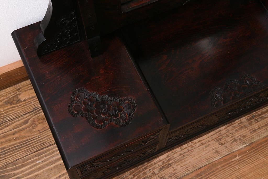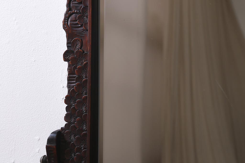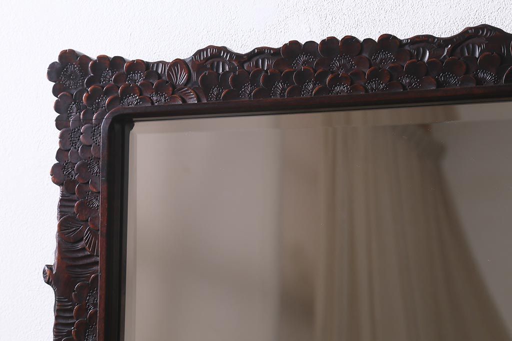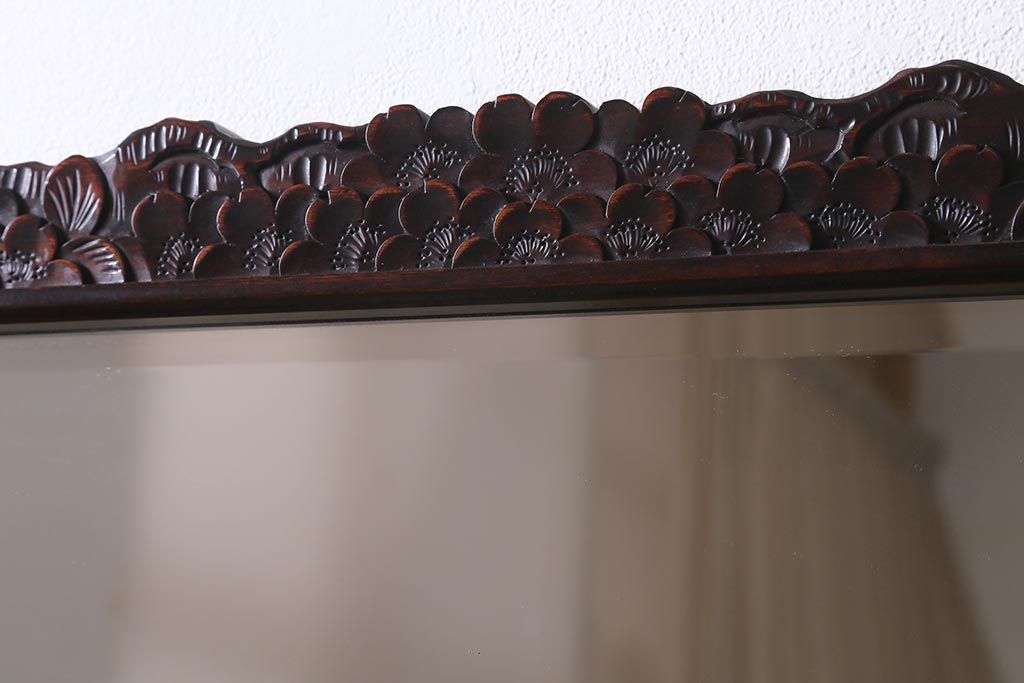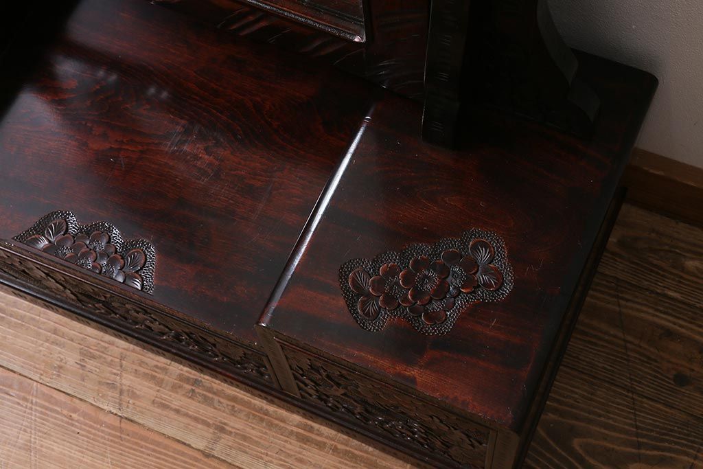 ドレッサー・鏡台> 鏡台 > ヴィンテージ家具 伝統工芸 軽井沢彫り 桜の意匠が目を惹く上品な佇まいの鏡台(ドレッサー、ビンテージ)(R-039712)