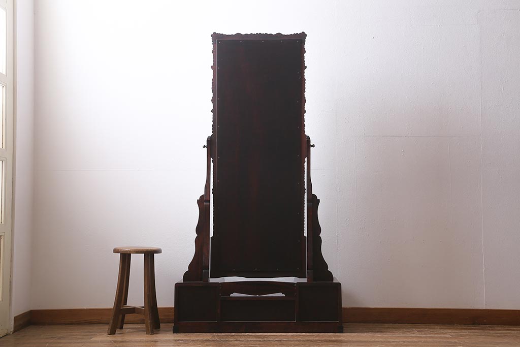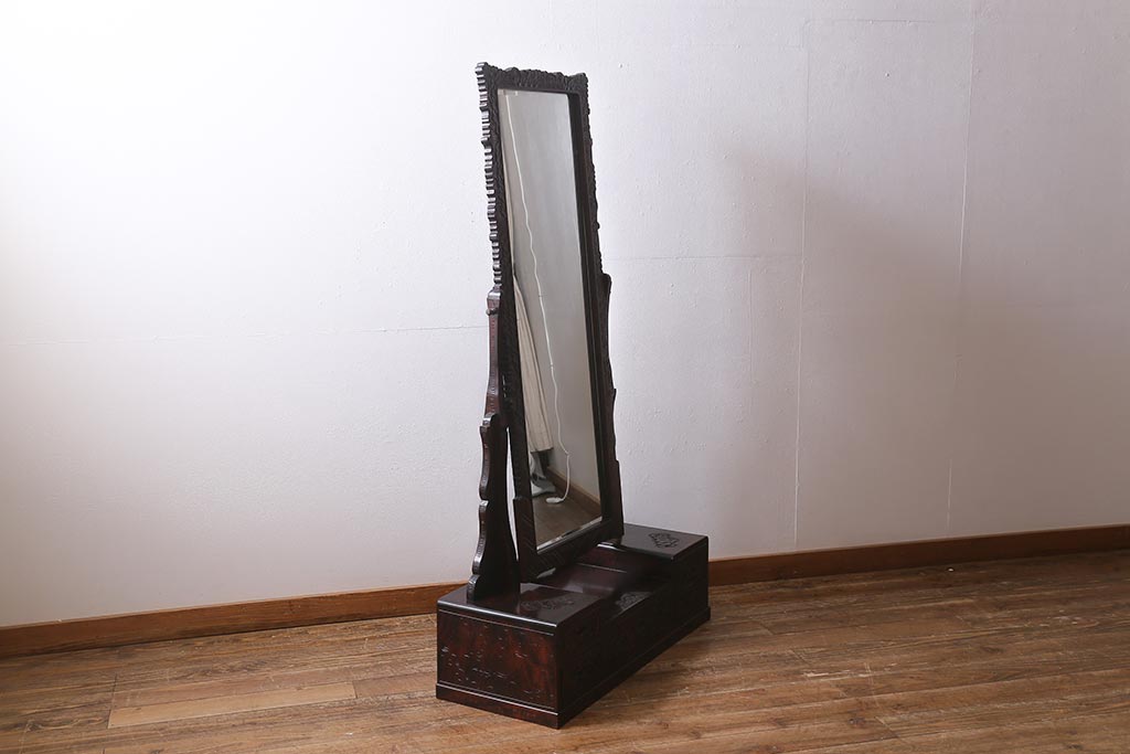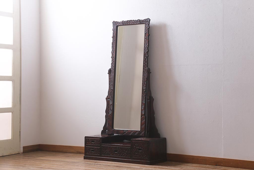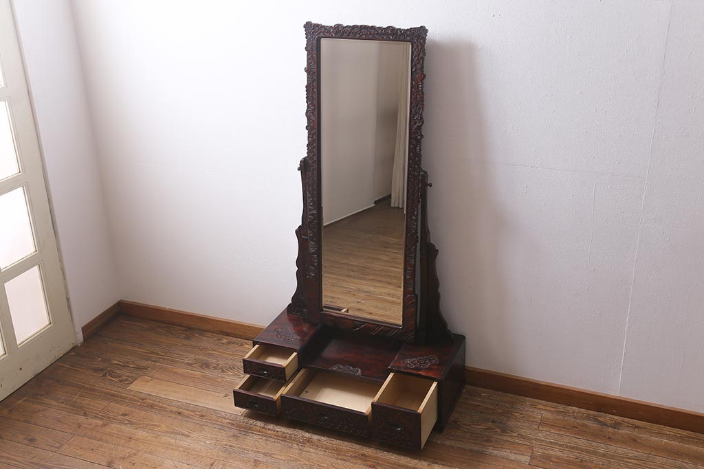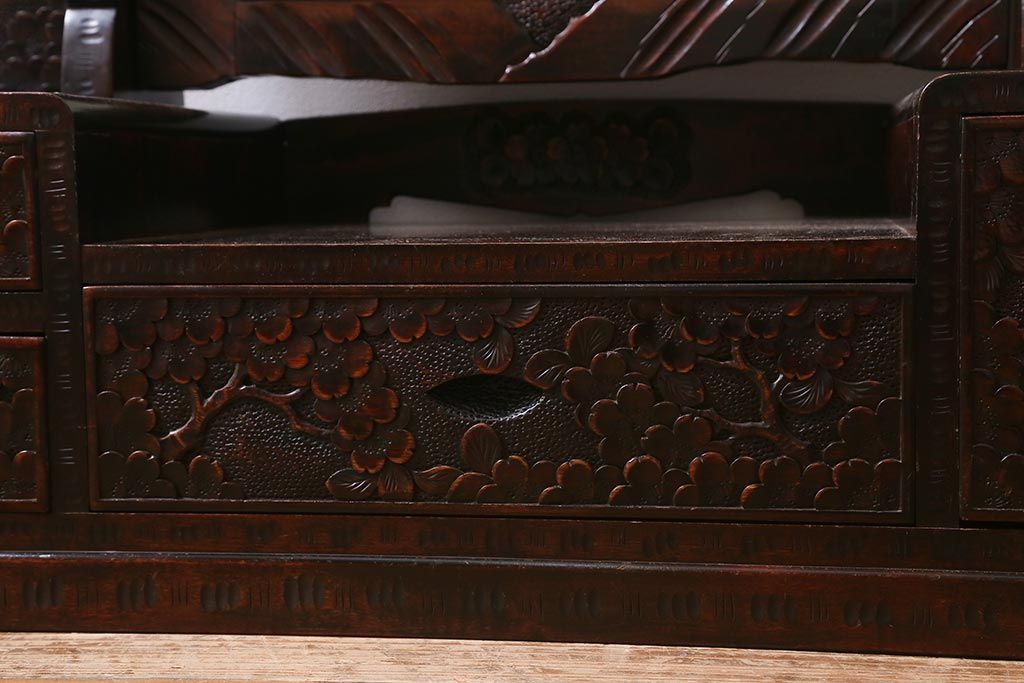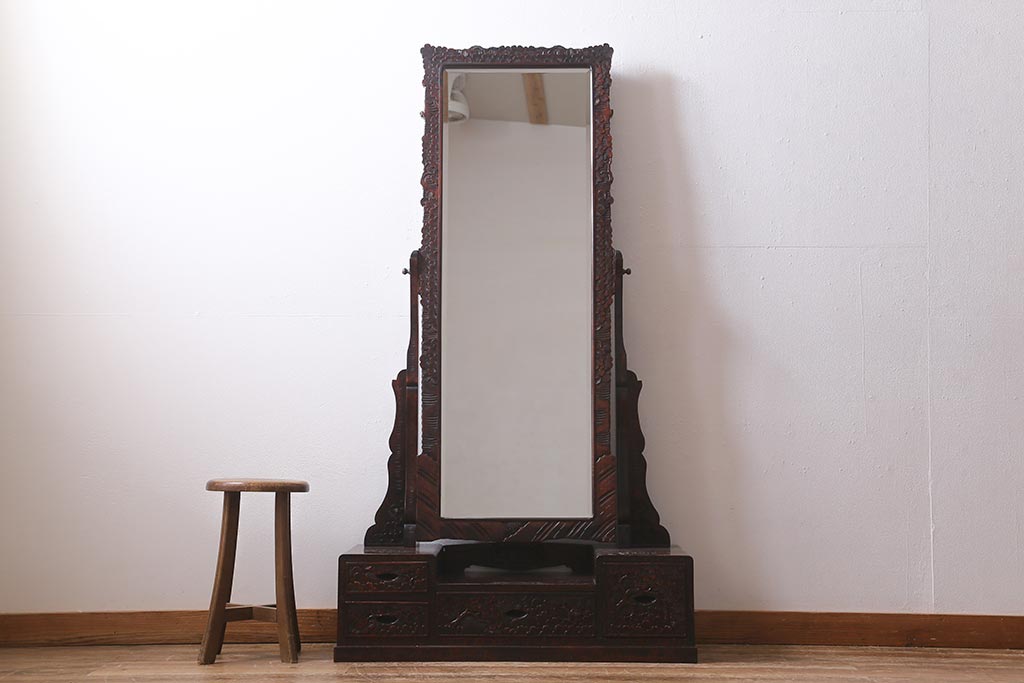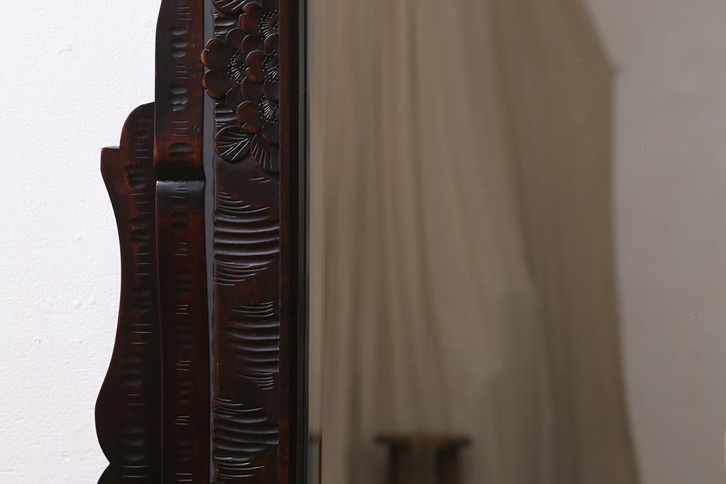 ドレッサー・鏡台> 鏡台 > ヴィンテージ家具 伝統工芸 軽井沢彫り 桜の意匠が目を惹く上品な佇まいの鏡台(ドレッサー、ビンテージ)(R-039712)