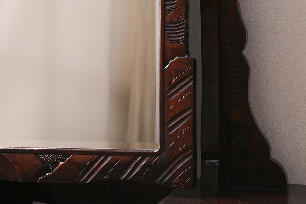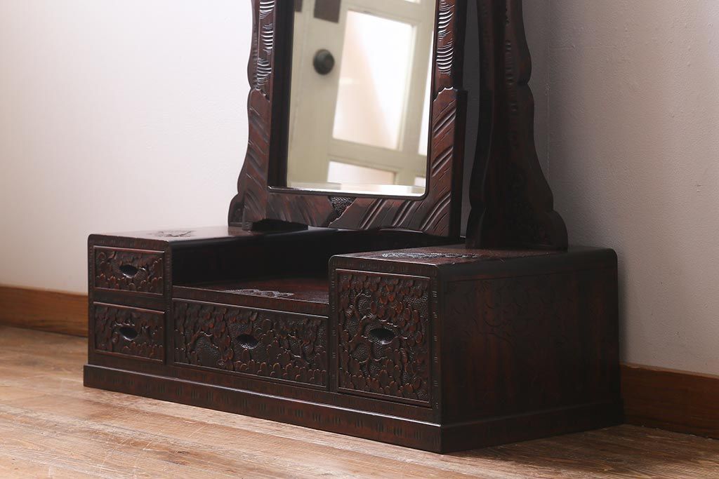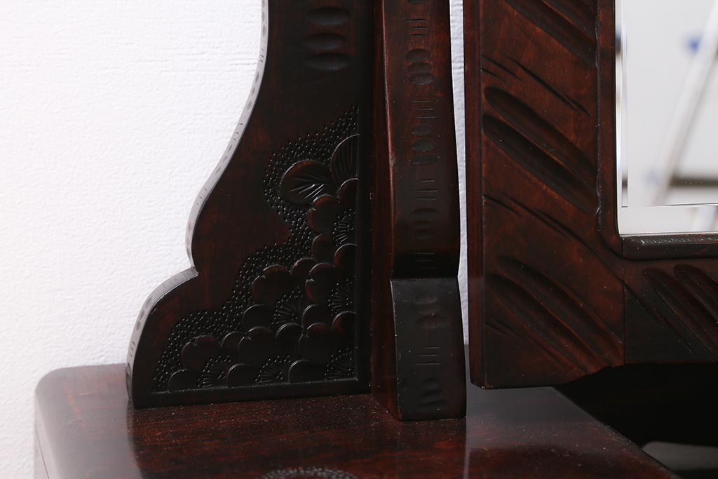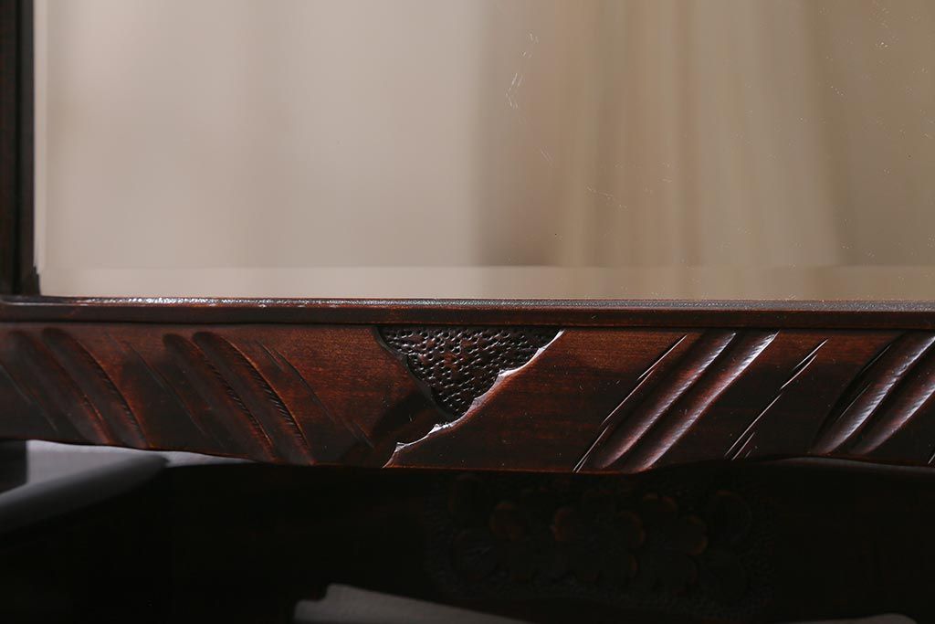ドレッサー・鏡台 > ヴィンテージ家具 伝統工芸 軽井沢彫り 桜の意匠が目を惹く上品な佇まいの鏡台(ドレッサー、ビンテージ)(R-039712)
