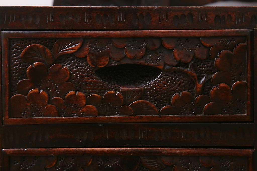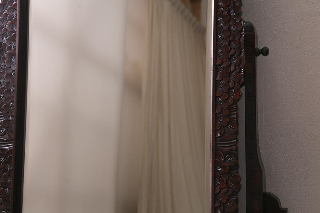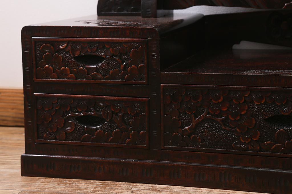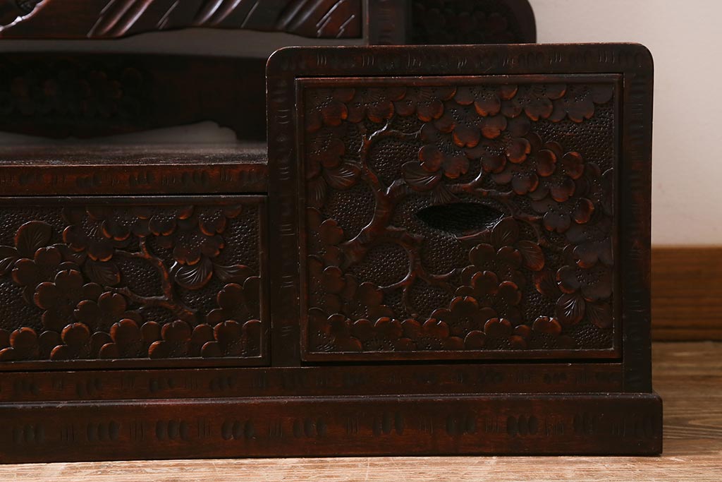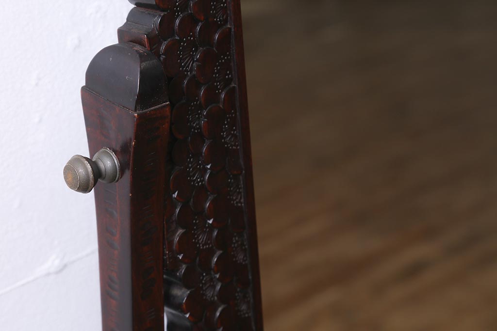 ドレッサー・鏡台 > ヴィンテージ家具 伝統工芸 軽井沢彫り 桜の意匠が目を惹く上品な佇まいの鏡台(ドレッサー、ビンテージ)(R-039712)