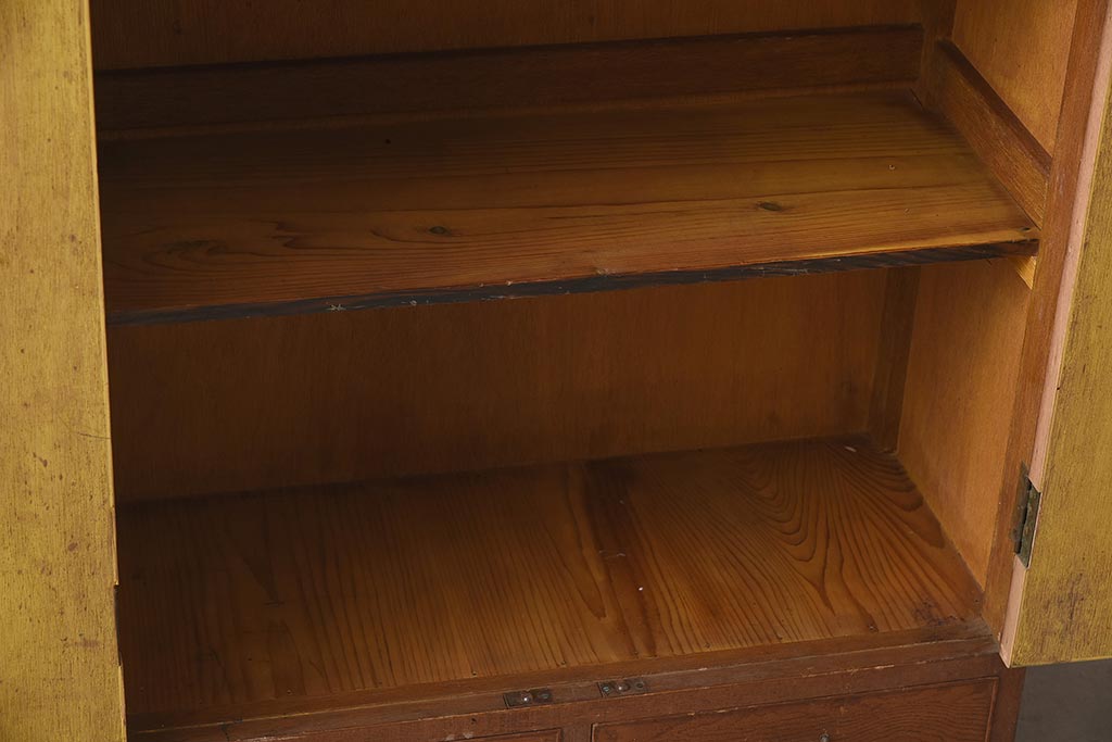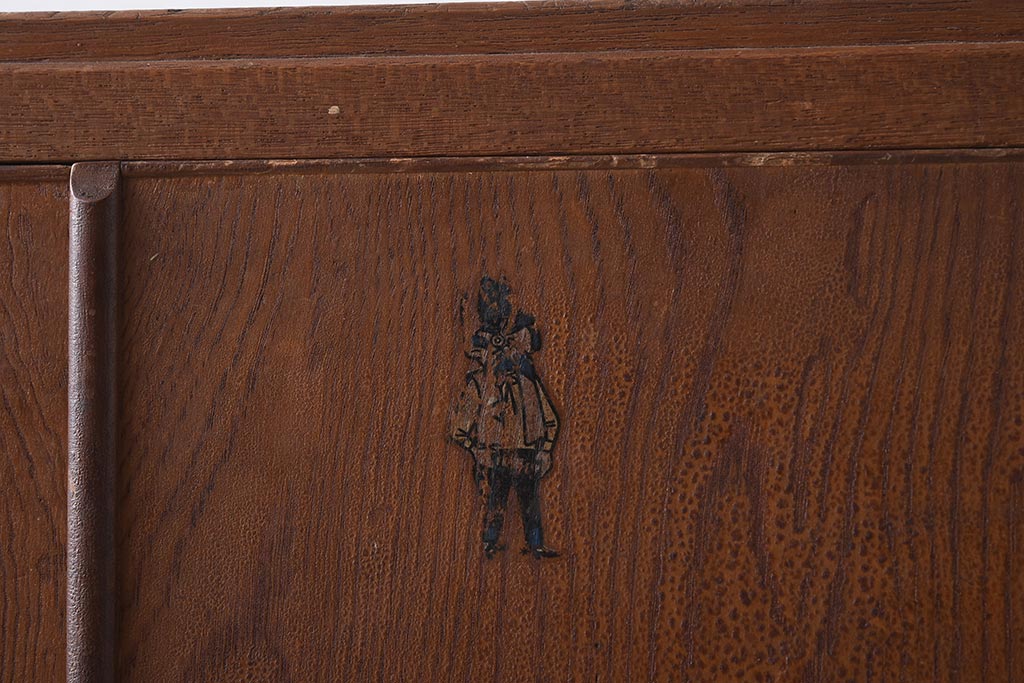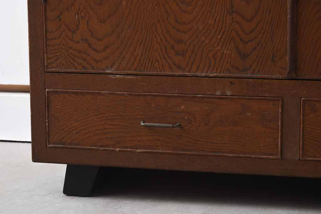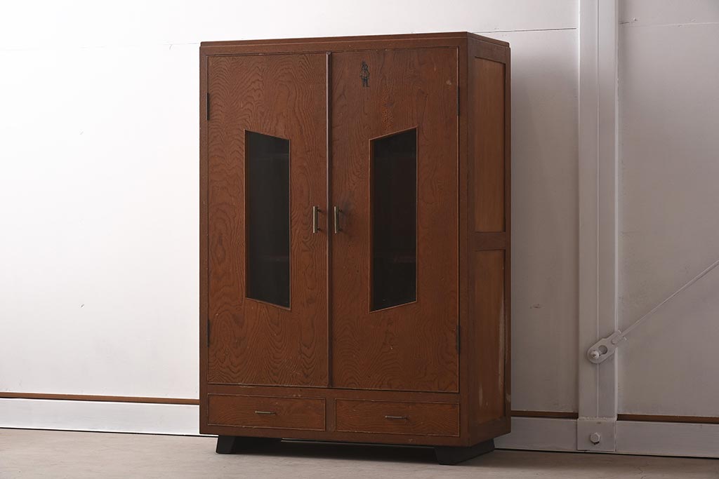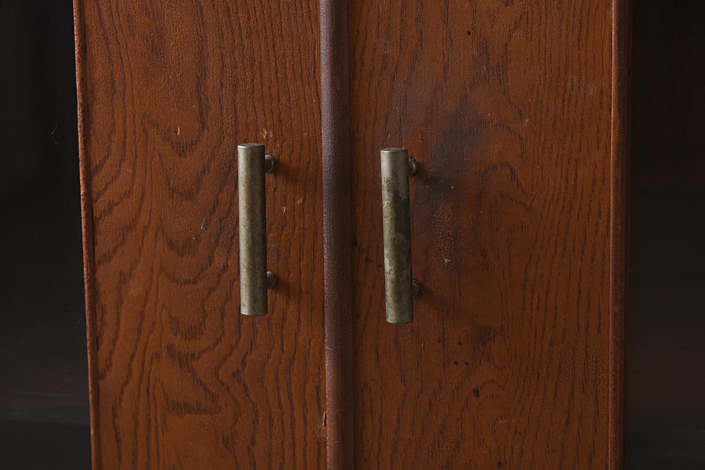 レトロ家具 昭和レトロ 扉のデザインがユニークな脚付き本箱(ブックケース、収納棚、戸棚)(R-037255)です。