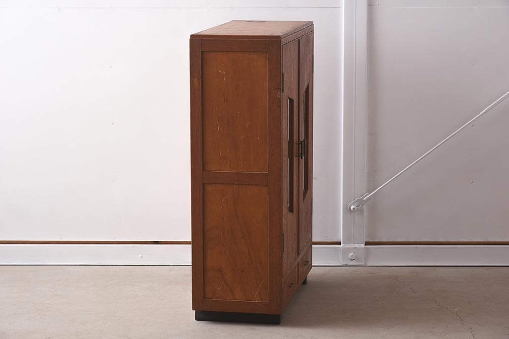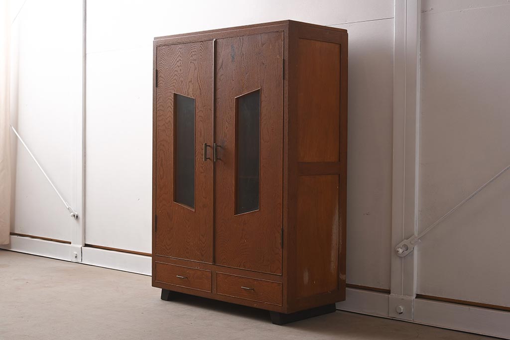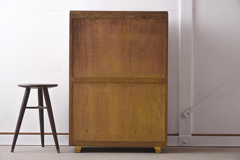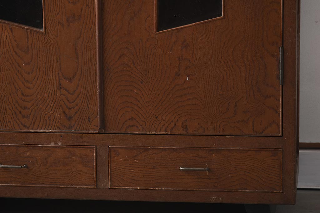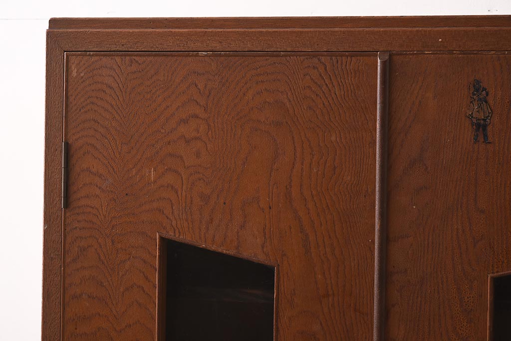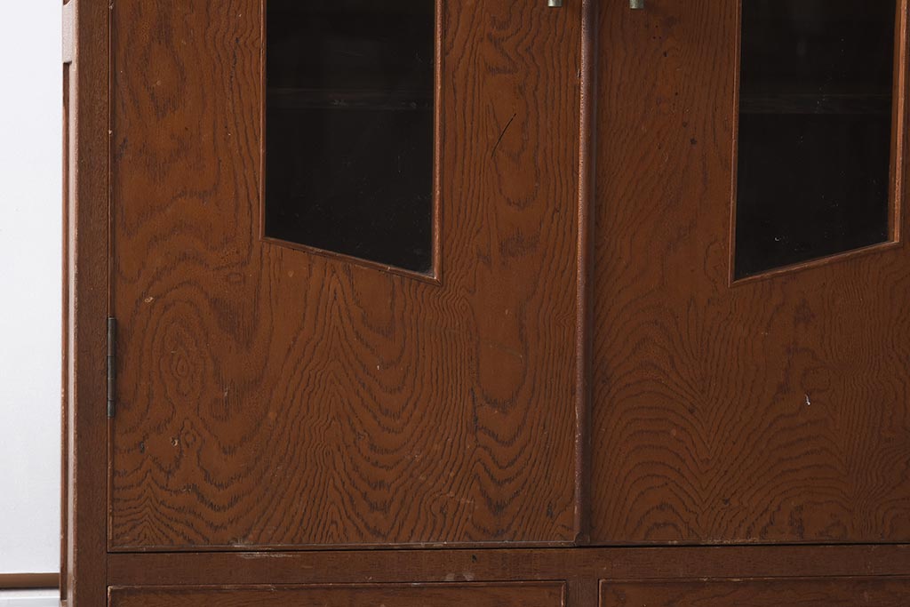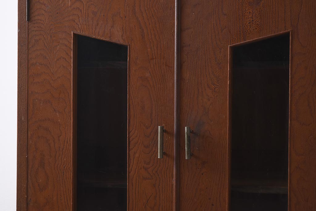 レトロ家具 昭和レトロ 扉のデザインがユニークな脚付き本箱(ブックケース、収納棚、戸棚)(R-037255)