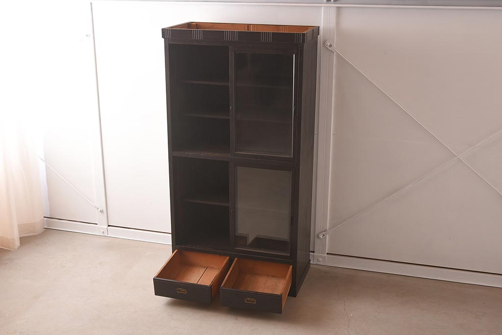 アンティーク家具 和製アンティーク ノスタルジックな雰囲気漂う食器棚(ガラス戸棚、キャビネット、収納棚)(R-037257)