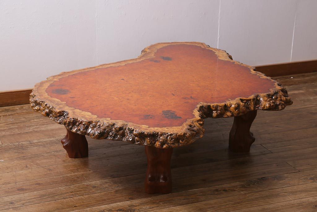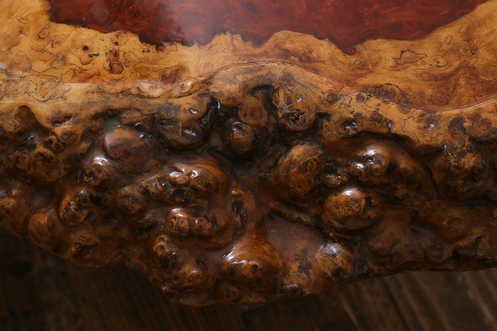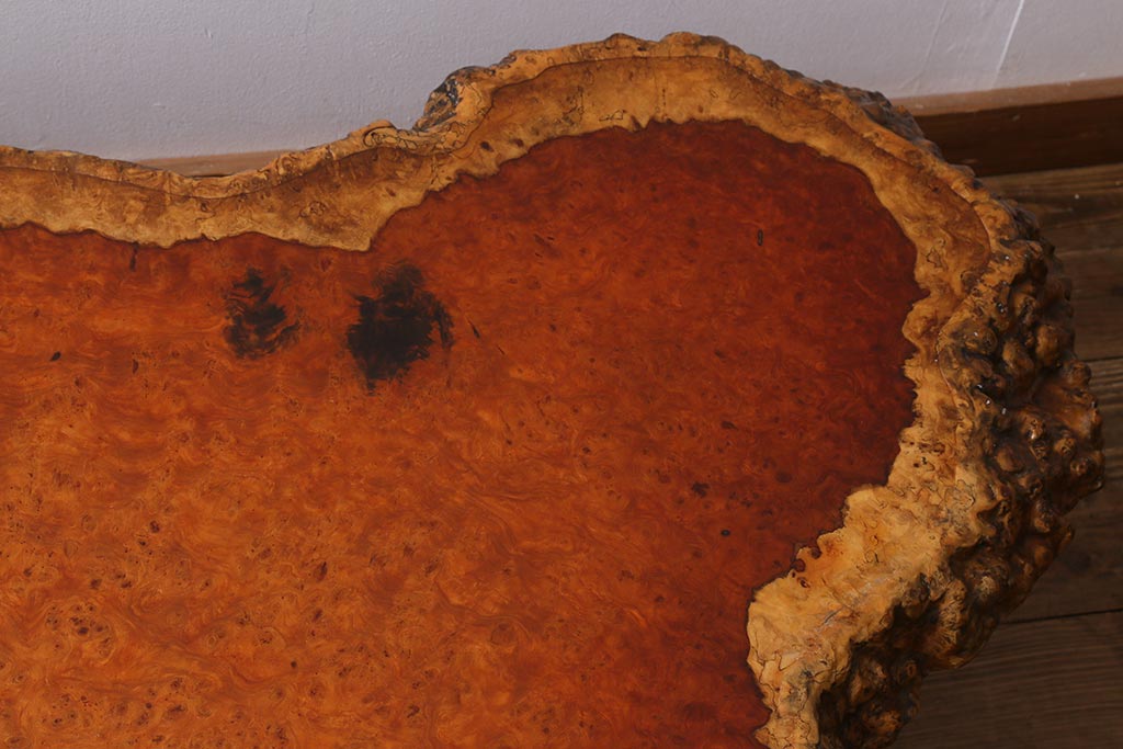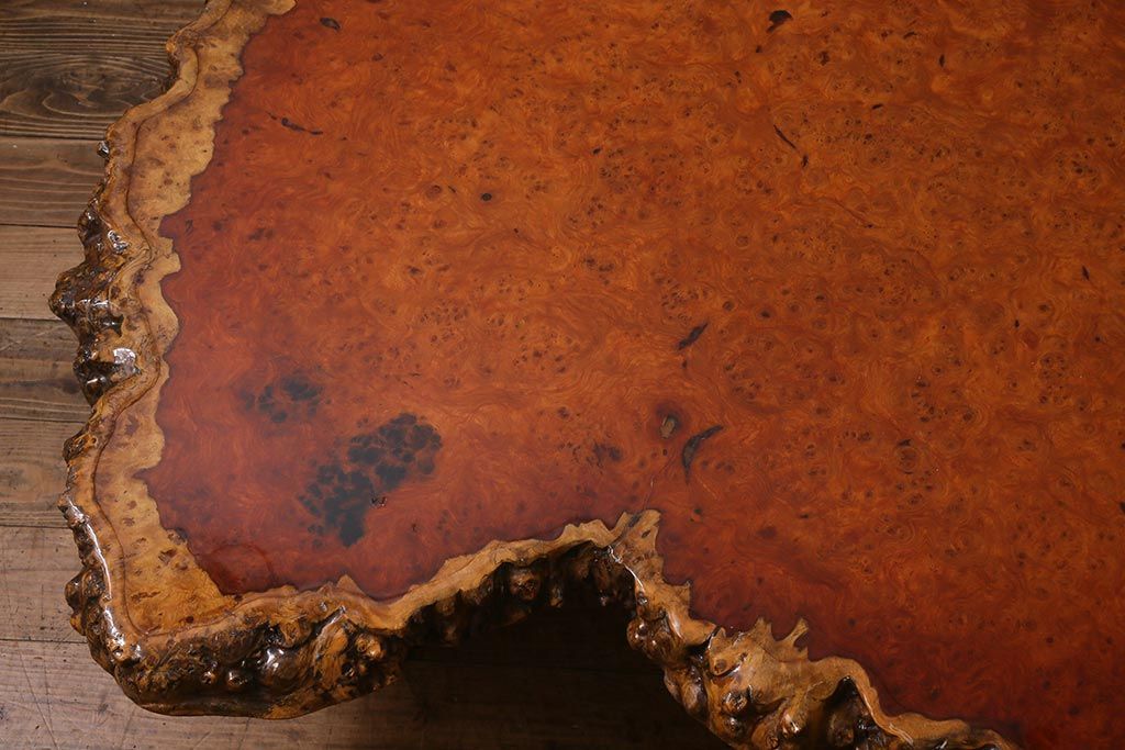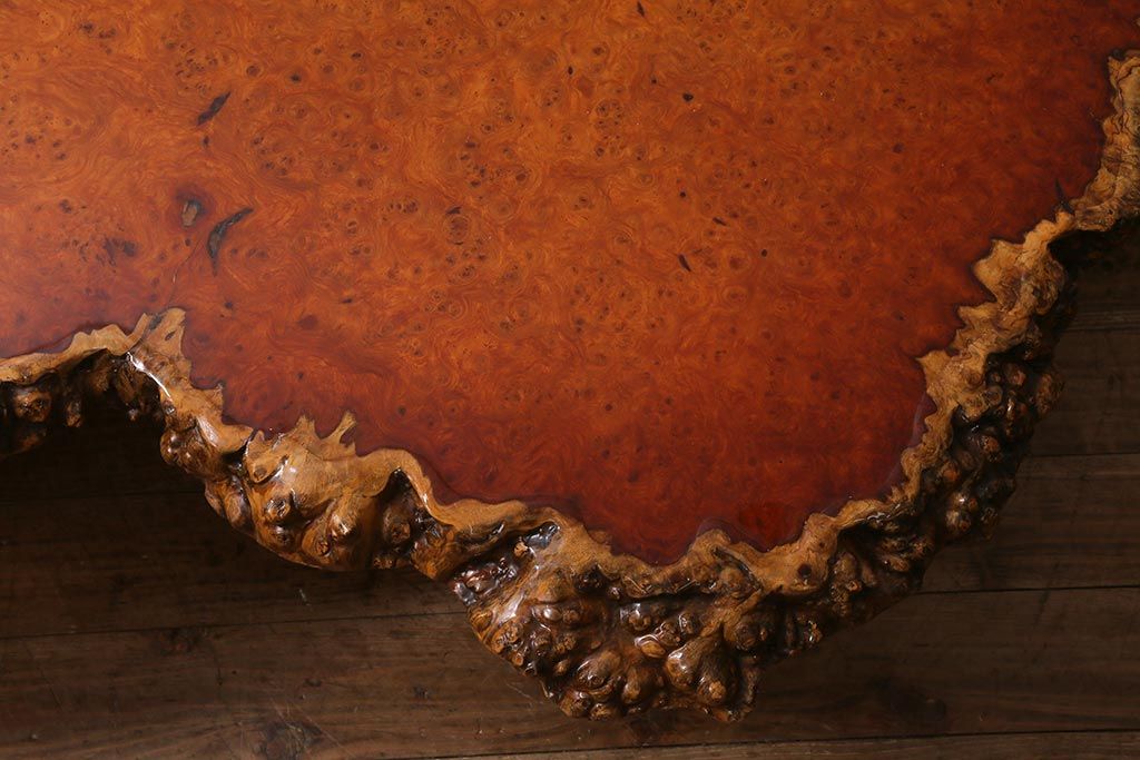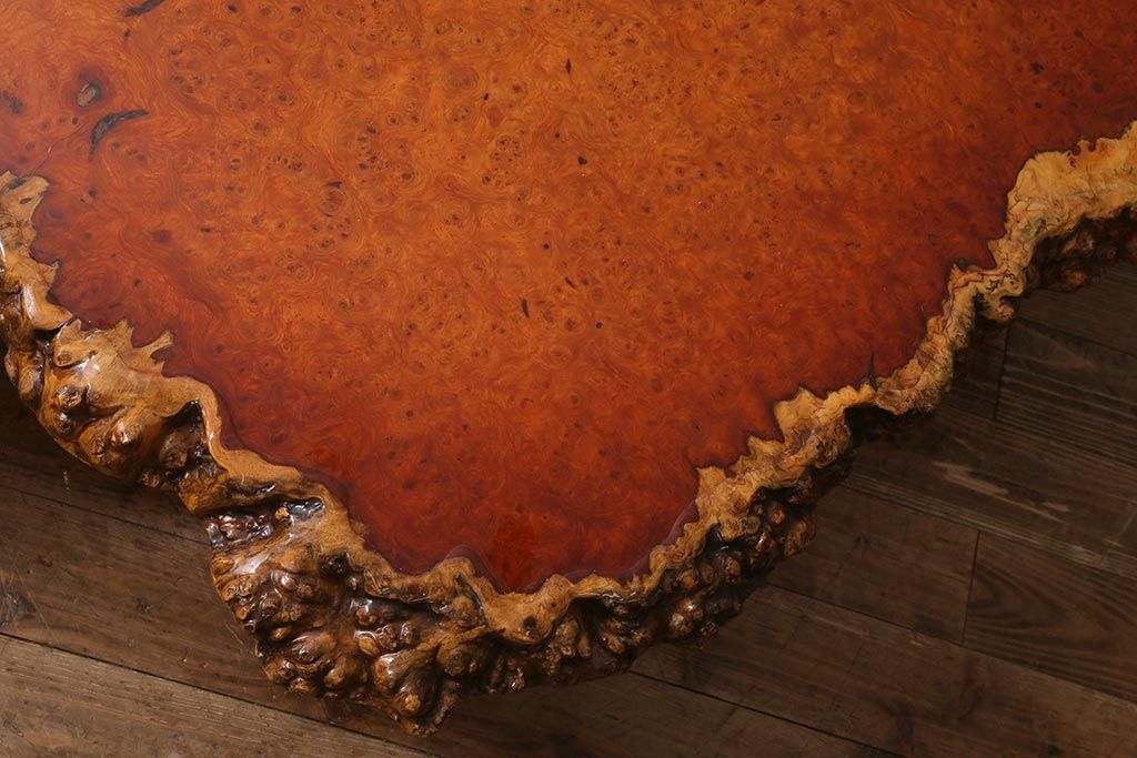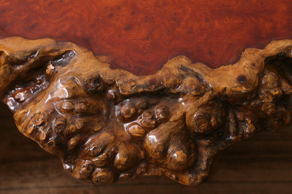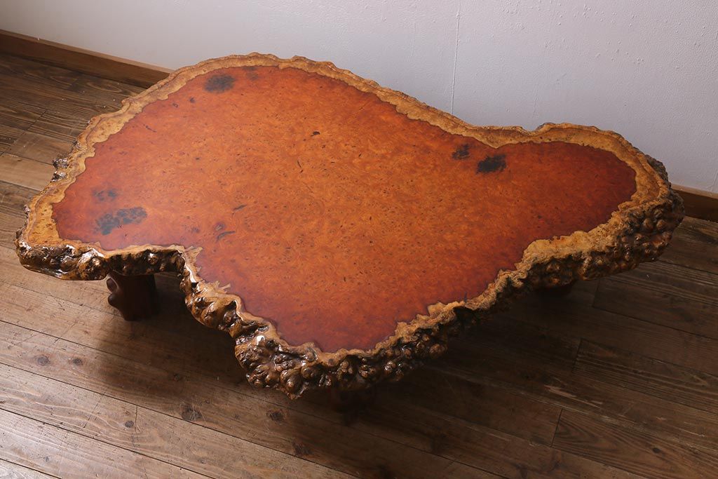 民芸家具 > 中古 特大 極厚天板 カリン材(花梨材) 鳥眼杢 自然の造形美が存在感を放つ座卓(定価約230万円)(ローテーブル)(R-039744)