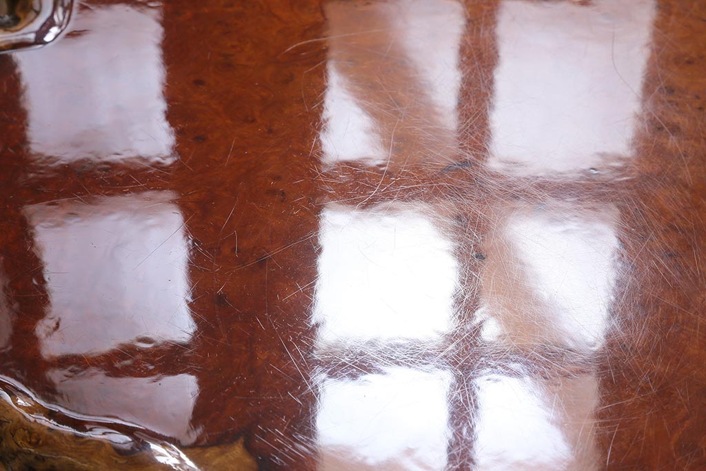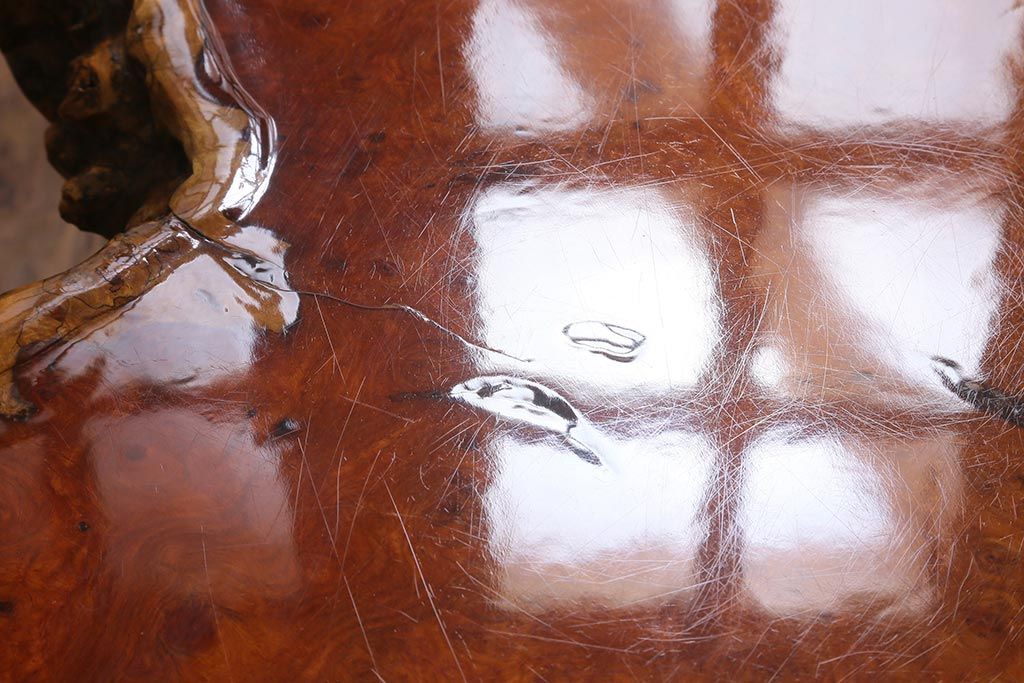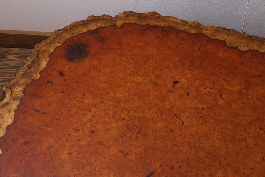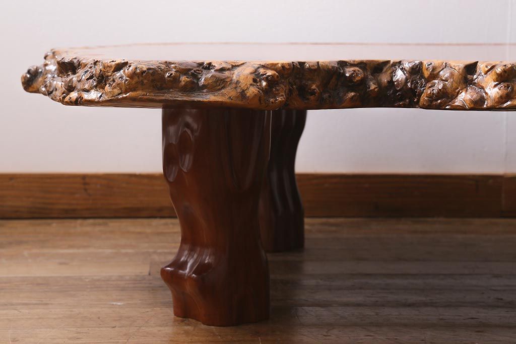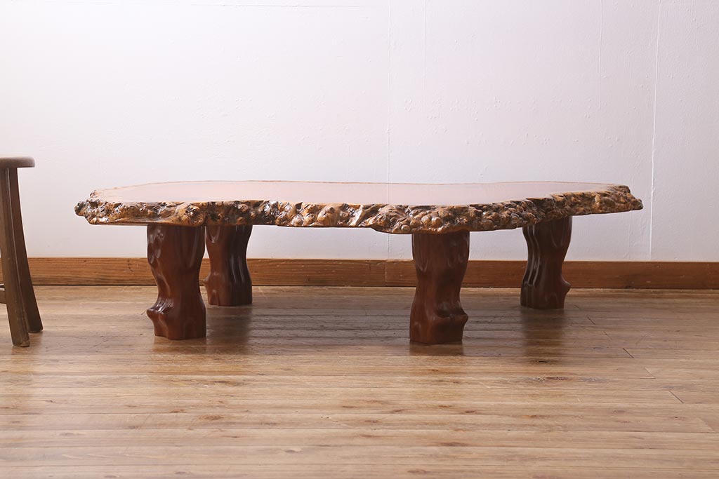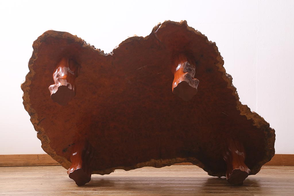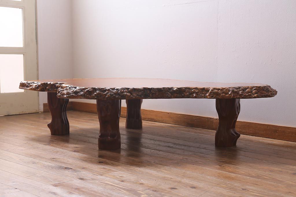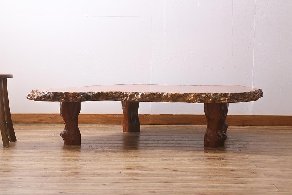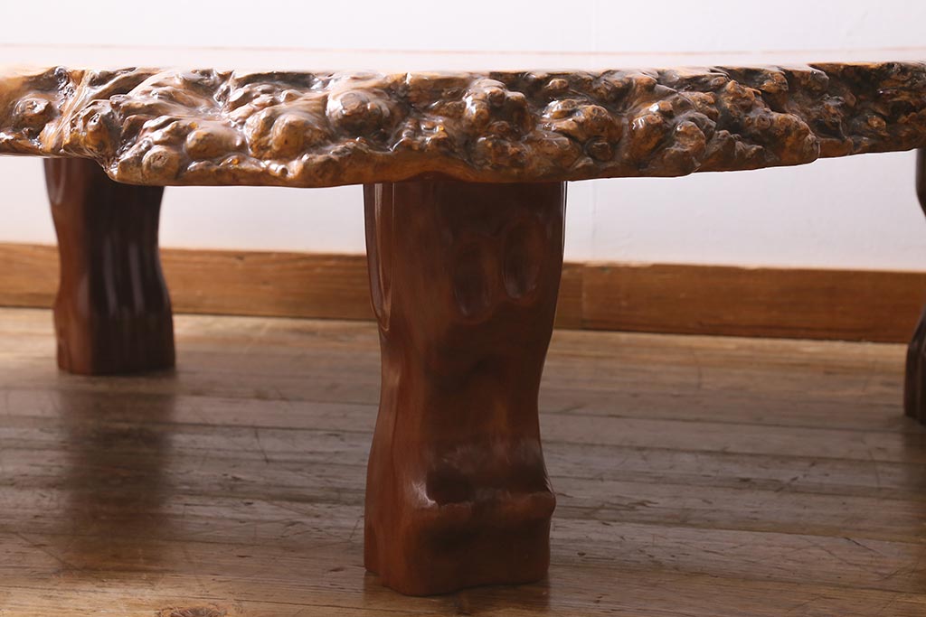 民芸家具 > 中古 特大 極厚天板 カリン材(花梨材) 鳥眼杢 自然の造形美が存在感を放つ座卓(定価約230万円)(ローテーブル)(R-039744)